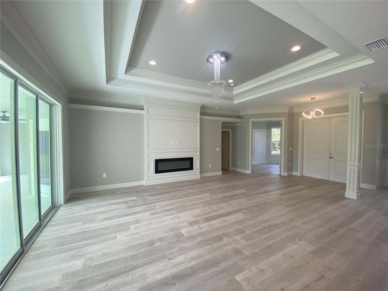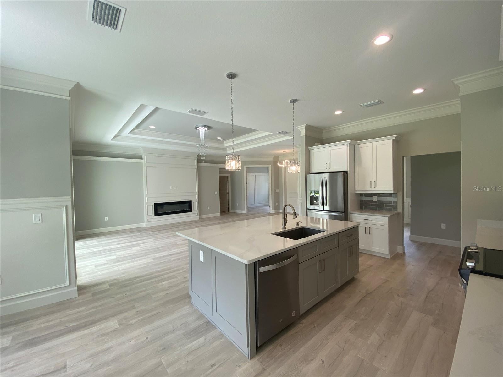 THE KIND OF HOME YOU SCREENSHOT AND SAVE. This stunning, like-new luxury residence at 1131 Mallicoat Road offers over 2,200 square feet of thoughtfully designed living space on an oversized lot, featuring premium construction and extensive upgrades throughout—3 bedrooms and 2 bathrooms. Zwiercan Homes custom-built in 2023. A grand double-door entry welcomes you into a bright, open-concept floor plan where natural light and architectural detail take center stage. The living area stuns with a double tray ceiling, anchored by a custom electric fireplace with a 6-inch bump-out, creating an inviting atmosphere. The kitchen is the heart of the home, showcasing premium white cabinetry, stainless steel appliances, quartz countertops, an extended oversized island with under-mount sink, eat-in area and a generously sized walk-in pantry. A separate dining room and dedicated office/den provide flexibility for whatever you need. Designed with a desirable split-bedroom layout, the spacious primary suite features tray ceilings and private access to the covered lanai. The spa-inspired primary bathroom includes dual vanities, a large walk-in shower, a soaking tub, a separate water closet, and double walk-in closets. Additional bedrooms are generously sized and finished with luxury flooring, and the interior laundry room is enhanced with built-in cabinetry. This home is loaded with premium upgrades, including a whole-house reverse osmosis system, full gutter system, high-voltage wiring for front and rear cameras and lighting, a 50-amp generator outlet with interlock kit in the garage, and a pavered driveway and walkways. Four-panel sliding glass doors open to a large covered lanai boasting over 490 SF and an expansive backyard, offering ample space for outdoor living and future customization. Ideally located near schools, everyday conveniences, and quick I-75 access, this home delivers the look, feel, and quality of a brand-new luxury build without the wait, uncertainty, or upgrade costs. Schedule your private showing today.