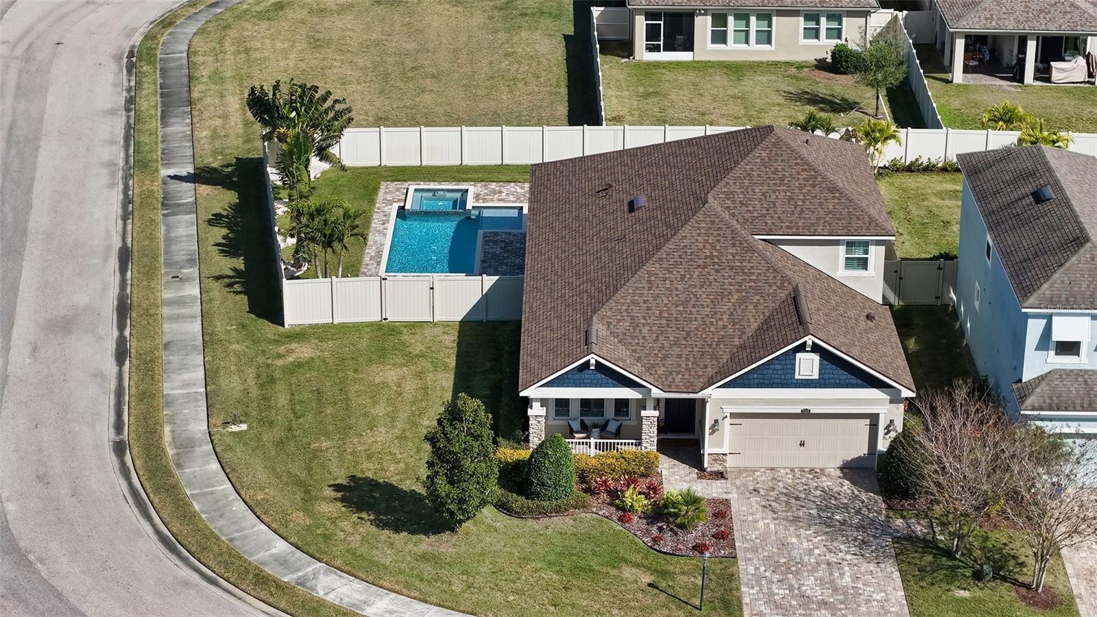 Experience luxury and comfort in this beautifully appointed 2-story Lakewood Ranch home that is perfectly situated on a spacious ¼ acre corner lot. Built in 2017, this sophisticated home offers 2,610 square feet of thoughtfully designed living space, featuring 4 bedrooms, 3 bathrooms, den/office, and versatile living areas to suit every lifestyle. The updated kitchen is a chef’s dream, complete with stainless steel appliances, a gas cooktop, and a striking glass tile backsplash. All three bathrooms have been beautifully updated. Step upstairs to discover a second-floor loft and a separate bonus room that is ideal for a media space, playroom, additional office, or air-conditioned storage. The home is equipped with a tankless gas water heater, a separate laundry room, custom plantation shutters, a whole-house water filtration system, security cameras, and hurricane shutters. Enjoy Florida living at its finest in the private fenced backyard, featuring a screened-in paver lanai with an outdoor kitchen fueled by natural gas and a saltwater heated pool and spa—perfect for entertaining or relaxing. The 2-car garage includes an electric car charger for modern convenience and extra storage spaces. Recent upgrades include a new roof, new air conditioning units, and exterior paint, ensuring peace of mind for years to come. Living in Harmony means you’ll have access to a resort-style community clubhouse, heated pool, fitness center, and event space. Plus, lawn care and irrigation are included, giving you more time to enjoy the beautiful surroundings. Located minutes from top-rated schools, premier shopping, dining, medical care, I-75 access, serene trails winding through the preserve, and local parks and golf courses. This home truly offers the best of Lakewood Ranch living.