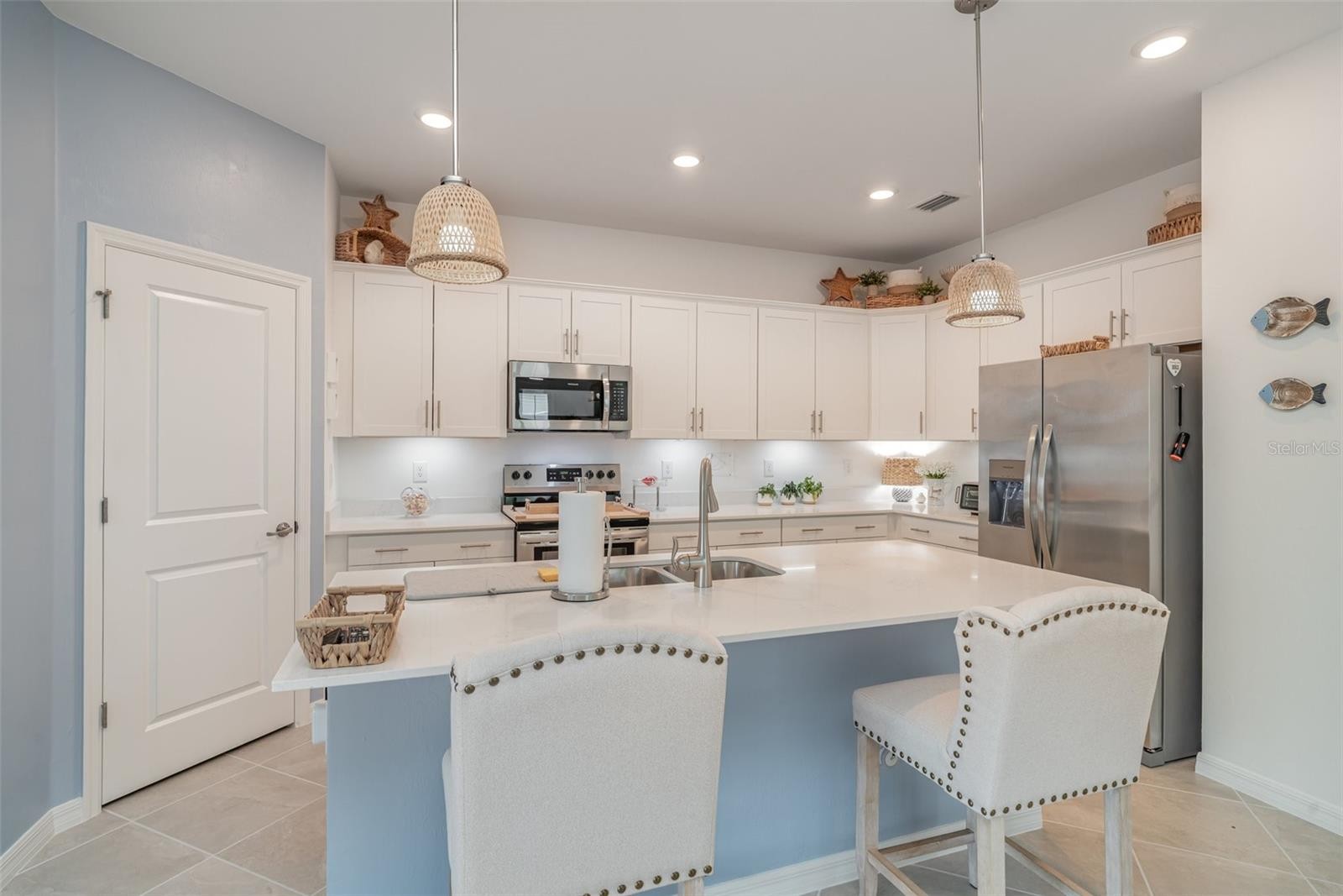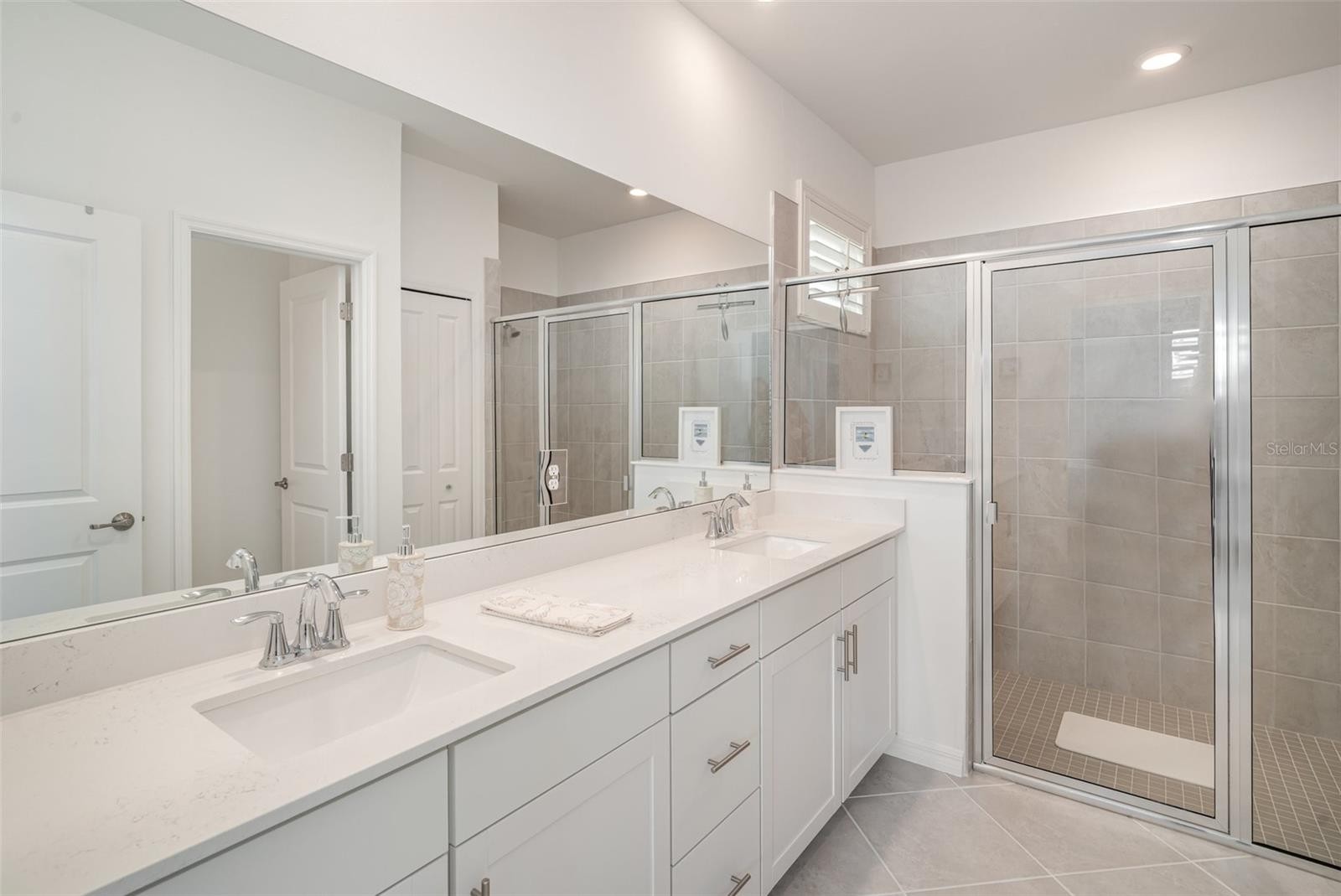 This move-in-ready "Venice" model home is located in the gated community of Antigua mat Wellen Park. The home is a beautifully appointed 3-bedroom, 3-bath property on a lot that backs up to both a pond and a preserve, offering a mix of natural beauty and peaceful seclusion. The open-concept design includes split bedrooms for privacy, and the spacious great room and kitchen flow seamlessly together. The master suite has two walk-in closets and a luxurious en-suite bath with a double sink vanity. The home is equipped with hurricane impact windows and has tile flooring throughout. Outside, a screened lanai provides an area to enjoy the views of the lake and preserve. Residents benefit from a low HOA fee and have access to Wellen Park Village, which features the "Cool Today" Stadium, various dining options, and community events, all within biking or golf cart distance. Downtown Venice and the Gulf beaches are also a short drive away.