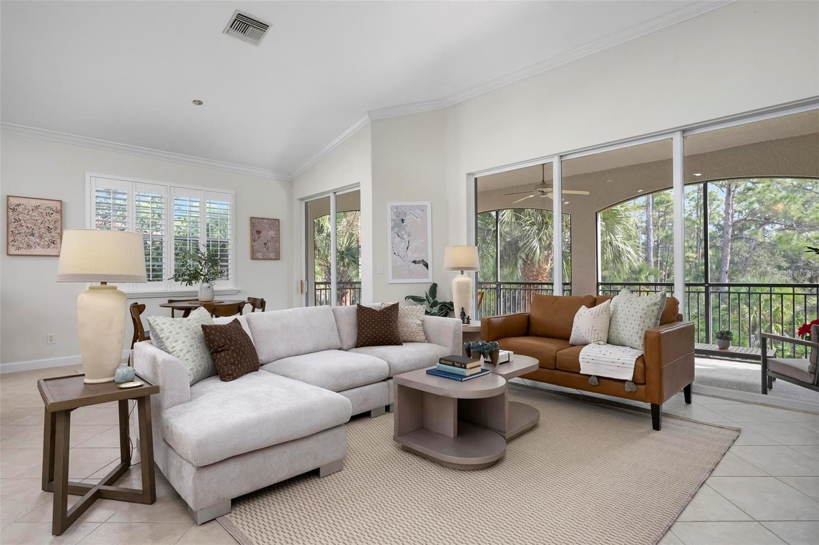 Welcome to a home that invites you to slow down, breathe deeply, and savor the beauty of everyday moments. This is truly maintenance-free living at its best—ideal whether you're here year-round or spending time away. With hurricane-impact windows and doors, exterior maintenance handled by the association, and no yard work or upkeep to worry about, you can lock and leave with total confidence. Everything has been designed for ease, comfort, and peace of mind, so you can simply enjoy the lifestyle you deserve. This spacious 3-bedroom, 2-bath carriage home with a den/flex space offers nearly 2,400 square feet of light-filled, thoughtfully designed living space that feels both refined and comfortable. Perched on the second floor, with your own private elevator you’ll feel the elegance and ease of this home from the moment you arrive. Inside, an open-concept living and dining area flows effortlessly into a well-equipped kitchen—perfect for gathering with friends, preparing your favorite meals, or simply enjoying a quiet cup of coffee. Step out onto the screened lanai and listen to the breeze rustle through the trees of the private preserve just beyond—your own peaceful retreat where mornings begin and warm evenings unwind your day. The generously sized primary suite is your private sanctuary, with its own access to the lanai, dual walk-in closets, and a spa-inspired bath with a walk-in shower and double vanities. Two additional guest bedrooms offer comfort and space for visiting family or friends, while the den provides the perfect spot to work from home, read, or get creative. With a two-car garage, hurricane-rated windows, and ample storage throughout, this home offers both style and practicality. The preserve views bring a sense of seclusion, yet you're just a short stroll or golf cart ride from the vibrant heart of the Venetian Golf & River Club. Here, you’re not just buying a home—you’re stepping into a lifestyle. Enjoy sunny days at the resort-style pool, sunset dinners at the River Club, early morning tennis matches, or a quiet walk through the 70-acre nature park. Whether you’re looking for a full-time residence or seasonal escape, this home is a rare find—gracious, low-maintenance, and surrounded by natural beauty. Just minutes from I-75, the new Sarasota Memorial Hospital–Venice campus, and downtown Venice’s shops, restaurants, and beaches, this is more than a home—it’s your next chapter. Come see what life could feel like here.