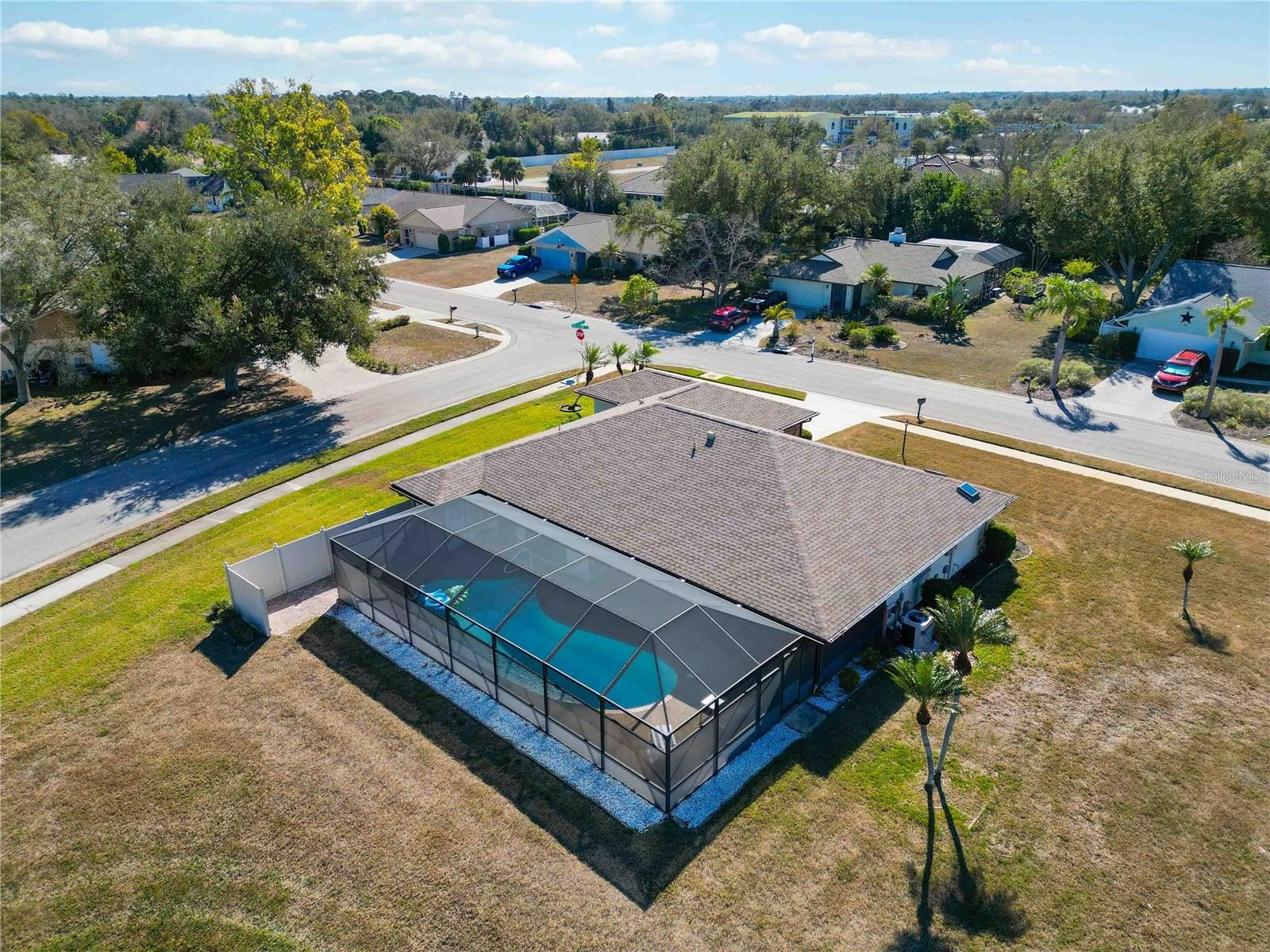 First time offered for sale! This custom-built, original-owner home is a truly unique opportunity in the highly sought-after Chestnut Creek community. Perfectly positioned on an oversized, half-acre corner, waterfront lot, this residence offers privacy, space, and timeless Florida living. Featuring 3 bedrooms, 2.5 baths, and a 3-car garage, separate third garage ideal for storing your toys, this home was thoughtfully designed with both comfort and functionality in mind. The split floor plan showcases formal living and dining rooms, along with a welcoming family room and dinette that flow seamlessly into the open kitchen. An oversized breakfast bar anchors the space, perfect for entertaining or casual gatherings. Soaring cathedral ceilings, all-tile flooring, impact windows, and an inside laundry room add to the home’s appeal, while built-in garage storage provides exceptional organization. Step outside to your expansive oversized lanai, featuring an extra-large pool, outdoor shower, and convenient pool bath—ideal for relaxing or hosting guests in a private setting. Major recent updates include a new roof, pool cage, water heater, pool heater, freshly resurfaced pool, and updated electrical panel, offering peace of mind for years to come. Chestnut Creek is known for its mature landscaping, canopy-covered roads, lakes, and peaceful setting—just minutes from Venice beaches, shopping, and dining. Residents enjoy a remarkably low HOA fee of only $600 per year. A rare offering combining space, upgrades, and an exceptional lot—this is Florida living at its finest.