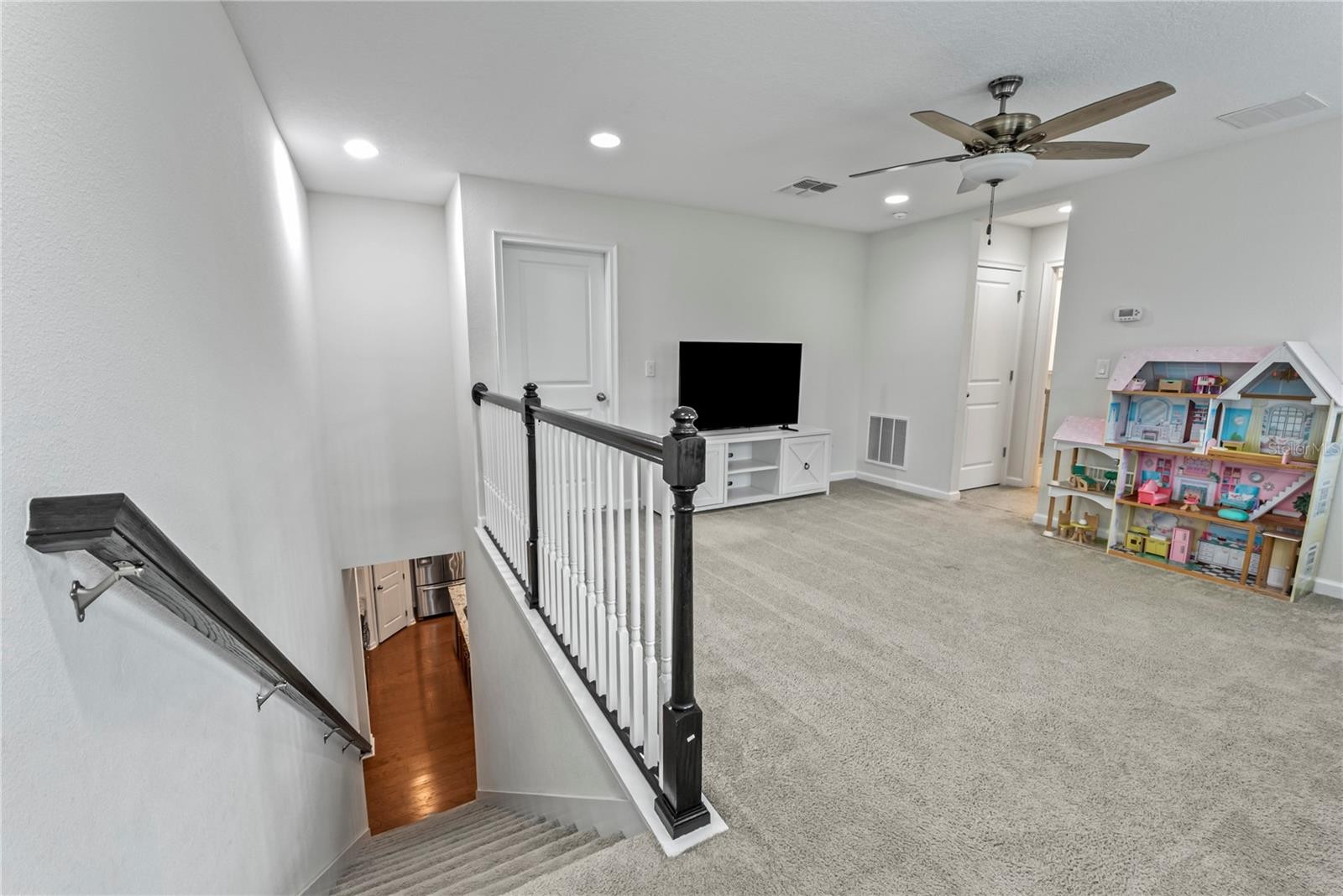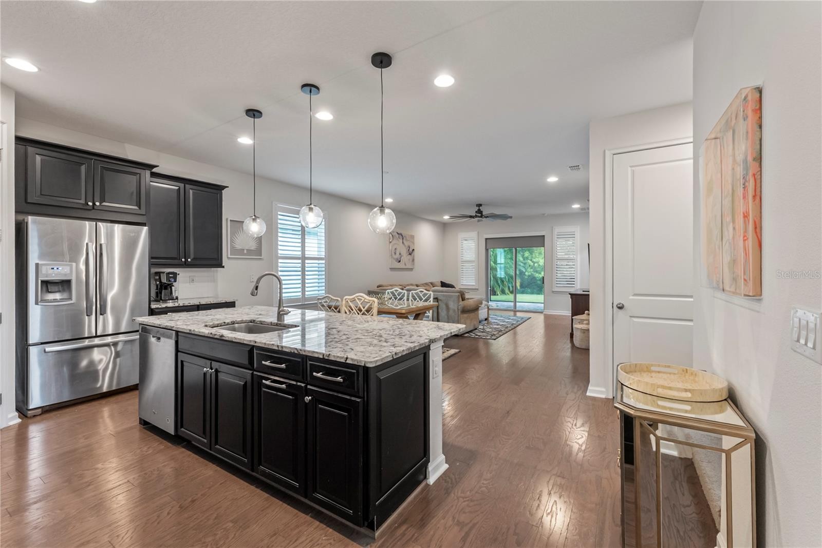 Private lot on a preserve, located in the gated community of Harmony in Lakewood Ranch. Two-story, maintenance-free home with a southern-exposure backyard. 4 bedrooms, 3 full bathrooms, a den, and a large second-floor bonus/media room—ideal for flexible living. NEW ROOF. Freshly painted interior. Whole house water filtration and softener system. EV charging station in the garage. Driveway newly sealed. All air vents deep cleaned. Bordered by a preserve. Open-concept layout includes a gourmet kitchen with wood cabinetry, stainless steel appliances, granite countertops, walk-in pantry, and a large one-level island with breakfast bar that flows seamlessly into the dining area. The great room opens to a screened paver lanai, perfect for outdoor entertainment or relaxing. The master bedroom offers a peaceful haven with a huge walk-in closet, and an ensuite bath featuring double sinks, granite countertops, a glass-enclosed walk-in shower, and a garden soaking tub. Two additional bedrooms and a full bath are conveniently located on the main floor, along with a den/home office with glass French doors—ideal for quiet calls or remote work. Upstairs, a generous bonus/media/game room offers the perfect setup for movie nights or a playroom, along with a fourth bedroom and a third full bath, creating a great guest. Engineered hardwood flooring, plantation shutters, recessed lighting, ceiling fans, tankless water heater, laundry room, and a huge walk-in storage closet. Curb appeal shines with stone accents, a covered front porch, brick paver driveway and walkway, and a back patio with a gas line for your grill. Harmony offers low HOA fees that include exterior lawn care and access to resort-style amenities: newly renovated community pool, clubhouse, fitness center, playground, grilling area, and walking trails. Located close to top-rated schools, golf, shopping, dining, and less than 20 miles to the Gulf beaches. CDD fee is included in the total tax amount.