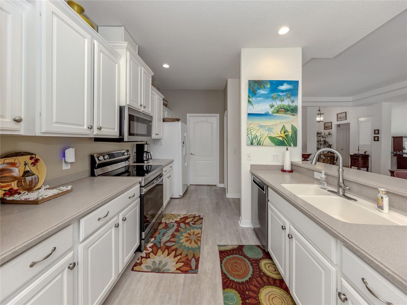 This is your opportunity to own this beautifully maintained 2 Bedroom 2 Bath plus den home in sought after, guard gated community of Stoneybrook at Venice. As you arrive you will notice the large tranquil pond views in the back and beautiful tropical landscaping in the front. House has been freshly painted with neutral colors. Inside, you will find the high ceilings and open concept. As you walk in the foyer opens to large living room where the sliders lead you to a spacious screened in lanai perfect for entertaining or simply relax. Throughout, you'll find all main areas with the neutral luxurious vinyl plank flooring, carpeting in the bedrooms and family room for comfort. The house is bright and airy with abundant windows. You will notice from the windows and sliders, showcasing beautiful water views and Florida wild life. The kitchen is sure to impress location while a light filled breakfast nook is perfect for morning coffee. The large master suite is peaceful with water views, and spa inspired en-suite bathroom with dual sink and soaking tub, walk in shower, and walk in closets. A private guest bedroom and second bath located on the front side of the home, creates a perfect layout for comfort and privacy. The laundry room, located just off the garage and kitchen, has ample storage . The roof have just been cleaned and inspected. There is a water softener and filtration for the whole house, located in the garage. Residents of Stoneybrook at Venice enjoy the resort style amenities with community heated pool and spa, tennis and pickleball courts, basketball court, sports field, fitness center, and more. Ideally located near expressway, beaches, shopping, hospitals, restaurants, etc.. Come visit this established community filled with matured trees and spacious homesites.