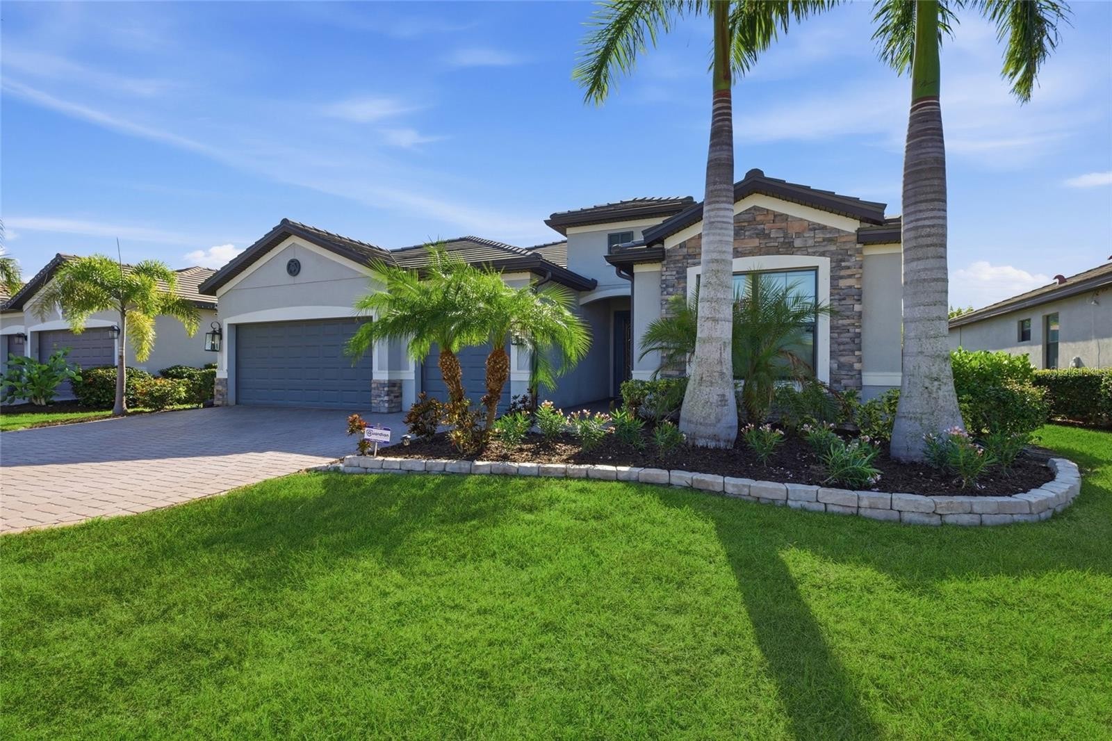 Prepare to be impressed by this STUNNING pool home on a beautiful pond in the highly sought after gated neighborhood of Copperleaf, located right on Lakewood Ranch’s doorstep! Meticulously cared for, this popular Summerville triple split floor plan features 3 bedrooms, a den/flex room, 3 full bathrooms, & a 3-car garage, as well as an incredible lanai with pool and spa overlooking a peaceful pond & conservation for the ultimate in privacy. This home's striking curb appeal will captivate you with its pavered driveway, lush landscaping, Mediterranean elevation & modern tile roof. A welcoming front porch brings you to the 8' double door entry, and inside you'll find a spacious & wide foyer adorned with board & batten walls & a beautiful architectural niche accented by stacked stone to showcase your favorite piece. A spacious bedroom is just off the foyer, with a full bathroom located just outside. Just beyond the foyer is your flex room with custom sliding barn doors, making this ideal to use as a home office, den, home gym, or even a 4th bedroom. A hallway beyond the foyer leads you to your open concept Gathering Room, kitchen, and dining room with modern chandelier. Your designer kitchen is PERFECT for entertaining & includes 42" cabinets w/crown molding, quartz counters, upgraded coil pull-down faucet, single bowl sink, SS appliances including NEW LG Microwave, subway tile backsplash, large corner pantry, & a HUGE extended island with board and batten accent. Your spacious gathering room features a gorgeous coffered ceiling, board & batten walls, and beautiful custom shiplap fireplace wall with mantle. And just wait until you see the backyard - wide triple sliders open to your GORGEOUS, extended, screened-in lanai with panoramic screen and salt water pool and spa that overlooks a magnificent pond. Your heated pool & spa include a BRAND NEW Jandy pump and BRAND NEW heater, and pavers just beyond the pool cage create the perfect space for a future fire pit with tranquil nature views. Privacy hedges and tropical landscaping including lush palm trees surround the sides of the lanai, making this your own true private oasis. Situated at the back of the home is your spacious Primary Retreat, complete with coffered ceiling, dimensional custom accent wall, rich bamboo floors, & sliders that lead out to the lanai. The spacious en-suite Primary Bath includes 2 vanities & sinks, upgraded faucets, walk-in shower with glass enclosure, garden tub, 2 large walk-in closets each with built-ins, & water closet. Just off the foyer, a hallway leads to the laundry room and private guest suite. The laundry room is well equipped with an LG washer and dryer, utility sink, and convenient pass-through to the garage, while the guest suite offers its own en-suite bath w/walk-in shower, stone-topped vanity with modern faucet, and added shelving. Other notable upgrades include NEW interior paint, security system with sensors on all doors & windows, plantation shutters, luxury vinyl plank flooring in den & secondary bedrooms, water softener, epoxy floors & overhead storage racks in the garage, & more. Situated in highly desired Copperleaf, enjoy the maintenance free Florida lifestyle with NO CDD fees. HOA fee includes access to the Community Pool, Spectrum Internet, Cable TV, Mowing & Landscaping. Prime location with quick & easy access to 64, LWR Blvd, I-75, & the Ft. Hamer boat ramp, with world class dining, shopping, beaches, golf courses, & recreation nearby.