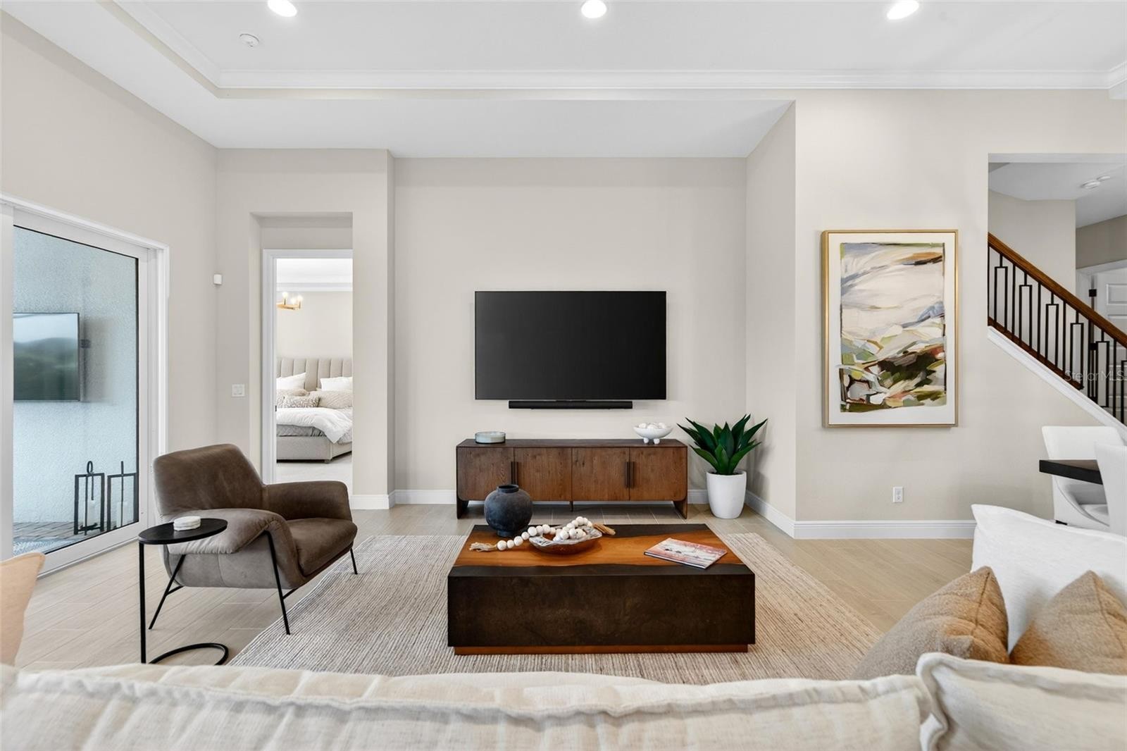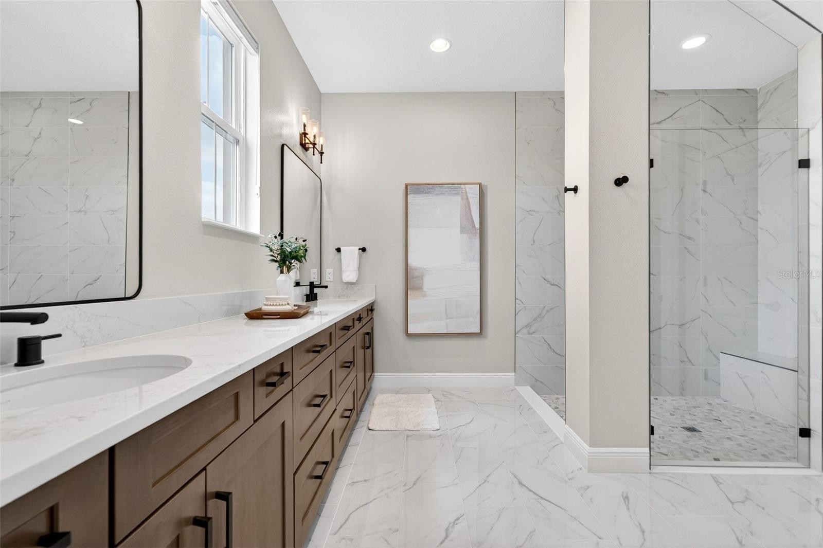 Step into this beautifully designed 5-bedroom, 4-bath home offering exceptional comfort, style, and functionality. The main level features an inviting open layout with a spacious living area, an elegant dining space, and a well-appointed kitchen complete with abundant cabinetry, generous counter space, and a walk-in pantry. Natural light fills the home, creating a warm and welcoming atmosphere throughout. The primary suite serves as a private retreat with dual walk-in closet and a spa-inspired ensuite bathroom. Three additional main-floor bedrooms provide versatility for family, guests, or home-office needs, complemented by thoughtfully designed bathrooms and a dedicated laundry room for added convenience. Outdoor living shines with an expansive screened patio and pool area—perfect for year-round relaxation, entertaining, and enjoying the Florida lifestyle. A covered front porch and spacious garage enhance both curb appeal and practicality. The second floor offers a private guest or multi-generational suite, complete with a bedroom, full bath, and a large bonus room ideal for a media room, playroom, gym, or additional living space. This home blends generous living areas with exceptional indoor-outdoor flow, making it an ideal choice for those seeking comfort, flexibility, and modern living.