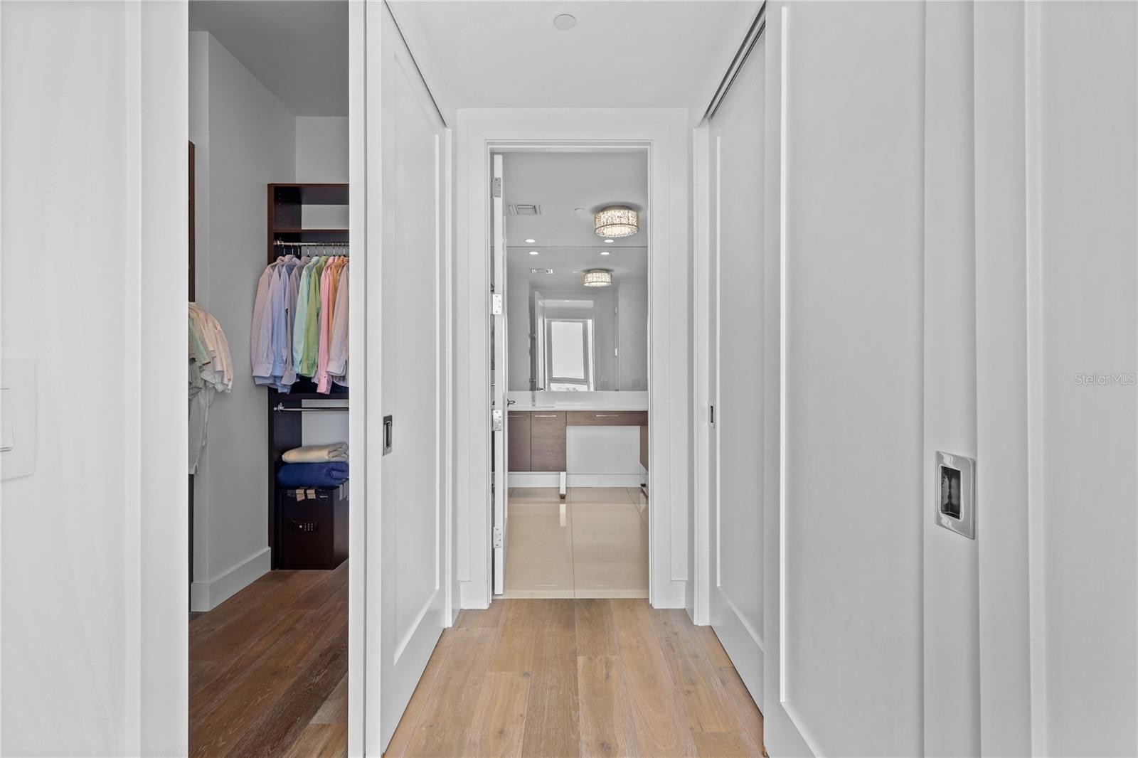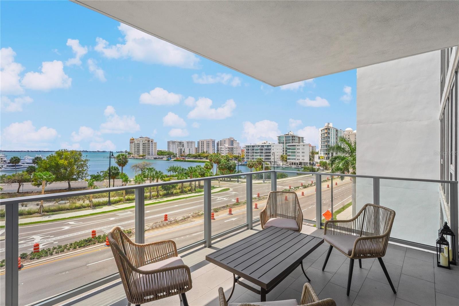 Stunning Sarasota Bay and Marina Jack views, combined with newer construction, make this residence at The VUE a standout opportunity in downtown Sarasota. Ideally positioned, this luxury condominium offers exceptional walkability just steps from premier dining, shopping, and cultural attractions. Designed to live like a true three-bedroom home, the den has been thoughtfully enclosed with a door and custom Murphy bed—ideal for guests or a private office. A private elevator foyer welcomes you into a bright, open living space where expansive impact-rated sliders frame unobstructed water and city views along with spectacular sunsets. Immaculate interiors showcase porcelain tile throughout the main living areas, while engineered hardwood flooring adds warmth to the primary and second bedrooms. In the primary suite, a custom walk-in closet with built-ins is complemented by an additional reach-in closet, offering excellent storage and organization. The sleek, modern kitchen blends style and function with premium stainless-steel appliances, an induction cooktop, Nolte European cabinetry, and Culligan water treatment at the sink. Everyday convenience is enhanced by a utility room featuring an LG washer/dryer tower and additional storage. Residents enjoy a full suite of amenities including a resort-style pool and spa, state-of-the-art fitness center, rooftop dog park, concierge, valet service, and secure building access. Included with the residence are two garage parking spaces and a private storage unit. Sharing a coveted downtown location alongside the Ritz-Carlton and The Westin—home to its popular rooftop bar—this address offers unmatched access to Sarasota’s vibrant lifestyle. From here, the iconic Ringling Bridge is easily walkable without crossing major roads, making it simple to enjoy the scenic waterfront any time of day. An exceptional combination of luxury, location, and breathtaking views.