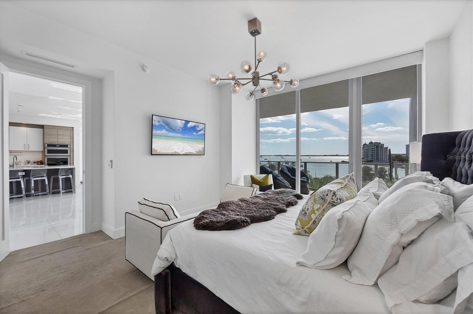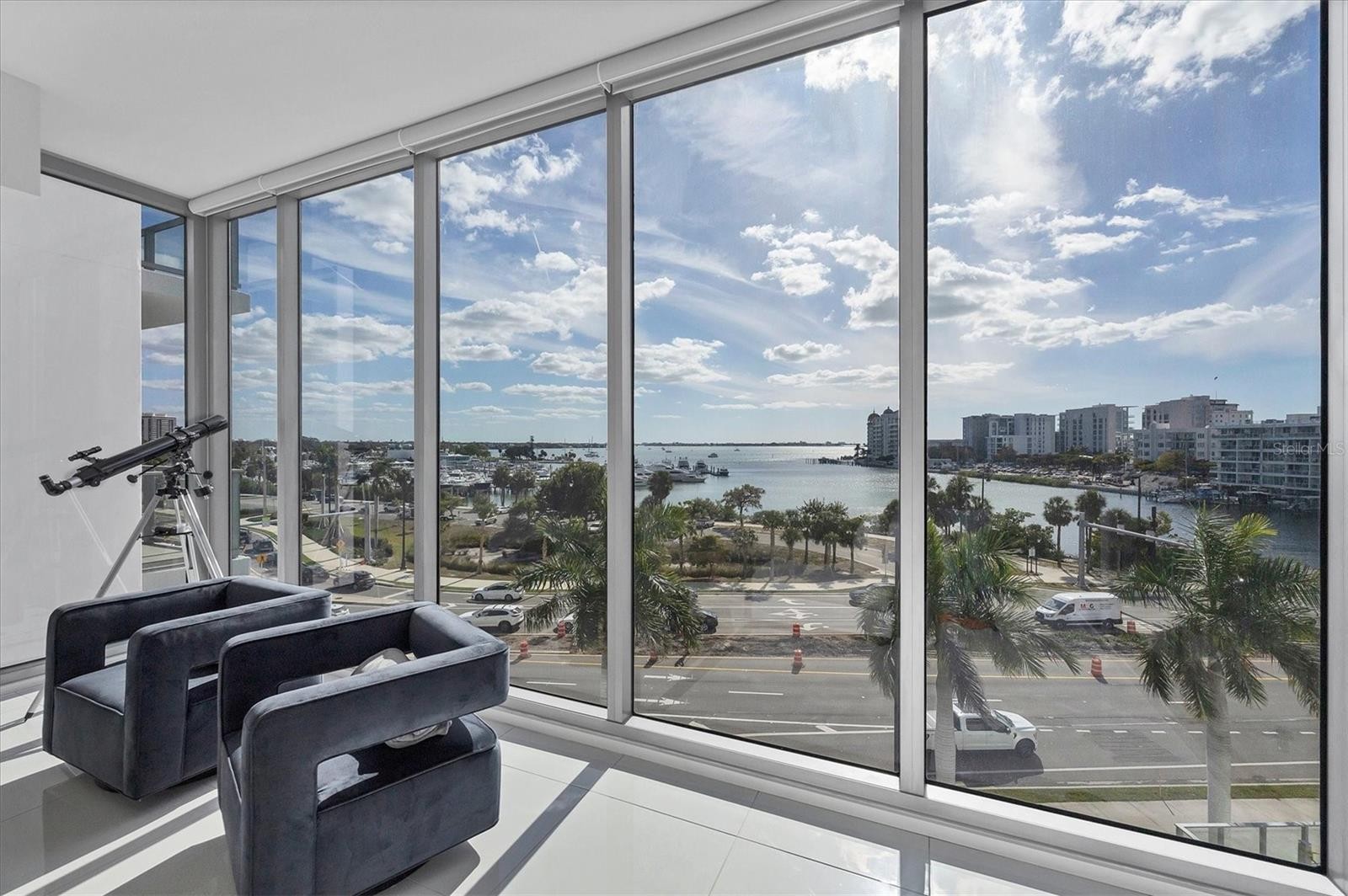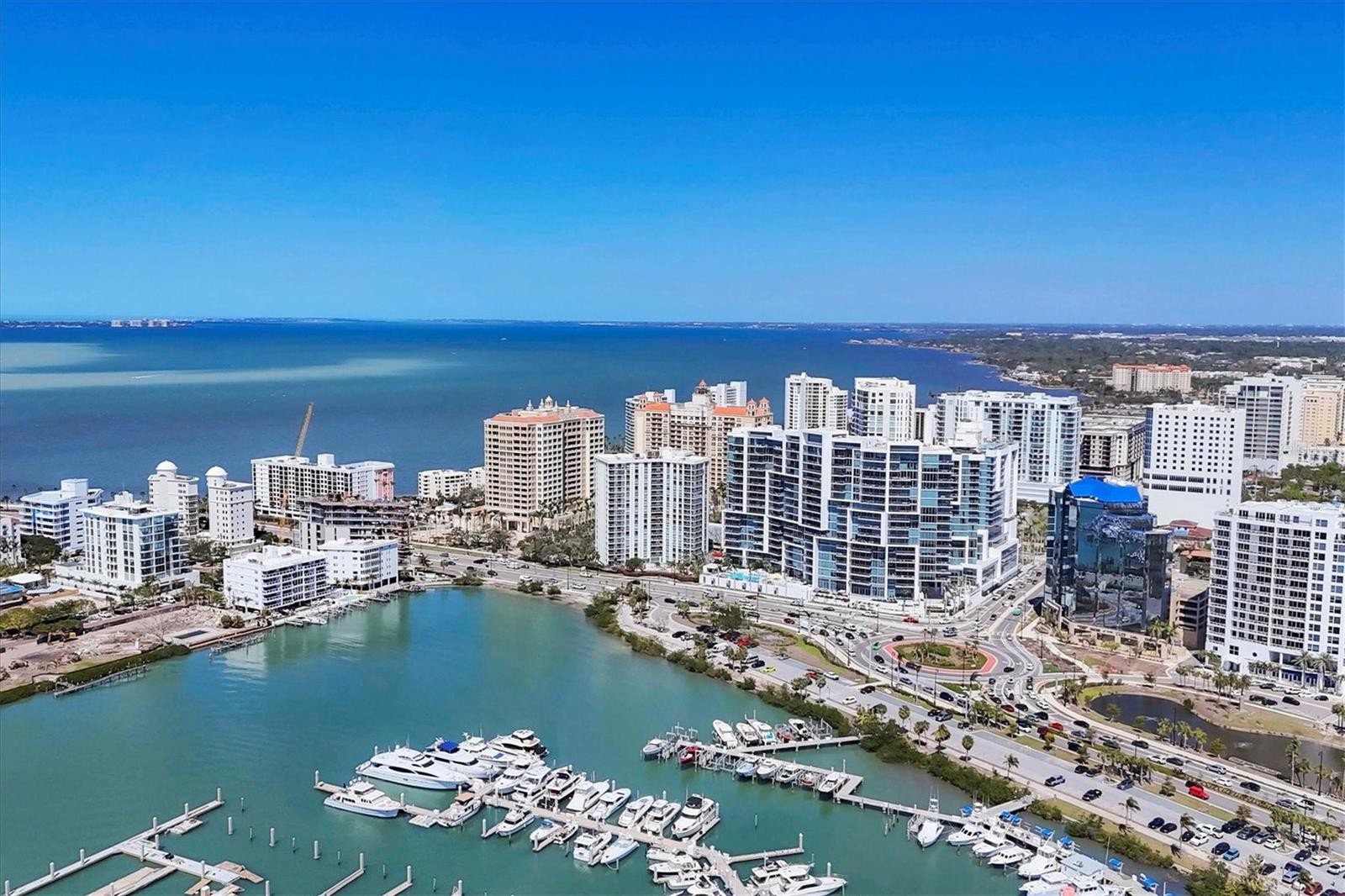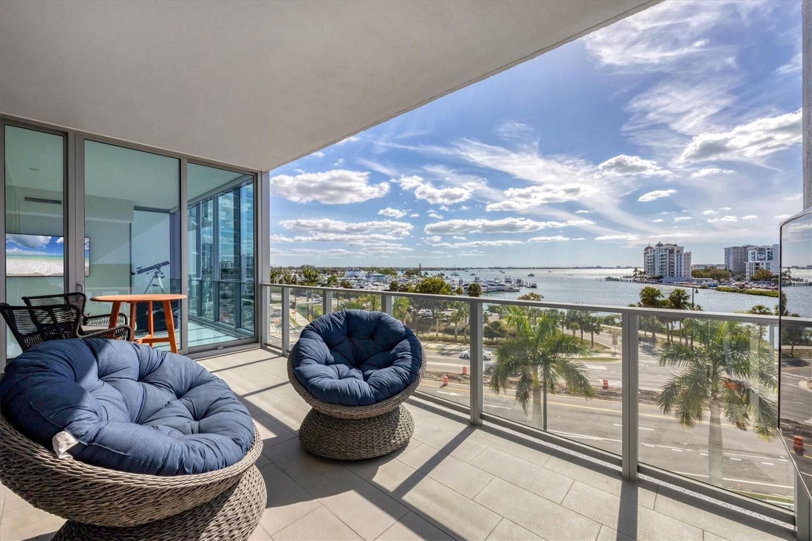 Enjoy amazing views in The VUE! This stunning 2-bedroom, 2.5-bath condo + office offers breathtaking, floor-to-ceiling views of sparkling Sarasota Bay. You will fall in love with the expansive windows and large terrace overlooking the resort-style pool, Sarasota Bay, and Marina Jack’s. Beautiful modern design elements and contemporary furnishings create an elegant, move-in-ready retreat. The primary suite features a king bed, bay views, a spacious walk-in closet, and a spa-like bath. The guest bedroom offers a queen bed and private ensuite. In addition, this unit has TWO parking spaces! The VUE sets the standard for luxury living with valet parking, concierge services, 24/7 security, a heated resort-style pool and spa, and a state-of-the-art fitness center. All just moments from Sarasota’s vibrant arts scene, culture, and award-winning dining.