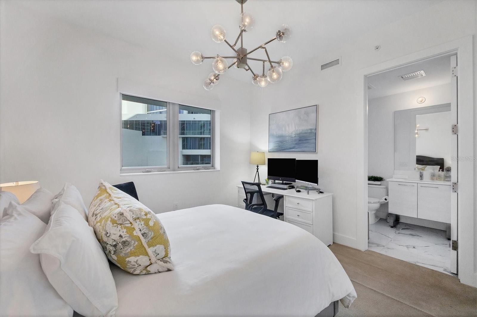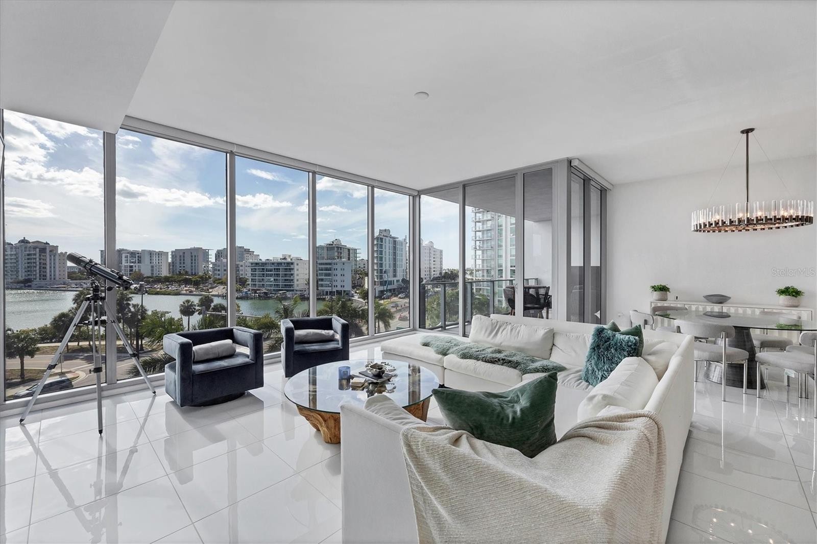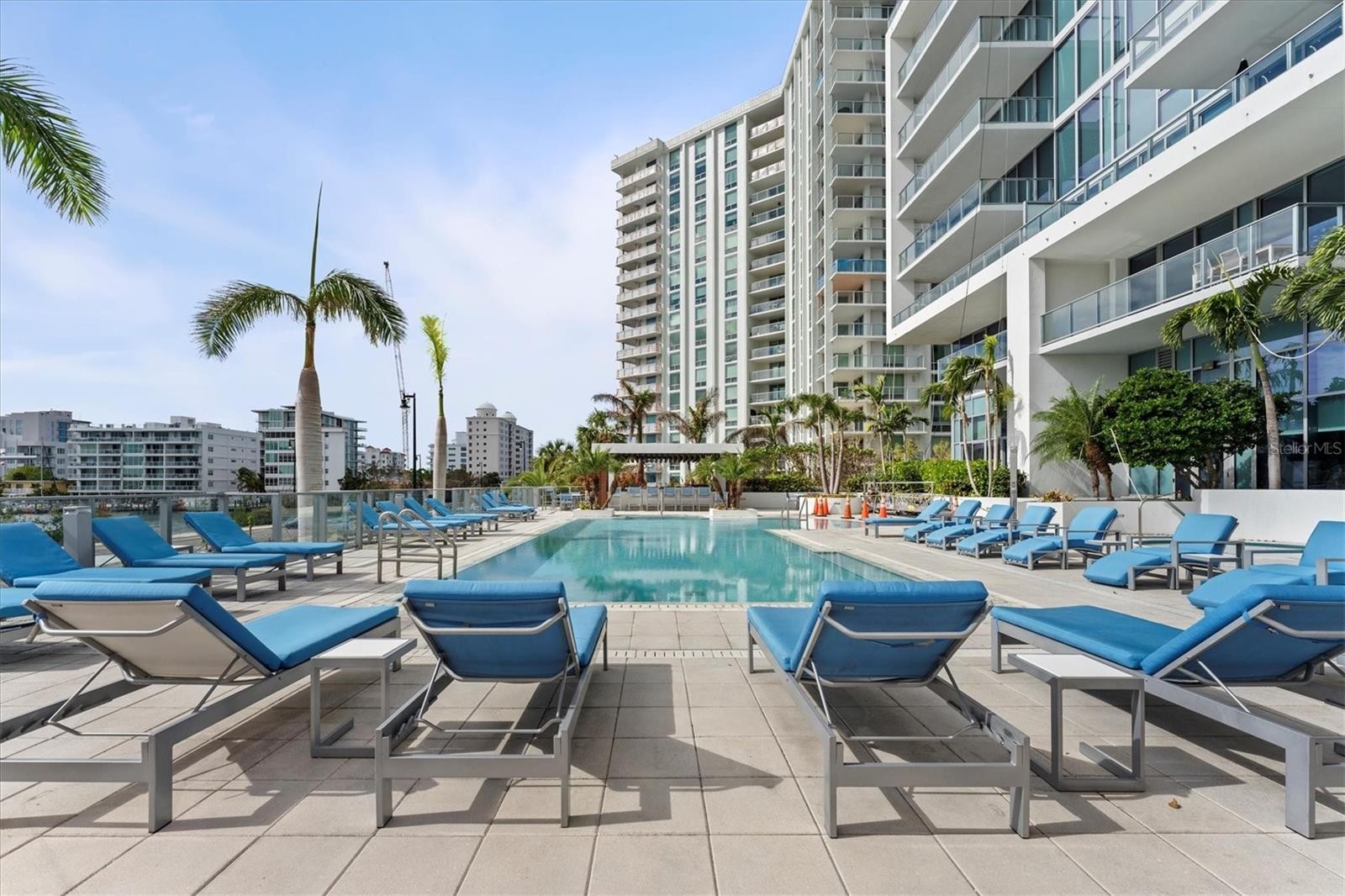 Enjoy amazing views in The VUE! This stunning 2-bedroom, 2.5-bath condo + office offers breathtaking, floor-to-ceiling views of sparkling Sarasota Bay. You will fall in love with the expansive windows and large terrace overlooking the resort-style pool, Sarasota Bay, and Marina Jack’s. Beautiful modern design elements and contemporary furnishings create an elegant, move-in-ready retreat. The primary suite features a king bed, bay views, a spacious walk-in closet, and a spa-like bath. The guest bedroom offers a queen bed and private ensuite. In addition, this unit has TWO parking spaces! The VUE sets the standard for luxury living with valet parking, concierge services, 24/7 security, a heated resort-style pool and spa, and a state-of-the-art fitness center. All just moments from Sarasota’s vibrant arts scene, culture, and award-winning dining.