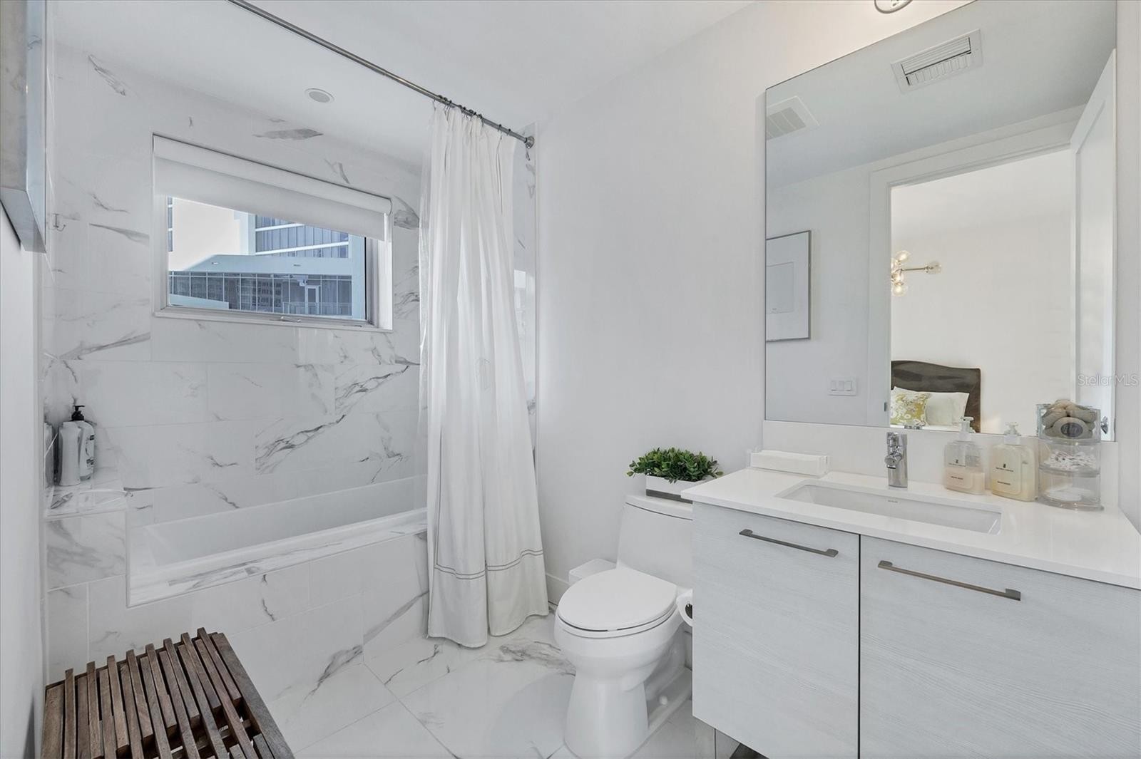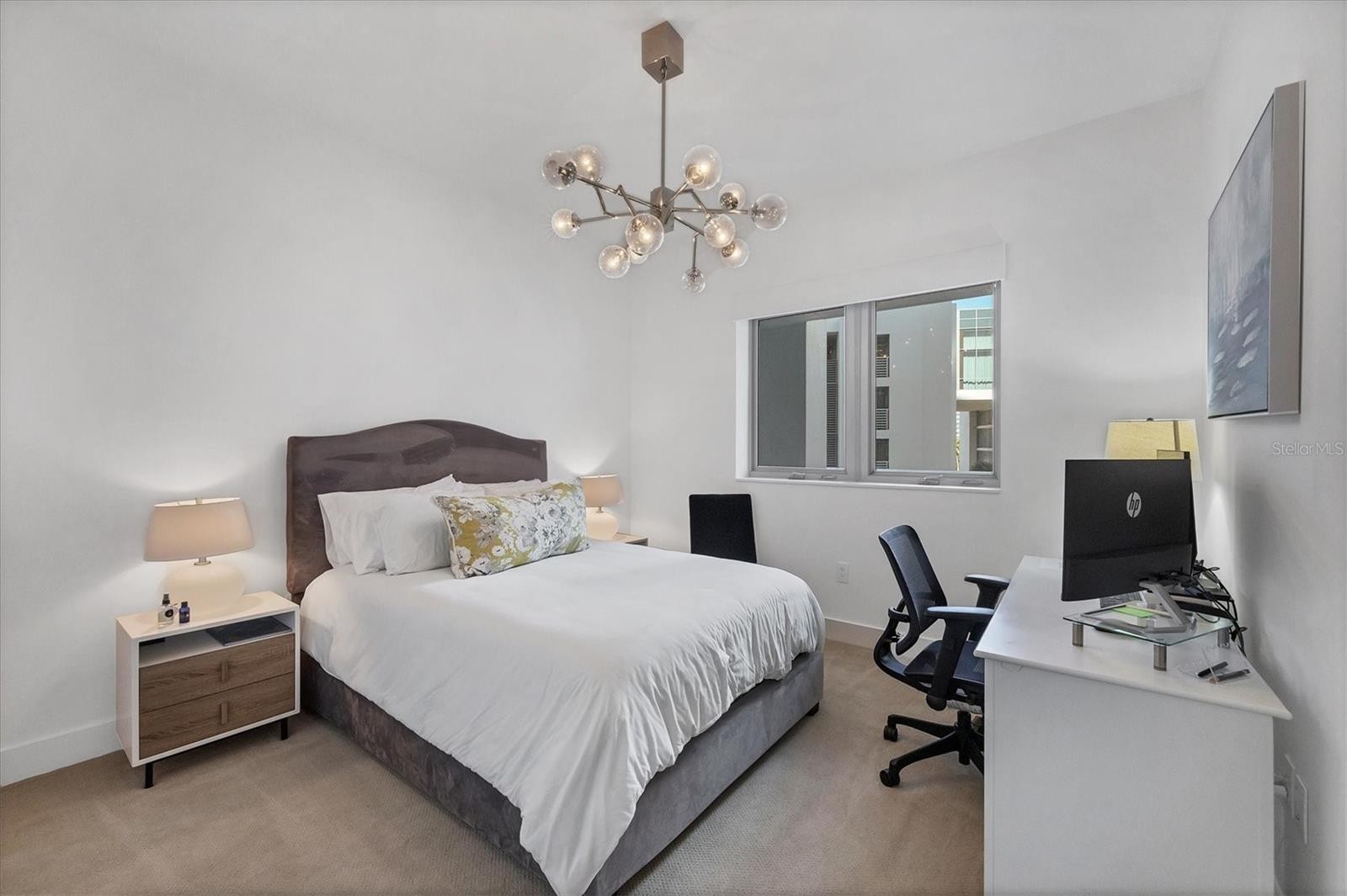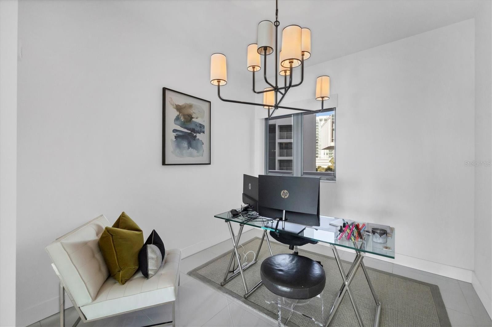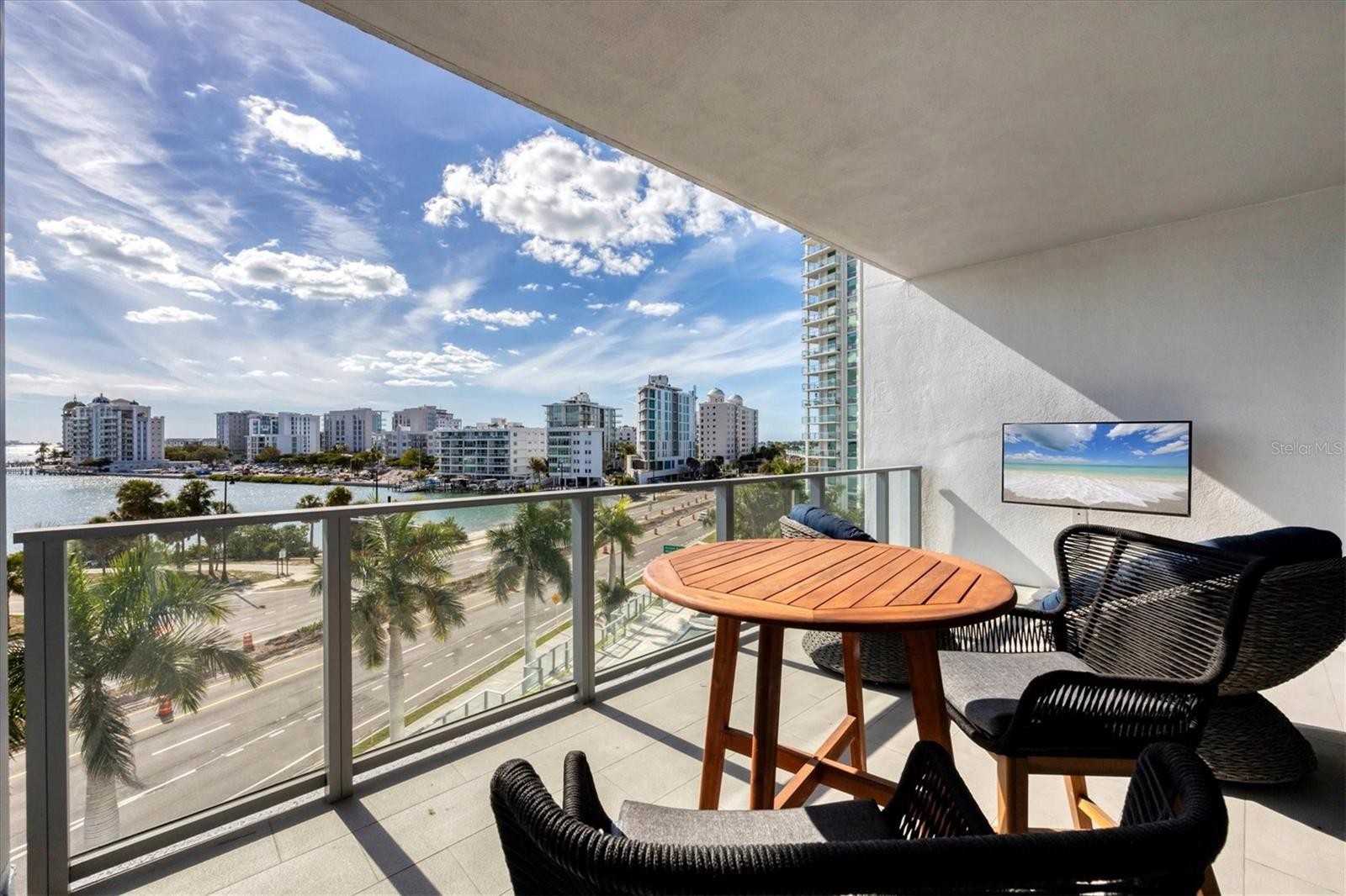 Enjoy amazing views in The VUE! This stunning 2-bedroom, 2.5-bath condo + office offers breathtaking, floor-to-ceiling views of sparkling Sarasota Bay. You will fall in love with the expansive windows and large terrace overlooking the resort-style pool, Sarasota Bay, and Marina Jack’s. Beautiful modern design elements and contemporary furnishings create an elegant, move-in-ready retreat. The primary suite features a king bed, bay views, a spacious walk-in closet, and a spa-like bath. The guest bedroom offers a queen bed and private ensuite. In addition, this unit has TWO parking spaces! The VUE sets the standard for luxury living with valet parking, concierge services, 24/7 security, a heated resort-style pool and spa, and a state-of-the-art fitness center. All just moments from Sarasota’s vibrant arts scene, culture, and award-winning dining.