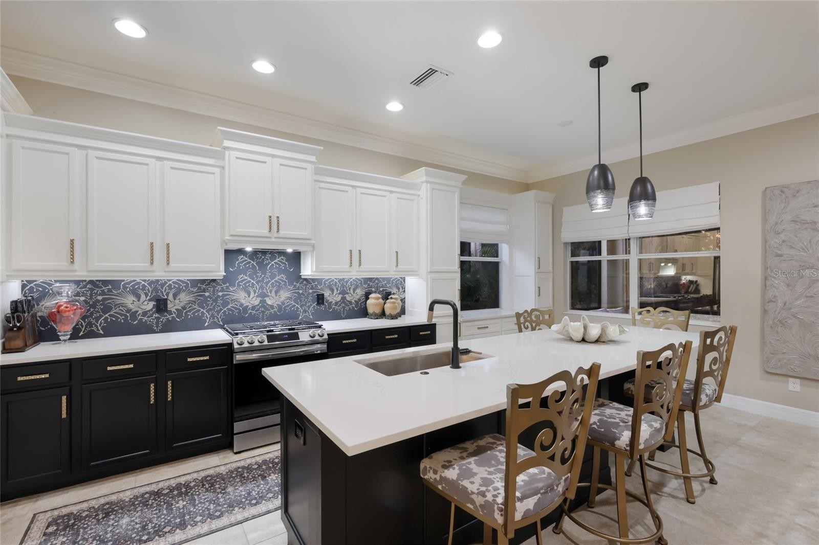 Stunning, one-of-a-kind and truly a must-see 3 Bedroom + Office, 2 Bath Home. This fully renovated Central Park home delivers designer-level finishes and upgrades at every turn—curated by a local interior designer and executed with intention throughout. Ideally located just a few homes down from the community pool and spa and fitness center, the setting is as convenient as it is impressive. The 2024 kitchen renovation expanded the space and elevated functionality with extensive cabinetry, an oversized island with extra seating, Cambria quartz countertops, a stainless undermount sink with a sleek modern faucet, concealed range hood, gas range, stainless appliances, a built-in coffee station, microwave cabinet, statement pendant lighting, and both under- and above-cabinet lighting. The primary suite feels straight out of a high-end magazine with a reimagined bath featuring a freestanding soaking tub, curbless walk-in shower wrapped in tile to the ceiling, designer shower floor tile, lighted mirrors, chandelier and upgraded lighting, new plumbing fixtures, a new vanity with quartz countertops and undermount sinks, and a new Kohler toilet. The guest bath is equally refined with exotic granite, updated plumbing fixtures, and a new Kohler toilet. Additional upgrades include crown molding, wainscoting, and tall baseboards in the foyer, dining room, and great room; elevated designer wall finishes in the kitchen, dining room, and both baths; fresh interior paint including doors and trim; all new lighting and ceiling fans; modern door hardware throughout; custom closets in both primary closets; full-perimeter gutters; and exterior paint. Major systems are updated too, with a 2024 HVAC upgrade including a 17.2 SEER2 two-stage heat pump system, Ecobee smart thermostat, and transferable warranty. ***HOA COVERS: Community Pool, Gym, Gated Community, Lawn Maintenance, Park & Pavilion, 2 Dog Parks, Playground & Splash Pad, Tennis Courts that sub as Pickleball Courts, and Sports Field, Community Manager, Common Grounds Maintenance Trimming & Irrigation. LOCATION: Centrally located. Just outside the gates are A+ schools, Gullett Elementary, Lakewood Ranch High School, and Mona Jain Middle School, LECOM, & Manatee Tech East Campus. Minutes to shopping, restaurants, gyms, salons, bars, etc. Minutes to downtown, Sarasota International Airport, the top rated beaches in the country, UTC Shopping. **FENCES ARE NOT ALLOWED IN THIS SECTION OF THE COMMUNITY***