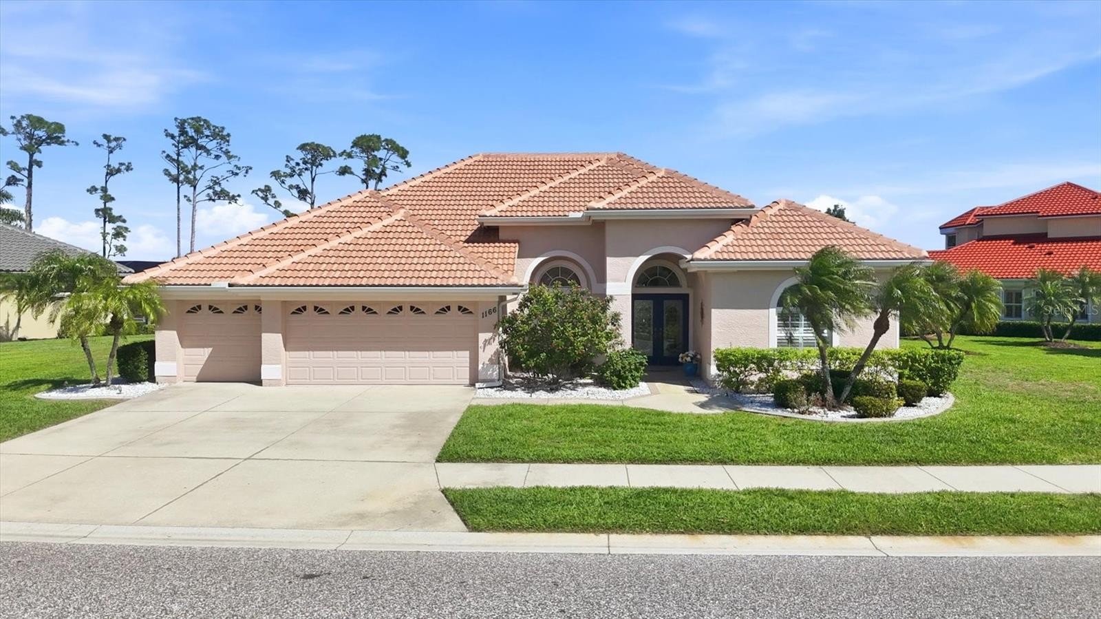 HERON CREEK GOLF & CC Available for immediate Occupancy! 4 BED/3BATH + FLEX AND 3 CAR GARAGE just under 2700 SQFT! Buyers, you’ll need to take the lead on this one—Victory Vista is a rare prize on Marsh #7, and whoever claims it will feel like the true winner. Perfectly poised on a rare oversized .39-acre homesite overlooking the emerald green and lake beyond ..this executive series home is a timeless expression of casually elegant Florida living where space, privacy, and effortless comfort come together in harmony. From its stately curb appeal with a NEW BARREL TILE ROOF (2025), multi-dimensional rooflines, and graceful arched windows to the inviting leaded glass entry, this 4-BED, 3-BATH residence with flex space and 3-CAR-GARAGE welcomes you into a light-filled, open design that flows like an easy tropical breeze. Expansive living and dining areas transition seamlessly into the heart of the home—an impressive island kitchen adorned with rich cherry cabinetry, JENNAIR cooktop, built-in oven, and abundant gathering space—while the family room and bonus flex area provide room for everyone to relax or entertain. Cascading pocketing sliders dissolve the boundary between indoors and out, opening to a spacious pavered lanai where a heated pool and spa invite sunrise coffee and afternoon refreshment, all framed by lush tropical landscaping and generous distance between neighboring homes for exceptional privacy. The desirable split plan offers a serene primary retreat with dual walk-in closets and a spa-inspired bath featuring soaking tub, dual vanities, and walk-in shower, while guests enjoy a private two-bedroom suite and an additional bedroom with adjacent pool bath with outdoor access to the lanai and pool. Thoughtful details including tile on the diagonal, crown molding, plantation shutters, Hunter Douglas Shades, custom window treatments, wall finishes, and artistically marbled, columned transitions elevate the home’s warm, inviting aesthetic. This home has been meticulously maintained, and furnishings will be offered under separate contract for a desirable turnkey option. So you can just move in carefree !With eastern rear exposure, a location near the Price Blvd gate, quick golf cart access to the clubhouse, and proximity to shopping and dining, this Nohl Crest Sherwood floorplan delivers a rare blend of space to roam, refined comfort, and the coveted Heron Creek lifestyle—where nothing compares.. Heron Creek offers exceptional amenities including a 21,000 sq ft clubhouse, 27 holes of Championship golf Arthur Hills design, resort style pool & spa, a robust social activity calendar, fitness center, Tennis courts & formal & casual dining options! Club Membership is required w/ 3 membership levels offered beginning at $276/month *NO CDD FEES * LOW HOA FEES include lawn care, trimming, mulching, irrigation, FIBER OPTIC/ TV/ HIGH-SPEED INTERNET & Gated entry, conveniently located w/easy access to I-75 & US-41, Cocoa Plum Shopping ,Myakkahatchee Creek trails, WELLEN PARK, Braves Stadium, COSTCO & is just 3 miles to the new 504 Million SMH Hospital under construction NOW at I-75 & Sumter Blvd! FLOOD ZONE X no flood insurance required.
