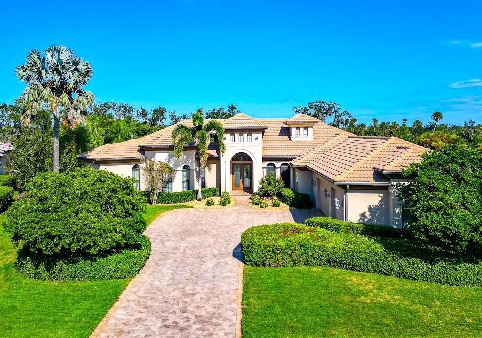 Discover the perfect blend of craftsmanship, comfort, and elegance in this custom-built Arthur Rutenberg estate home, ideally located in The Isles of River Wilderness—one of the area’s most prestigious guard-gated, boating communities. Nestled on an exceptionally private preserve homesite of over half an acre, this residence is thoughtfully designed to capture the true essence of Florida living, complete with stunning water views. Boasting approximately 4,300 square feet of refined living space, this impressive home features striking curb appeal and an oversized three-car garage. Upon entering through the grand double doors, you are immediately greeted by breathtaking estate and water views, setting the tone for the home’s sophisticated design, high-end features, and quality finishes throughout. The home offers four spacious bedrooms, each with its own en-suite bath and custom-built closets, ensuring comfort and privacy for family and guests alike. A dedicated office provides the perfect space for work, study, or leisure. The chef’s kitchen is a standout, equipped with GE Monogram stainless steel appliances, abundant cabinetry, a massive granite center island, and a Butler’s pantry complete with a wine refrigerator—ideal for entertaining. The great room showcases floor-to-ceiling sliding glass doors, flooding the home with natural light and offering seamless indoor-outdoor living with spectacular private views from nearly every room. Step outside to your own personal resort. The expansive, caged lanai features multiple seating areas, a wood-burning fireplace, outdoor kitchen, spa, and a stunning pool—perfect for relaxing or hosting unforgettable gatherings. This exceptional estate offers luxury, privacy, and lifestyle in one remarkable setting. Come experience it for yourself and fall in love with your new home.