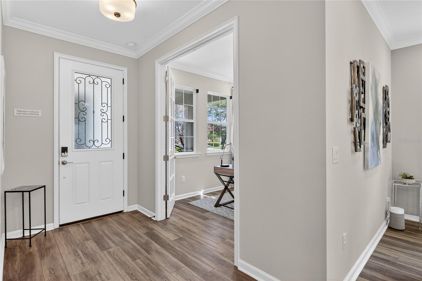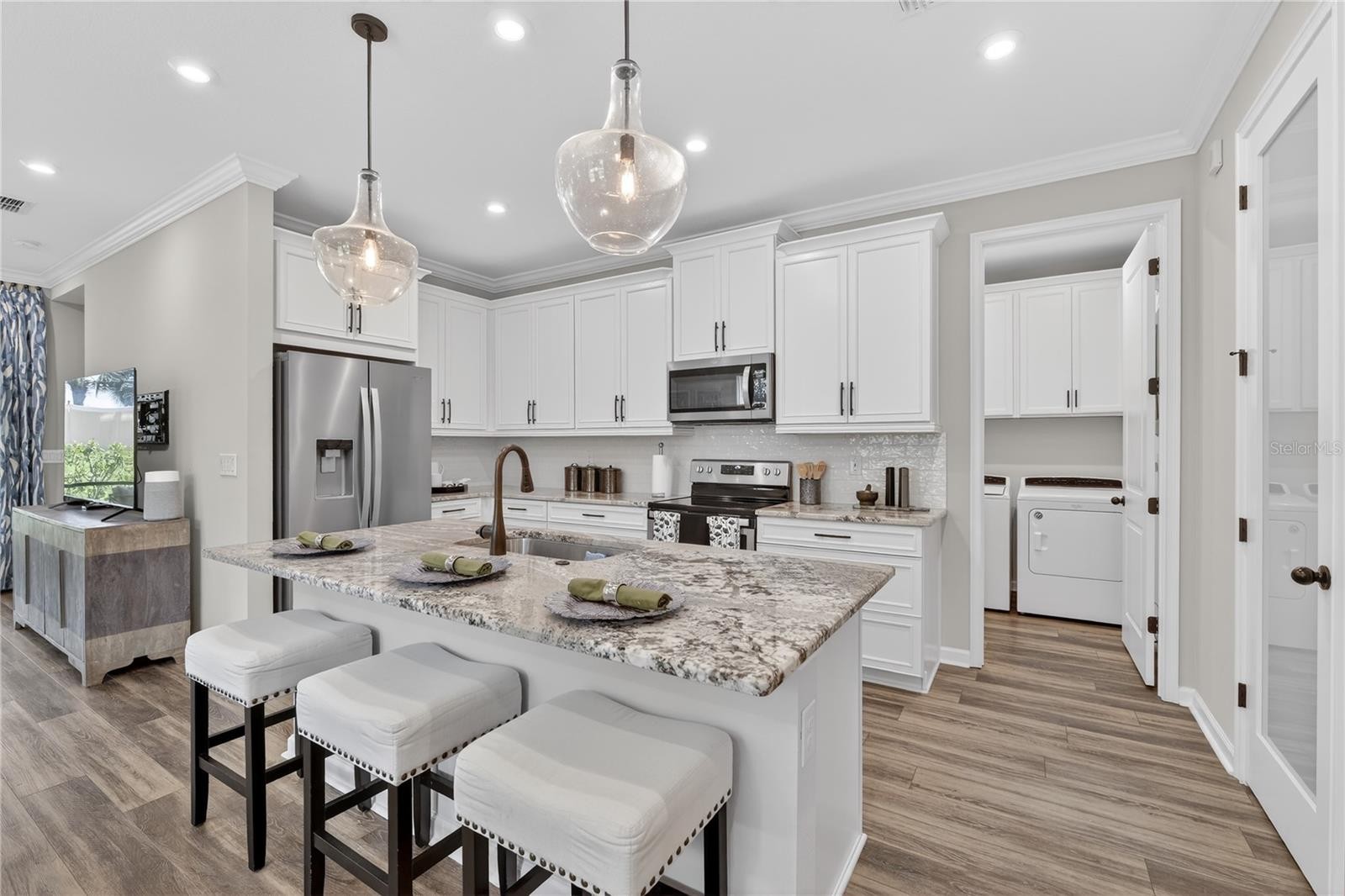 Under contract-accepting backup offers. WELCOME TO THIS BEAUTIFULLY APPOINTED FORMER MODEL HOME IN RENAISSANCE AT WELLEN PARK, OFFERED FURNISHED and showcasing an impressive list of designer upgrades throughout. From the moment you step inside, you'll appreciate the 8-foot interior doors, crown molding, updated lighting, and stylish ceiling fans, all contributing to the home's refined yet comfortable feel. The open-concept living space is enhanced by luxury vinyl flooring throughout the main living areas and primary suite. The heart of the home the well-designed kitchen featuring granite countertops, subway title backsplash, glass pantry door, and convenient pull-out drawers for easy organization. Just beyond the living area, triple pocket sliding doors open fully to the lanai, creating a true indoor/outdoor living experience while framing extensive and private preserve views on an upgraded premium lot with private preserve land on the side. The primary suite offers a tranquil retreat, highlighted by a tray ceiling, spacious walk-in closet, ad a spa inspired bathroom with dual vanities, title-to-the ceiling shower with decorative tile detail, and pebble tile flooring. Both bathrooms feature tile extending to the ceiling in the showers. Additional features include a spacious den or flex room ideal for a home office or quest space, cabinetry in the laundry room, whole house security system, and epoxy flooring in the garage. Located in the highly sought-after Renaissance community of Wellen Park, where residents enjoy a vibrant lifestyle with resort-style amenities including a clubhouse, pool, fitness center, pickleball courts, tennis, activities director and more. All located just minutes from Downtown Wellen Park, Gulf beaches, dining, shopping, and everyday conveniences. This move-in-ready, furnished former model offers the perfect blend of upgrades, privacy, and lifestyle living in one of Wellen Park's most desirable communities. Schedule your showing today!