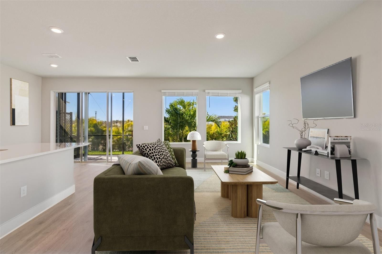 Located in the highly desirable North River Ranch community in Parrish, Florida, this thoughtfully designed Bingley townhome offers 3 bedrooms, 2.5 bathrooms, 2,145 square feet of living space, and a highly functional layout that blends comfort with versatility. The home also features a private study with French doors on the main floor, an upstairs loft ideal for a secondary living area or media space, and a two car plus garage for added storage and convenience. As an end unit, the home enjoys additional windows that allow natural light to pour in, creating a bright and welcoming atmosphere throughout. The open concept main living area seamlessly connects the kitchen, dining, and family room, creating a spacious environment perfect for both everyday living and entertaining. Large windows enhance the sense of openness while bringing in abundant natural light. Upstairs, the owner’s retreat provides a relaxing escape with a private en-suite bathroom and a generous walk in closet. Two additional bedrooms, a full bathroom, and the versatile loft space complete the second floor, offering flexibility for a home office, playroom, or additional lounge area. Residents of North River Ranch enjoy access to an impressive collection of resort style amenities, including multiple clubhouses, fitness centers, swimming pools, game rooms, and miles of scenic walking and biking trails. The community also features parks, playgrounds, and a dedicated dog park designed to encourage an active and connected lifestyle. The home is conveniently located near Barbara A. Harvey Elementary School and Parrish Community High School, with a future middle school planned nearby. This beautifully designed home offers a wonderful opportunity to enjoy modern townhome living with thoughtful spaces, abundant natural light, and access to one of Parrish’s most vibrant master planned communities.