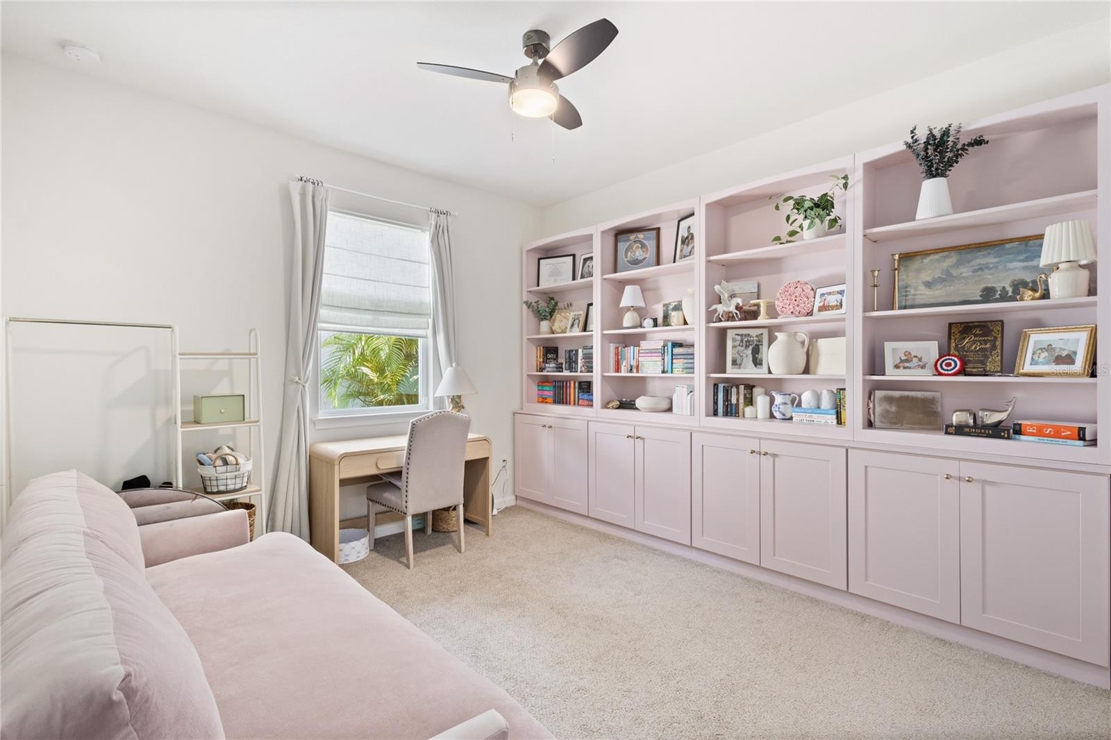 Welcome to this beautifully appointed 3-bedroom, 2.5-bath home in the sought-after Renaissance at West Villages community in Venice. Built in 2019, this stylish contemporary residence offers an open floor plan, a versatile flex room, bonus spaces ideal for a home office or den, and a spacious 2-car garage with an electric vehicle charging station. Flood Insurance NOT required with this home. The owners have invested extensively in upgrades, including a $60,000 tile roof (2024), custom electric fireplace (2025), and a custom modular library that is removable. Additional updates include new dishwasher (2025), water heater (2025), updated kitchen and bath fixtures, exterior paint (2025), water softener, gutters, and rear yard metal fencing. The upgraded gourmet kitchen features quartz countertops, subway tile backsplash, upgraded appliances, and a large center island with breakfast bar, perfect for casual dining and entertaining. The living room opens seamlessly to the lanai through sliding glass doors, creating an inviting indoor-outdoor living experience with tranquil views. The primary suite offers a tray ceiling, walk-in closet, and a private en-suite bath with dual sinks and an oversized walk-in shower. Storm panels are included for added peace of mind. Renaissance at West Villages is a Tuscan-style gated community offering resort-style amenities, including a clubhouse with fitness center and full kitchen, social activities, a heated pool, tennis and pickleball courts, playground, and scenic walking trails—all with low HOA fees. Located across the street from downtown Wellen Park where you will find restaurants, bars, and shoppes, and be able to enjoy family farmers markets, live music, and community gatherings. Just minutes away, explore Venice’s historic downtown, featuring charming boutiques, architectural landmarks, and peaceful parks. Enjoy Florida’s natural beauty by searching for shark teeth along Caspersen Beach or relaxing at nearby coastal favorites such as Venice Beach, the Venice Fishing Pier, and Brohard South and North Beaches. Outdoor enthusiasts will appreciate the option to rent bicycles from Venice Bikes and Trikes and ride along the scenic Legacy Trail. Experience local wildlife and serene surroundings at Shamrock Park and Nature Center or Venetian Waterway Park. Shopping and entertainment abound at the Venice Farmers Market and Ideal Classic Cars. For fishing and stunning waterfront views, South Jetty Beach is a must-visit destination.