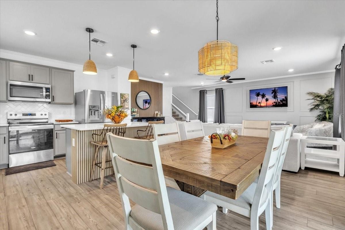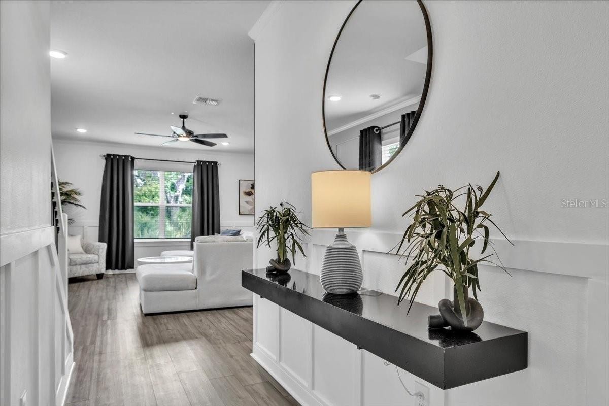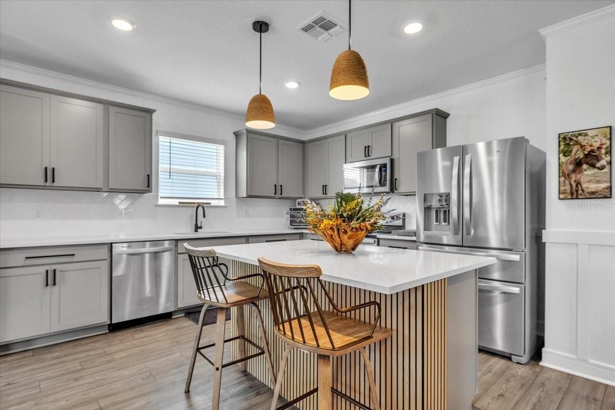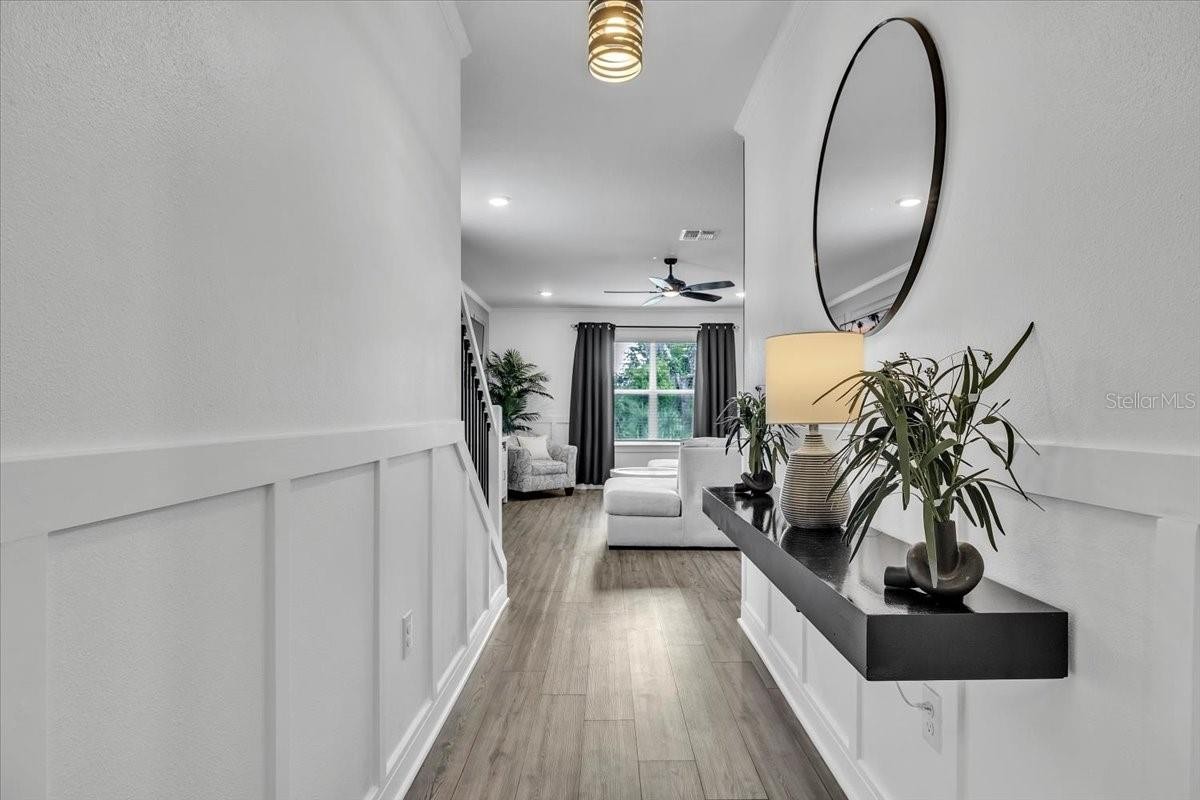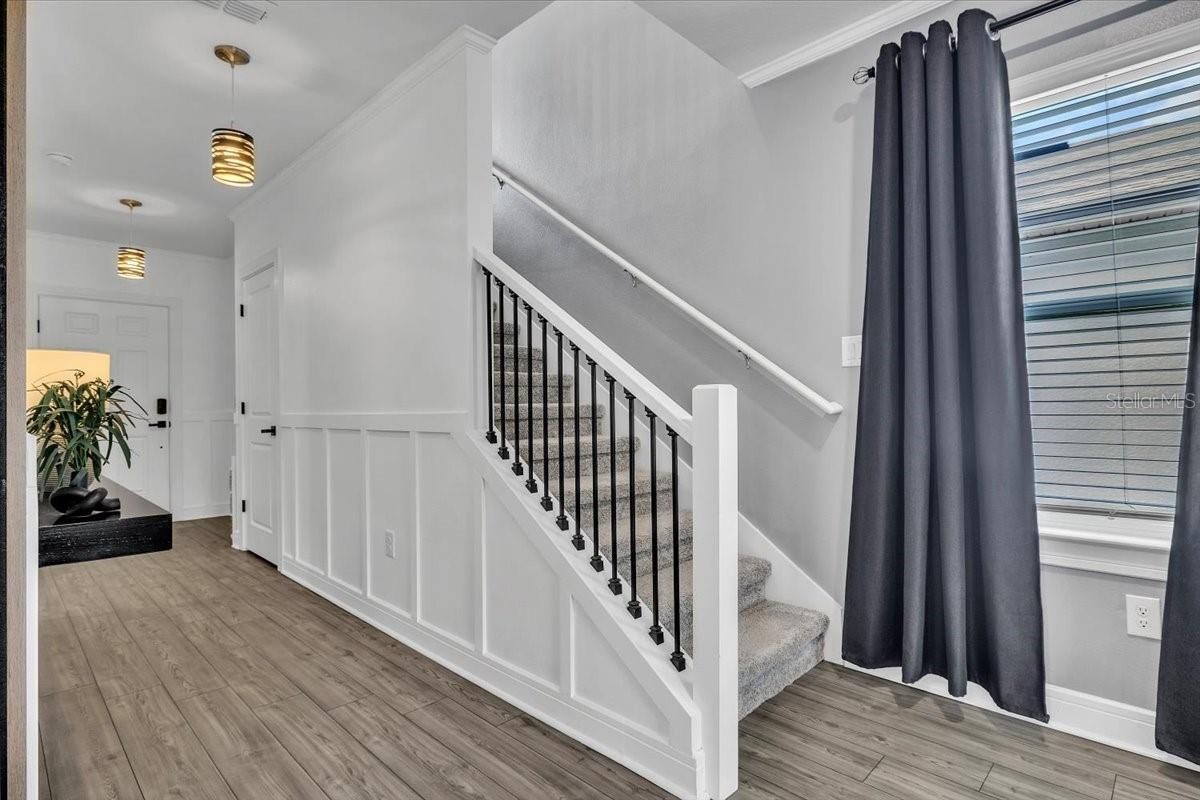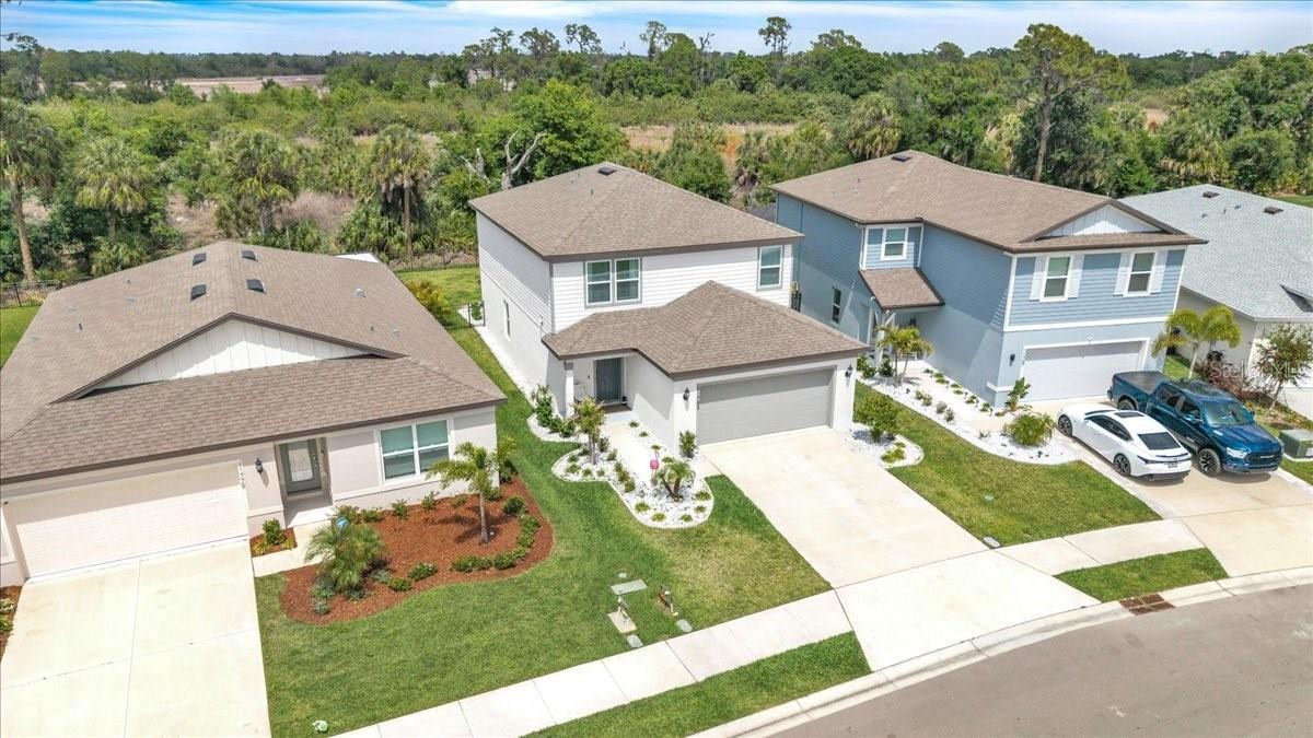 Welcome to this stunning, nearly new home in the highly desirable Isles at Bayview community in Parrish. Perfectly positioned on a premium lot with serene private preserve views, this impressive 4-bedroom, 3-bath residence with a 2-car garage offers modern elegance, 1 of the bedrooms and full bathroom is located on the 1st floor making a perfect retreat or space for in-laws. 2nd floor offers a gorgeous loft area an ideal as private living room, game room or a space for the children to play. Upstairs also features 2 additional bedrooms as well as the Master bedroom suite, Laundry room as well as an additional full bathroom. this home features thoughtful elegant upgrades, and exceptional indoor-outdoor living. Only two years old, this home shows like a model and is truly move-in ready. From the moment you enter, you’ll appreciate the bright, open-concept layout designed for both comfortable everyday living and effortless entertaining. The freshly painted interior is enhanced by crown molding, picture frame molding, and chair rail detailing throughout the entire first floor, creating a refined and stylish atmosphere. A beautifully remodeled staircase with the wall removed opens the main level to the loft, delivering a contemporary, airy feel. Glass French doors highlight the pantry and bar area, while a custom feature wall adds character and visual interest to the loft space. The kitchen has been thoughtfully upgraded with new hardware, drawer pulls, and handles, complemented by updated faucets in the kitchen and all bathrooms. Newly installed designer lighting and ceiling fans elevate every room, and upgraded door handles and knobs throughout provide a cohesive, polished finish. A blend of luxury vinyl plank flooring and plush carpet adds both durability and comfort. Step outside to your private outdoor retreat featuring an extended patio, added screening on the lanai, and expanded paver area—perfect for entertaining, relaxing, or enjoying peaceful preserve views. The home’s curb appeal is enhanced with upgraded landscaping and white decorative rock around the perimeter for a clean, modern look. Residents of Isles at Bayview enjoy fantastic amenities including a clubhouse, resort-style pool, dog park, and playground. Ideally located off Moccasin Wallow Road with quick access to I-75, approximately 30 minutes to St. Pete, and just minutes from a brand-new hospital, shopping, dining, golf, and beautiful Gulf beaches. This home offers the perfect combination of tranquility, convenience, and modern Florida living. Don’t miss your opportunity to own this exceptional property.