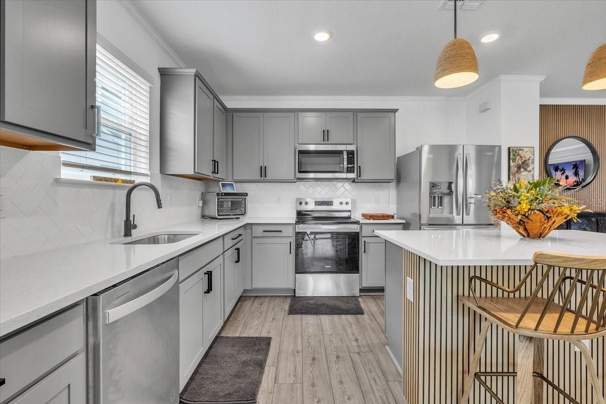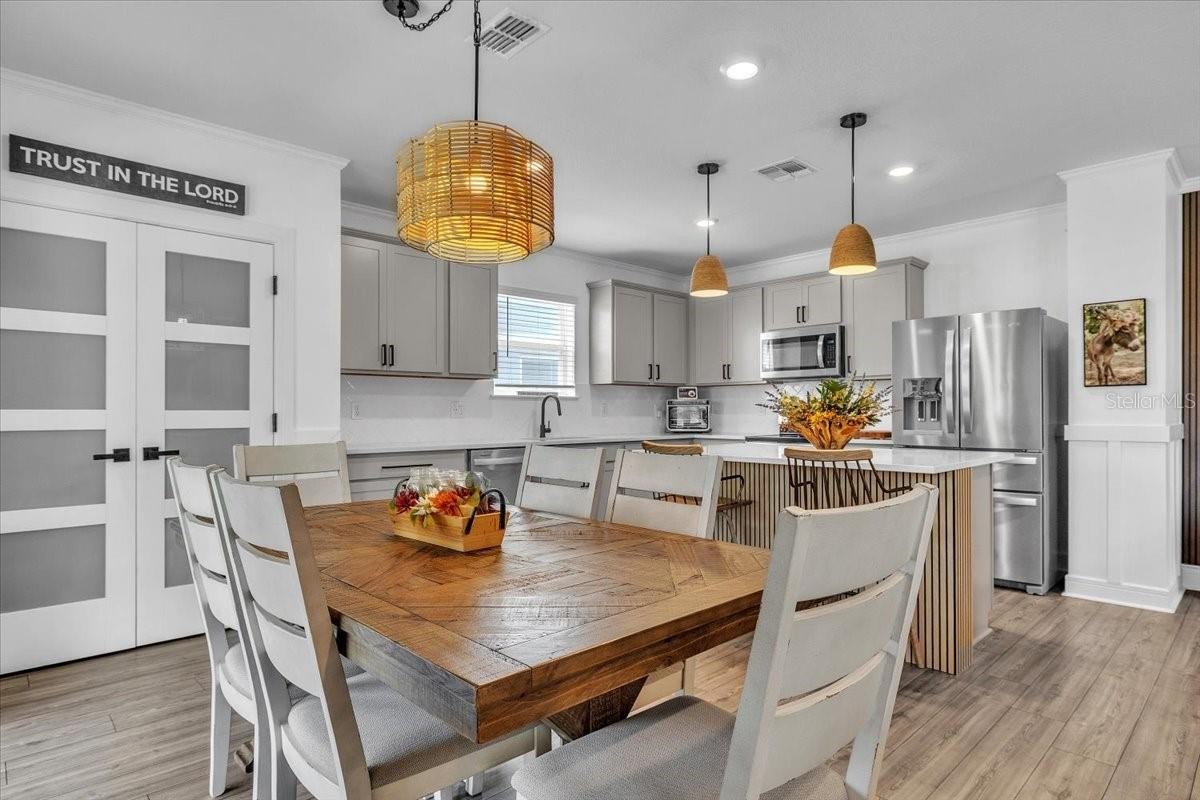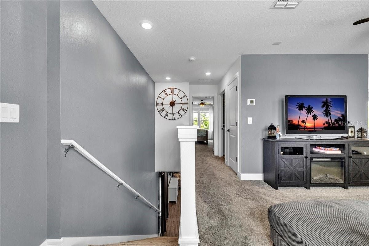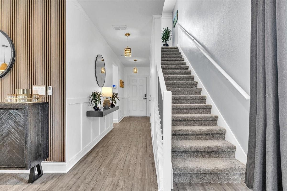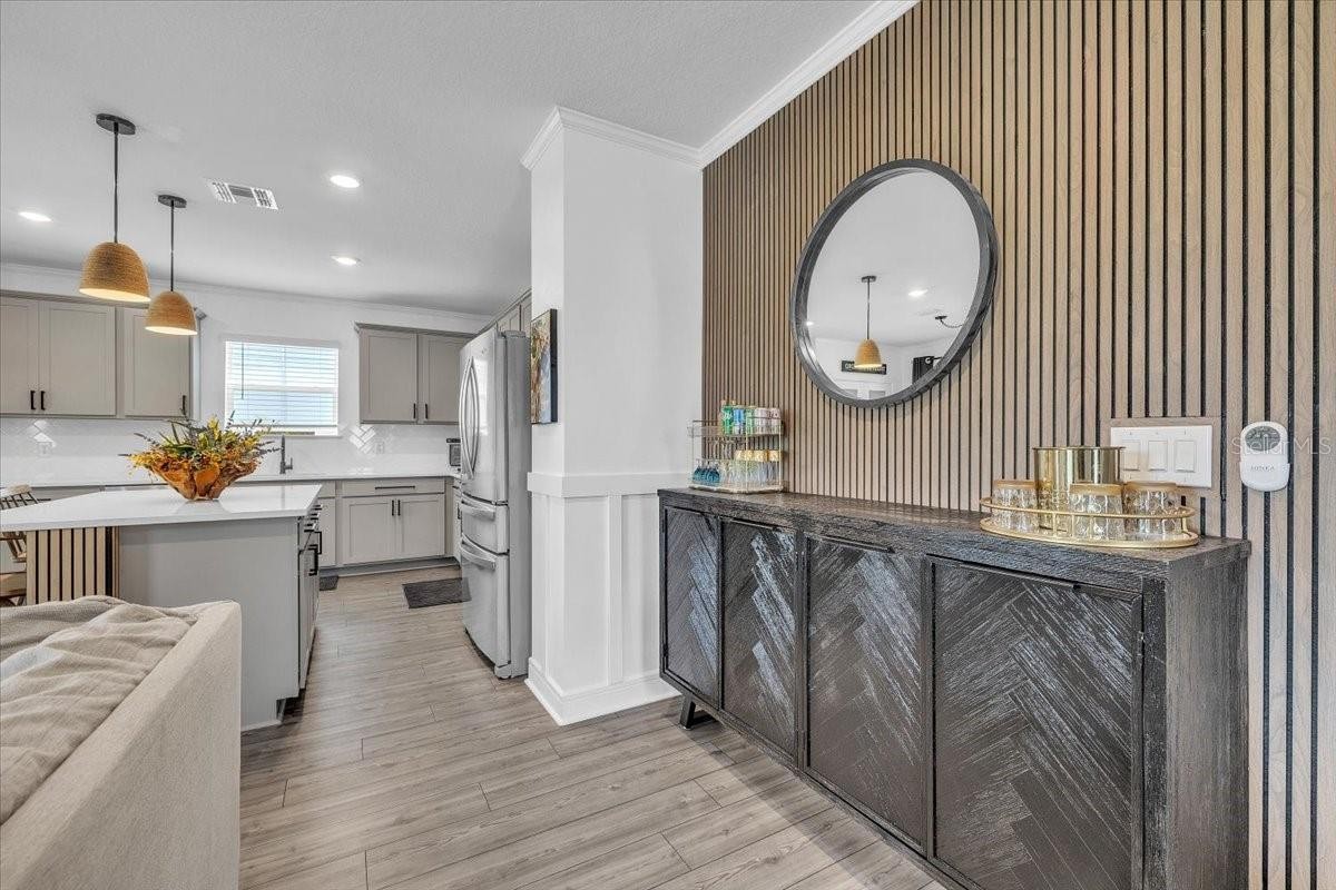 Welcome to this stunning, nearly new home in the highly desirable Isles at Bayview community in Parrish. Perfectly positioned on a premium lot with serene private preserve views, this impressive 4-bedroom, 3-bath residence with a 2-car garage offers modern elegance, 1 of the bedrooms and full bathroom is located on the 1st floor making a perfect retreat or space for in-laws. 2nd floor offers a gorgeous loft area an ideal as private living room, game room or a space for the children to play. Upstairs also features 2 additional bedrooms as well as the Master bedroom suite, Laundry room as well as an additional full bathroom. this home features thoughtful elegant upgrades, and exceptional indoor-outdoor living. Only two years old, this home shows like a model and is truly move-in ready. From the moment you enter, you’ll appreciate the bright, open-concept layout designed for both comfortable everyday living and effortless entertaining. The freshly painted interior is enhanced by crown molding, picture frame molding, and chair rail detailing throughout the entire first floor, creating a refined and stylish atmosphere. A beautifully remodeled staircase with the wall removed opens the main level to the loft, delivering a contemporary, airy feel. Glass French doors highlight the pantry and bar area, while a custom feature wall adds character and visual interest to the loft space. The kitchen has been thoughtfully upgraded with new hardware, drawer pulls, and handles, complemented by updated faucets in the kitchen and all bathrooms. Newly installed designer lighting and ceiling fans elevate every room, and upgraded door handles and knobs throughout provide a cohesive, polished finish. A blend of luxury vinyl plank flooring and plush carpet adds both durability and comfort. Step outside to your private outdoor retreat featuring an extended patio, added screening on the lanai, and expanded paver area—perfect for entertaining, relaxing, or enjoying peaceful preserve views. The home’s curb appeal is enhanced with upgraded landscaping and white decorative rock around the perimeter for a clean, modern look. Residents of Isles at Bayview enjoy fantastic amenities including a clubhouse, resort-style pool, dog park, and playground. Ideally located off Moccasin Wallow Road with quick access to I-75, approximately 30 minutes to St. Pete, and just minutes from a brand-new hospital, shopping, dining, golf, and beautiful Gulf beaches. This home offers the perfect combination of tranquility, convenience, and modern Florida living. Don’t miss your opportunity to own this exceptional property.