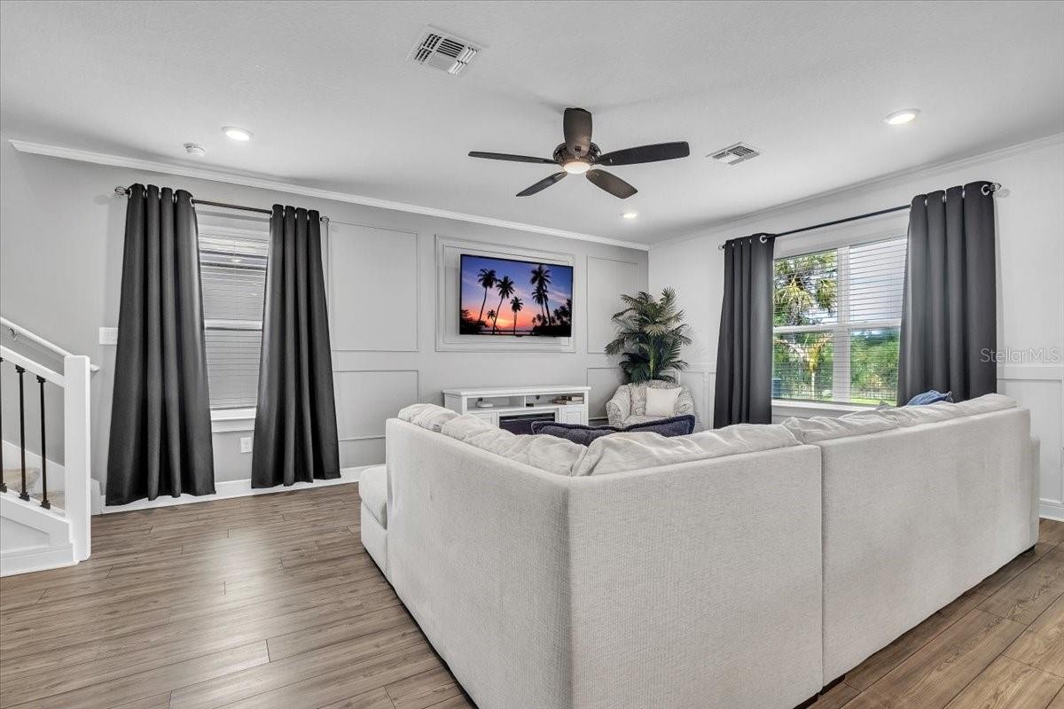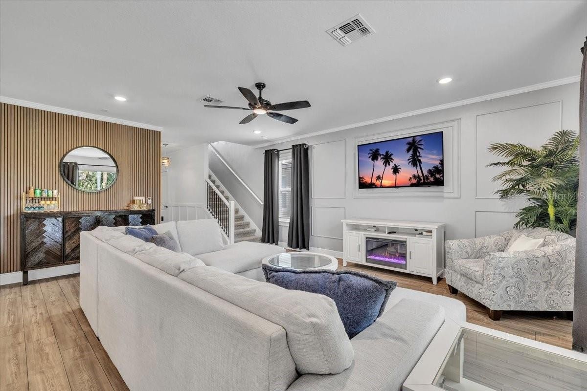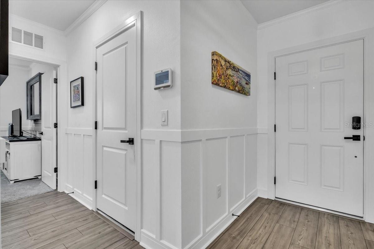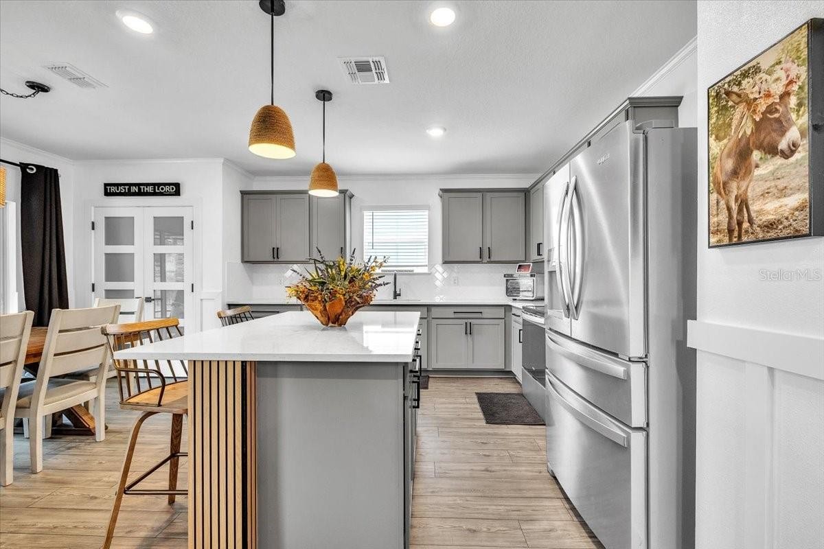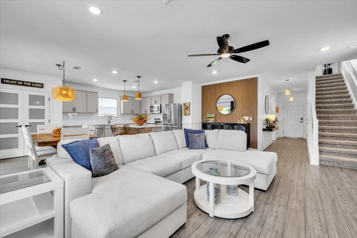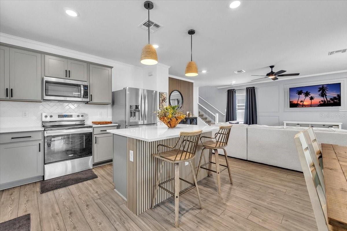 Welcome to this stunning, nearly new home in the highly desirable Isles at Bayview community in Parrish. Perfectly positioned on a premium lot with serene private preserve views, this impressive 4-bedroom, 3-bath residence with a 2-car garage offers modern elegance, 1 of the bedrooms and full bathroom is located on the 1st floor making a perfect retreat or space for in-laws. 2nd floor offers a gorgeous loft area an ideal as private living room, game room or a space for the children to play. Upstairs also features 2 additional bedrooms as well as the Master bedroom suite, Laundry room as well as an additional full bathroom. this home features thoughtful elegant upgrades, and exceptional indoor-outdoor living. Only two years old, this home shows like a model and is truly move-in ready. From the moment you enter, you’ll appreciate the bright, open-concept layout designed for both comfortable everyday living and effortless entertaining. The freshly painted interior is enhanced by crown molding, picture frame molding, and chair rail detailing throughout the entire first floor, creating a refined and stylish atmosphere. A beautifully remodeled staircase with the wall removed opens the main level to the loft, delivering a contemporary, airy feel. Glass French doors highlight the pantry and bar area, while a custom feature wall adds character and visual interest to the loft space. The kitchen has been thoughtfully upgraded with new hardware, drawer pulls, and handles, complemented by updated faucets in the kitchen and all bathrooms. Newly installed designer lighting and ceiling fans elevate every room, and upgraded door handles and knobs throughout provide a cohesive, polished finish. A blend of luxury vinyl plank flooring and plush carpet adds both durability and comfort. Step outside to your private outdoor retreat featuring an extended patio, added screening on the lanai, and expanded paver area—perfect for entertaining, relaxing, or enjoying peaceful preserve views. The home’s curb appeal is enhanced with upgraded landscaping and white decorative rock around the perimeter for a clean, modern look. Residents of Isles at Bayview enjoy fantastic amenities including a clubhouse, resort-style pool, dog park, and playground. Ideally located off Moccasin Wallow Road with quick access to I-75, approximately 30 minutes to St. Pete, and just minutes from a brand-new hospital, shopping, dining, golf, and beautiful Gulf beaches. This home offers the perfect combination of tranquility, convenience, and modern Florida living. Don’t miss your opportunity to own this exceptional property.