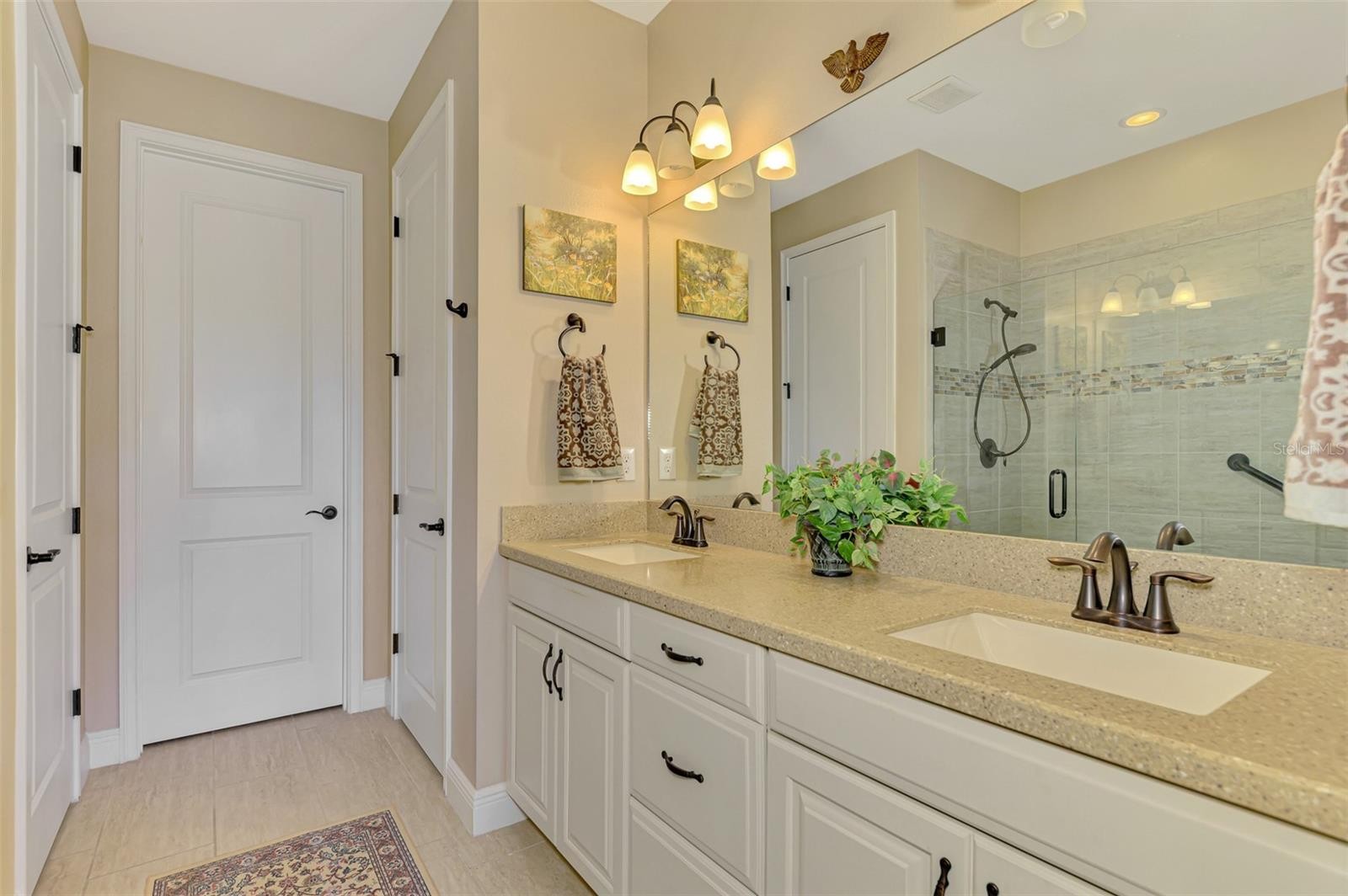 DON'T MISS THIS AMAZING 2 BEDROOM, TWO BATH, 2 CAR GARAGE HOME located in sought-after Renaissance at Wellen Park. This 1,629 sq ft single-level end unit home offers low-maintenance living just minutes from Venice’s newest dining and recreation hub. Set on a corner lot on a quiet interior street, it features an open layout with high ceilings and a OVERSIZED EXTENDED SCREENED LANAI overlooking a peaceful lake. The foyer leads to a flexible den/office, while the great room flows seamlessly into the dining area and upgraded kitchen with stone countertops, modern cabinetry, stainless appliances, and a large island. Both bathrooms showcase contemporary tile, upgraded fixtures, and ample storage. The primary suite includes a walk-in closet, dual sinks, and a glass-enclosed shower. A split-bedroom layout provides privacy for guests. Additional highlights: whole home water filtration system, crown molding, recessed lighting, window coverings, huge interior laundry room with sink, and a two-car garage with golf cart space. Energy-efficient windows and UV-enhanced HVAC add year-round comfort. HOA-maintained tropical landscaping allows for a true lock-and-leave lifestyle. Renaissance offers resort-style amenities including a pool, fitness center, clubhouse, tennis & pickleball courts, dog park, and sidewalks, with direct access to Wellen Park trails. Ideally located so you can enjoy unique local cuisine, world class fishing, award winning beaches, shopping, golf, 2 spring training venues (Rays and Braves), and so much more!! Call today for your private tour and start living the Florida lifestyle!!
