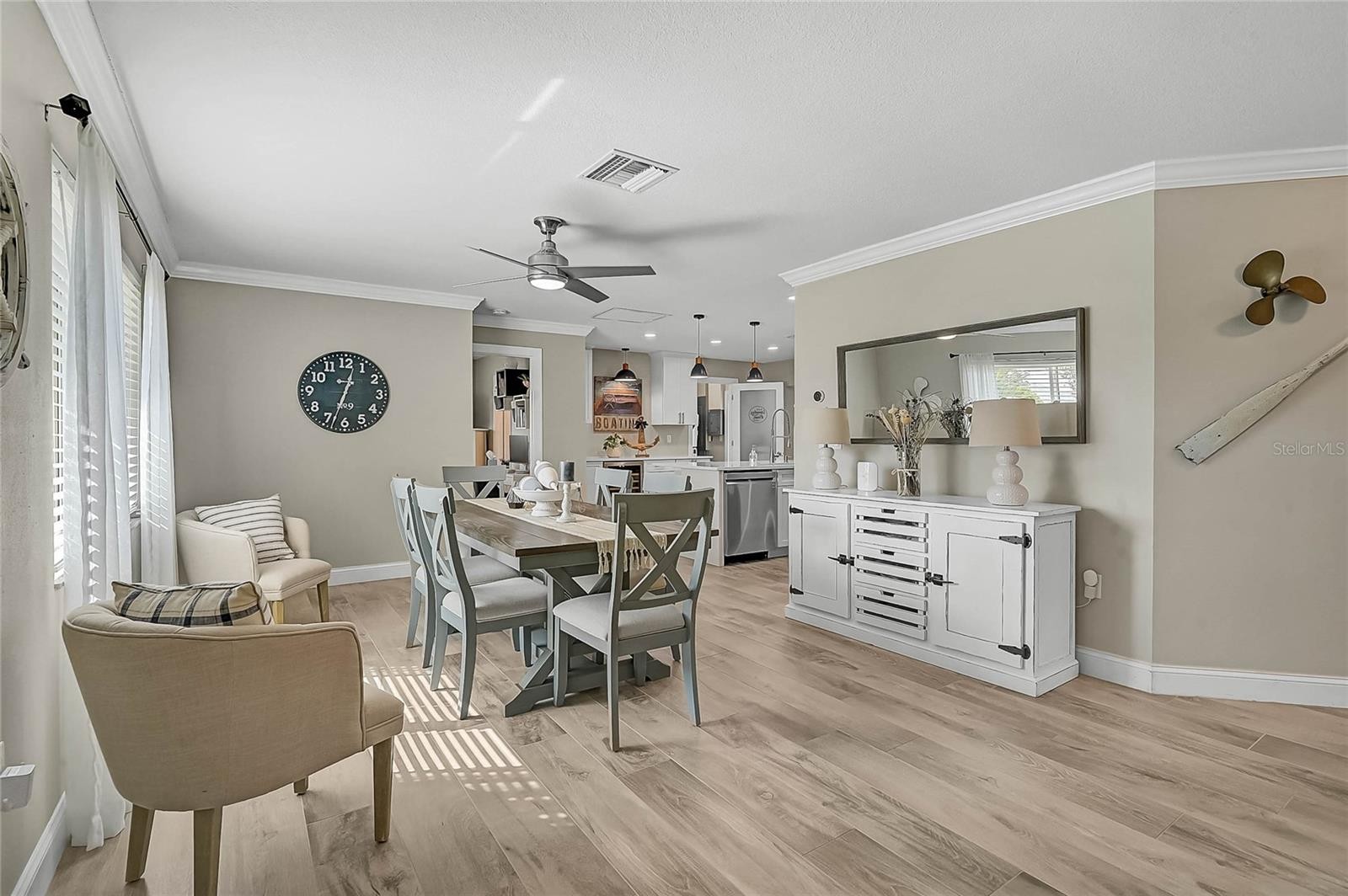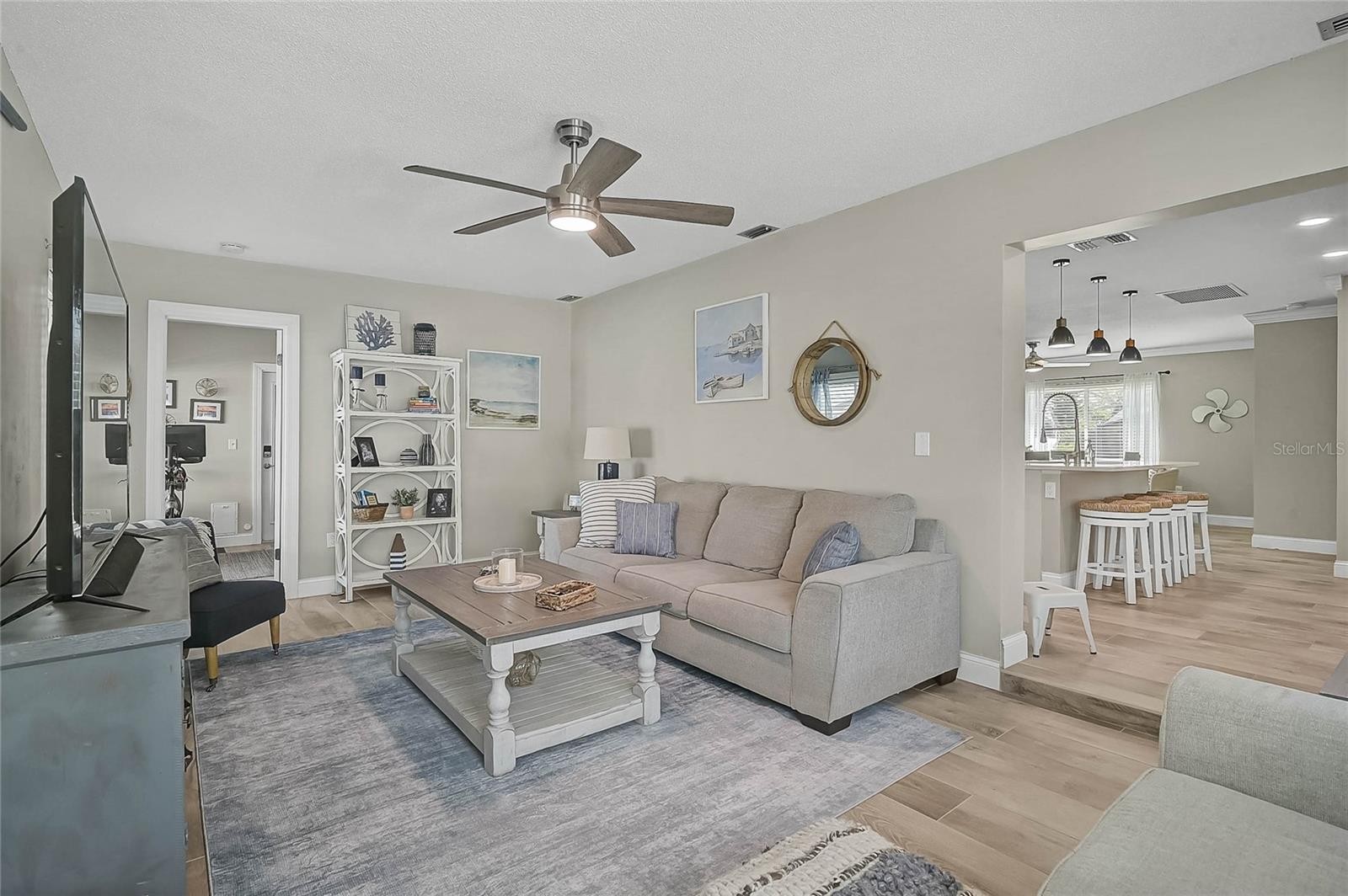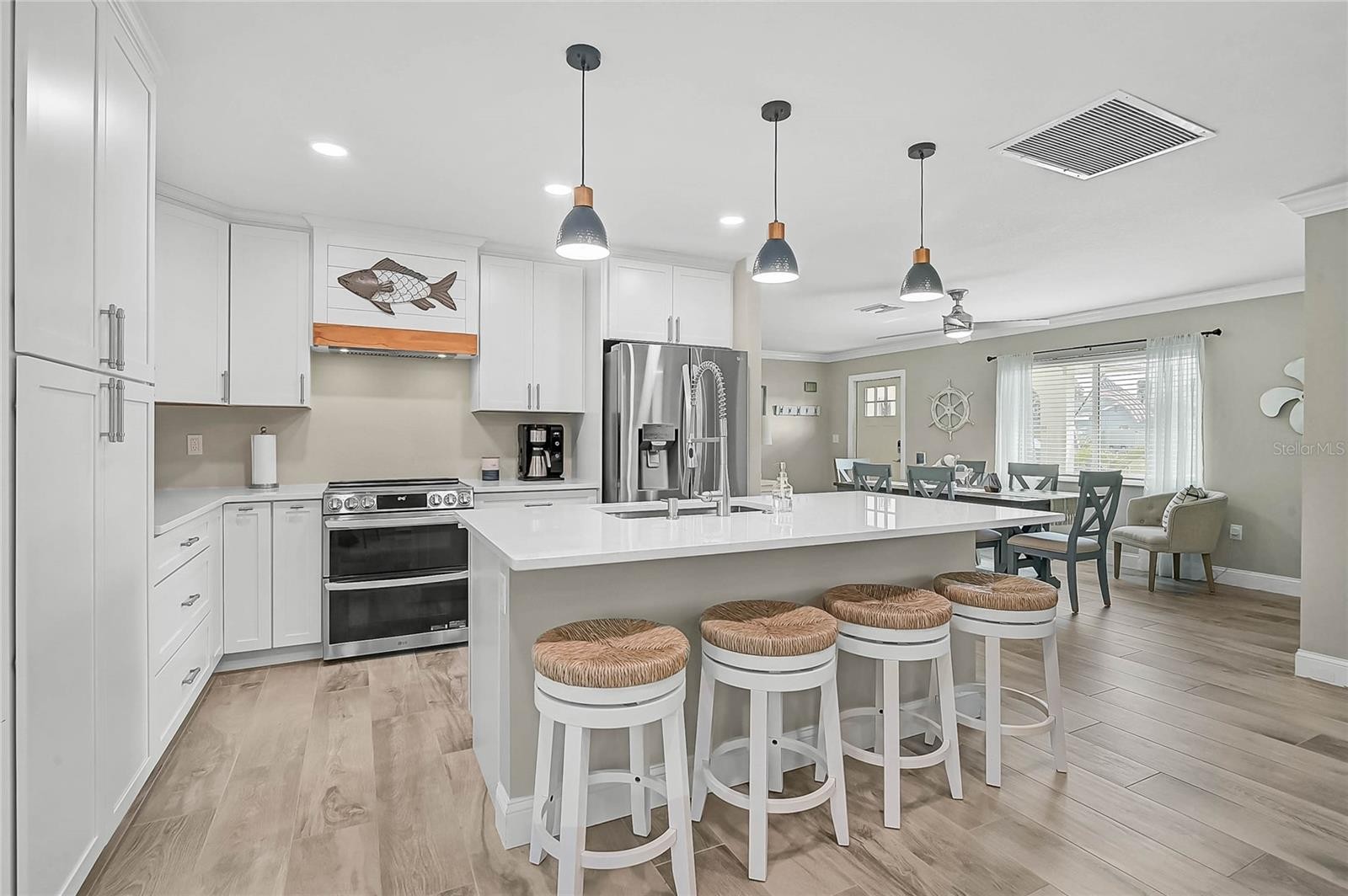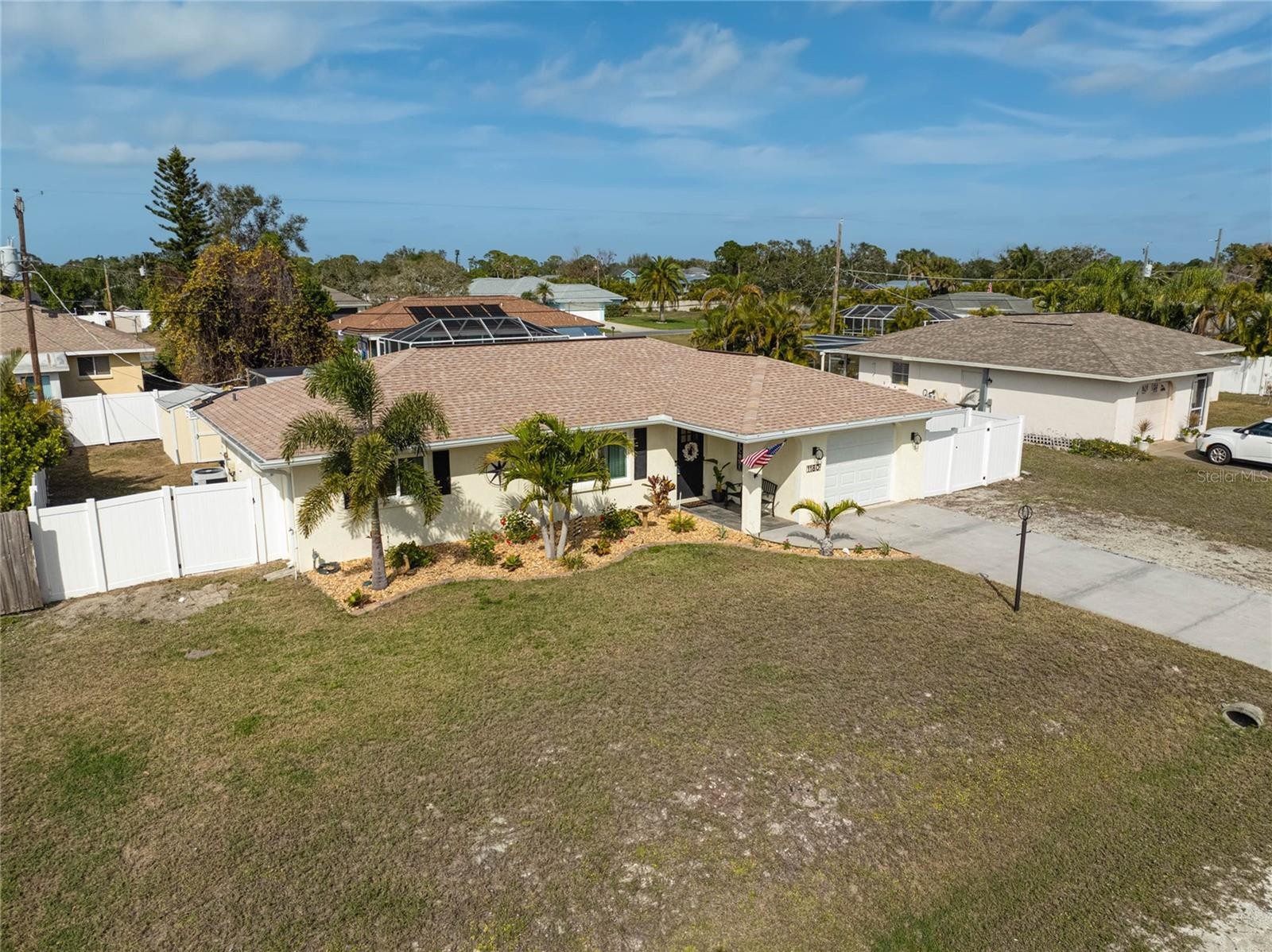 Welcome to this beautifully updated 2-bedroom, 2-bath pool home in the heart of South Venice, where relaxed coastal living meets smart upgrades. With space to accommodate an RV or boat up to approximately 30 feet, this is Florida living done right. As you step inside, the home opens with a natural, welcoming flow. The dining room connects seamlessly with the kitchen, creating an ideal space for hosting dinners and everyday meals alike. The fully updated kitchen serves as the true centerpiece of the home, featuring gorgeous quartz countertops and a generous island workspace, new and newer smart appliances, abundant 36-inch cabinets accented with crown moldings, and a wine fridge making it perfect for entertaining or casual evenings at home. Continuing through the kitchen, the living room is positioned to overlook the outdoor living space, allowing natural light to pour in through the large impact windows which creates a seamless indoor-outdoor connection. Light tile floors and coastal tones enhance the bright, airy feel throughout the home. The split-bedroom floor plan and tastefully modernized bathrooms offer privacy for everyone, while a versatile flex room provides endless possibilities as a home office, library, craft room, or man cave. An indoor laundry room just off the kitchen adds convenience with a utility sink, beautiful butcher block counters and ample storage for your everyday laundry needs. Step outside to your private backyard retreat, designed for year-round enjoyment. The electric-heated, saltwater pool with screen enclosure anchors the space and is complemented by a dedicated outdoor fire pit area, lush landscaping and screened patio, all of which is surrounded by a 6-foot privacy fence. With peekaboo sunset views, the outdoor space is ideal for unwinding and entertaining. The property is exceptionally well equipped with impact-rated doors and windows, an impact-rated garage, along with polycarbonate hurricane shutters for optional additional protection, a 30-AMP RV plug, whole home generator plug connected to the electric panel, storage shed, and extra wide fence gates on both sides. Major system updates provide peace of mind, including an asphalt shingle roof (2021) with water shield/barrier, full gutters, the impact windows and doors installed in 2024, HVAC installed in 2024 and routinely serviced, hot water heater (2023), and pool pump (2023). The home also features PVC plumbing with Moen features throughout, reflecting the high level of quality seen throughout the entire space. South Venice is loved for its laid-back coastal lifestyle and outdoor amenities. Optional membership provides access to the South Venice Ferry, offering residents a private ride across the Intracoastal to a quieter stretch of Gulf Beach. Nearby Shamrock Park & Nature Center, the Legacy Trail, and the Venetian Waterway provide miles of trails for biking, walking, and running alongside the intercoastal waterway, while community boat ramps and kayak launches make boating and paddling a way of life. All of this, just minutes from downtown Venice, downtown Wellen Park, award-winning beaches, dining, and shopping. This home offers comfort, flexibility, and the true Florida lifestyle. ¤ Please see 3D Tour and Video ¤