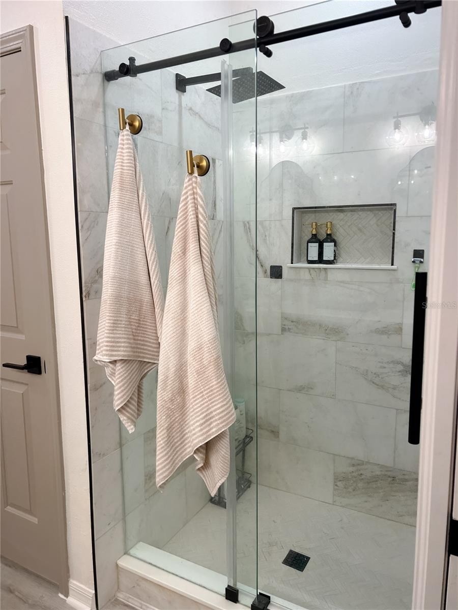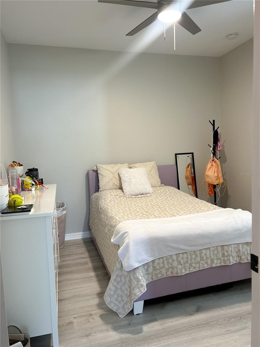 Stunning Modern Home in a Private Cul-de-Sac Location! This beautifully updated property is a perfect blend of modern farmhouse style and functional design, offering luxurious features and ample space for comfortable living. With 4 Bedrooms, 2 Full Bathrooms plus a 2 Car Garage, this home is ideally situated on an enormous homesite! NEW ROOF was just installed in 2024 and NEW WATER HEATER installed 2025! Interior highlights include gorgeous gray and white herringbone pattern ceramic tile floors throughout the main living areas and complementing wood laminate in the bedrooms, no carpet! Stylish hints of gray, light blue, and navy paint on the walls, accentuated by black hardware on the doors. Spacious Primary bedroom suite with a large walk-in closet and a spa-like en-suite bathroom that will take your breath away with its elegant wooden double vanity with gold accents, a soaking tub with gold trim and hardware, and a fully remodeled shower featuring built-in niche and herringbone floor tile. Modern fixtures and ceiling fans in all bedrooms, ensuring comfort and style. Bright and open kitchen with white cabinets, black hardware, white subway tile backsplash, and a barn door leading to a spacious pantry. A wooden-top kitchen bar and granite countertops, stainless steel appliances and a whole-home water softener system for added convenience. Remodeled secondary bathroom with new vanity, mirror, and shiplap accent walls for a touch of charm. Exterior Features include a large screened-in lanai, perfect for relaxing or entertaining year-round and a huge fenced backyard offering total privacy and endless possibilities for outdoor activities. This home is abundant with natural light creating a warm and inviting atmosphere. With thoughtful upgrades throughout, including storage solutions and modern touches, this property is truly move-in ready. This home does not require flood insurance, there is NO CDD fee, and it has low HOA fees! Lakeside Preserve offers a unique community with a playground, basketball/sports court, lakefront gazebo, all situated in a prime location in Parrish near shopping, dining, great schools and easy commuting, don’t miss out on this incredible opportunity to own a home that combines luxury, privacy, and practicality. Schedule your private showing today!