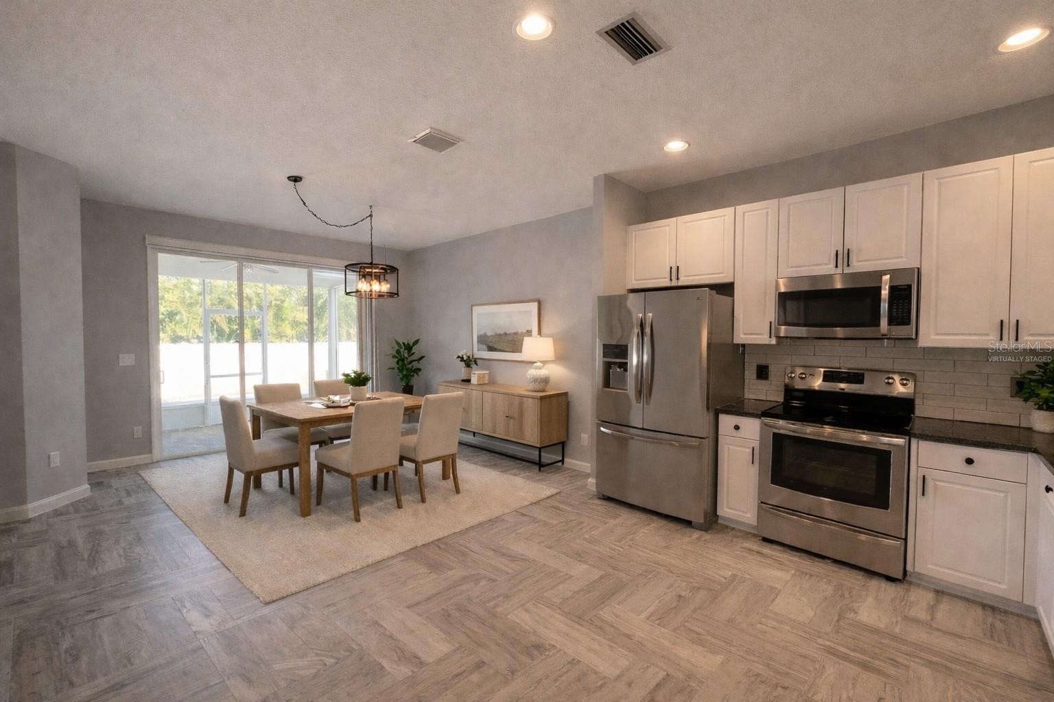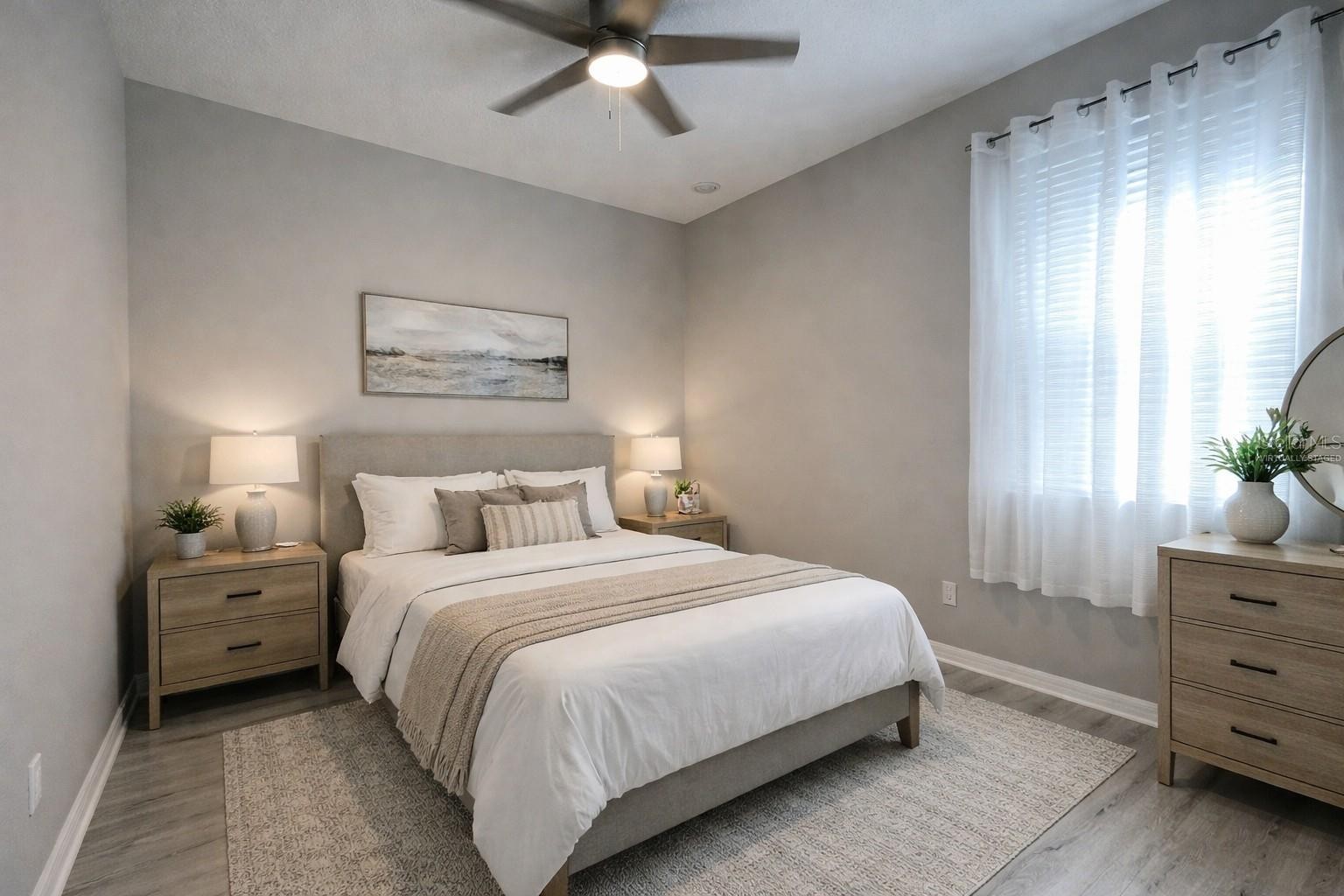 One or more photo(s) has been virtually staged. Stunning Modern Home in a Private Cul-de-Sac Location! This beautifully updated property is a perfect blend of modern farmhouse style and functional design, offering luxurious features and ample space for comfortable living. With 4 Bedrooms, 2 Full Bathrooms plus a 2 Car Garage, this home is ideally situated on an enormous homesite! NEW ROOF was just installed in 2024 and NEW WATER HEATER installed 2025! Interior highlights include gorgeous gray and white herringbone pattern ceramic tile floors throughout the main living areas and complementing wood laminate in the bedrooms, no carpet! Stylish hints of gray, light blue, and navy paint on the walls, accentuated by black hardware on the doors. Spacious Primary bedroom suite with a large walk-in closet and a spa-like en-suite bathroom that will take your breath away with its elegant wooden double vanity with gold accents, a soaking tub with gold trim and hardware, and a fully remodeled shower featuring built-in niche and herringbone floor tile. Modern fixtures and ceiling fans in all bedrooms, ensuring comfort and style. Bright and open kitchen with white cabinets, black hardware, white subway tile backsplash, and a barn door leading to a spacious pantry. A wooden-top kitchen bar and granite countertops, stainless steel appliances and a whole-home water softener system for added convenience. Remodeled secondary bathroom with new vanity, mirror, and shiplap accent walls for a touch of charm. Exterior Features include a large screened-in lanai, perfect for relaxing or entertaining year-round and a huge fenced backyard offering total privacy and endless possibilities for outdoor activities. This home is abundant with natural light creating a warm and inviting atmosphere. With thoughtful upgrades throughout, including storage solutions and modern touches, this property is truly move-in ready. This home does not require flood insurance, there is NO CDD fee, and it has low HOA fees! Lakeside Preserve offers a unique community with a playground, basketball/sports court, lakefront gazebo, all situated in a prime location in Parrish near shopping, dining, great schools and easy commuting, don’t miss out on this incredible opportunity to own a home that combines luxury, privacy, and practicality. Schedule your private showing today!
