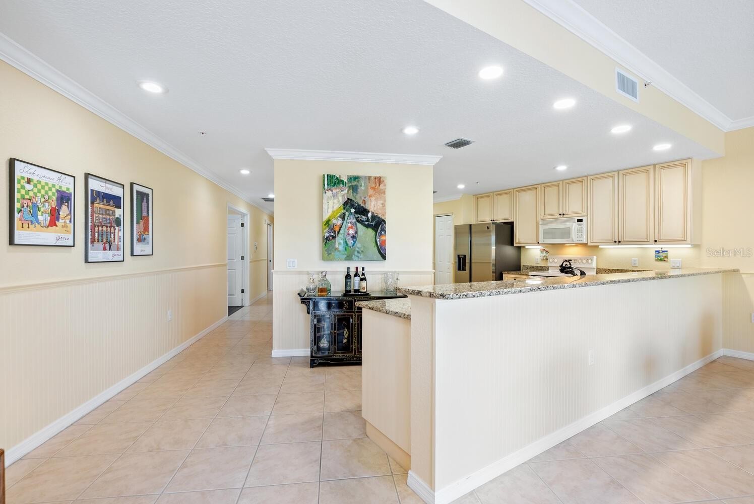 Welcome to this beautifully designed 3-bedroom, 2.5-bath condo offering 2,020 square feet of spacious, light-filled space in one of Sarasota’s most desirable locations. This elegant end-unit lives like a single-family home and captures the essence of vibrant city living. Step into a gracious foyer with a built-in cushioned bench—perfect for greeting guests in style. The expansive living and dining area features two sets of sliding doors that open to a large private terrace where you’ll enjoy stunning sunsets, partial bay views, and twinkling city lights in the evening. It’s the ideal setting for relaxing or entertaining, seamlessly blending indoor and outdoor living. The open kitchen boasts wood cabinetry, granite countertops, a breakfast bar, and a closet pantry, perfect for everything from casual meals to festive gatherings. The owner’s suite is a serene retreat with terrace access, two walk-in closets, and a luxurious bath. The second bedroom, with double-door entry, is currently used as a home office with a half bath conveniently located across the hall. The third bedroom includes its own walk-in closet and full bath, offering a private space for guests with a hallway pocket door for added privacy. This home also features impact-rated windows throughout and two secure, assigned parking spaces on the ground floor. San Marco amenities include a heated pool, fitness room, sauna, secure entry, and a pet-friendly environment. Step outside and stroll to The Bay Park, Sarasota’s new 53-acre signature waterfront park offering trails, events, and natural beauty. Enjoy the convenience of nearby restaurants, grocery stores, and downtown Sarasota’s vibrant shopping, dining, arts, and cultural scene. You're also just minutes from the Ringling Museum, Lido Key, St. Armands Circle, and easy access to world-class theater, symphony, opera, ballet, and more. This is Sarasota living at its finest—where everyday life feels like a front-row seat to the best of culture, coast, and community.