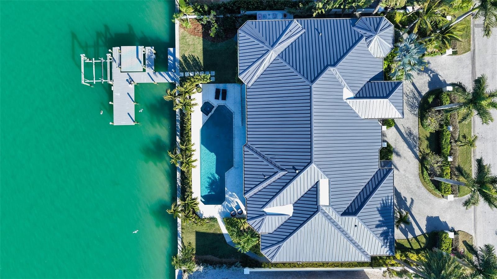 Perfectly poised on the coveted Bird Key, this custom-designed home graces a prime stretch of Sarasota Bay, where vibrant sunsets paint the sky each evening. Every element of its intelligent floor plan has been meticulously crafted for both grandeur and comfort, offering expansive bedroom suites, a dedicated office, and soaring ceilings that imbue every room with light and airiness. Walls of glass—with sweeping windows and sliding doors—uninterrupted vistas of the tranquil bay waters, inviting the beauty of nature indoors. The home’s culinary centerpiece is a vast gourmet kitchen, ideal for entertaining, flowing into a casual yet refined living and dining space. The split floor plan ensures a private sanctuary for the primary suite, which includes its own office, a spa-like bath, and a generous walk-in closet. Outside, the meticulously landscaped grounds feature brick pavers and elegant double gates, leading to a rare six-car garage. Additional luxuries include an elevator and a private exercise room, ensuring every comfort is met. Beyond your doorstep, a swift drive over the iconic Ringling Bridge brings you to the cultural delights of downtown Sarasota. Or head west, just minutes to St. Armands Circle, pristine Gulf beaches, or the Longboat Key Club for world-class golf, tennis, and fine dining. At home, indulge in your private oasis: a large pool, hot tub, and a brand-new high-end dock for boating and water adventures, from kayaks to yachts. Anticipate even more refinement with the upcoming Bird Key Yacht Club in 2026, complete with tennis courts, a modern fitness center, and a waterfront restaurant, elevating the lifestyle to unmatched heights. This is more than a home; it’s a premier sanctuary, waiting to be yours.