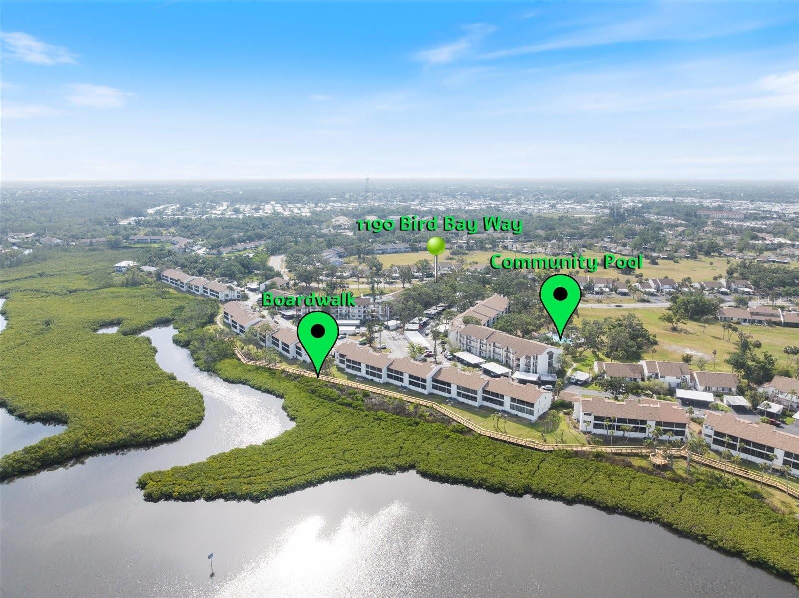 Your Piece of Paradise Awaits at 1190 Bird Bay Way! This beautifully updated 1-bedroom, 1-bath condo offers comfort, style, and convenience—with a peaceful pond and fountain view—and is being sold turnkey furnished! Step inside to find luxury vinyl flooring throughout, creating a clean, cohesive look. The fully renovated kitchen features quartz countertops, stainless steel appliances, custom pull-out cabinetry, and a butcher block bar perfect for casual dining or entertaining. Soaring cathedral ceilings and recessed lighting enhance the open living area, which includes a cleverly concealed hide-a-bed beneath the TV. The enclosed lanai adds valuable living space, complete with wind-resistant sliding glass doors, tile flooring, a shiplap accent wall, and a tropical mural for a touch of character. The spacious primary suite includes two built-in closets and an updated ensuite bath with a walk-in glass shower and modern fixtures. Additional highlights include a convenient pantry, in-unit laundry, and covered parking with extra storage. Located in sought-after Bird Bay Village, residents enjoy resort-style amenities—Junior Olympic pool, tennis and pickleball courts, fitness center, clubhouse, and library. A vibrant social calendar offers year-round activities, while the HOA covers exterior insurance, grounds and pool maintenance, pest control, basic cable, sewer, trash, water, and more for true maintenance-free living. Just minutes from Historic Downtown Venice, pristine beaches, and the Legacy Trail, this condo is ideal as a seasonal retreat, income-producing rental, or full-time Florida home. Don’t miss this opportunity—your piece of paradise is waiting!