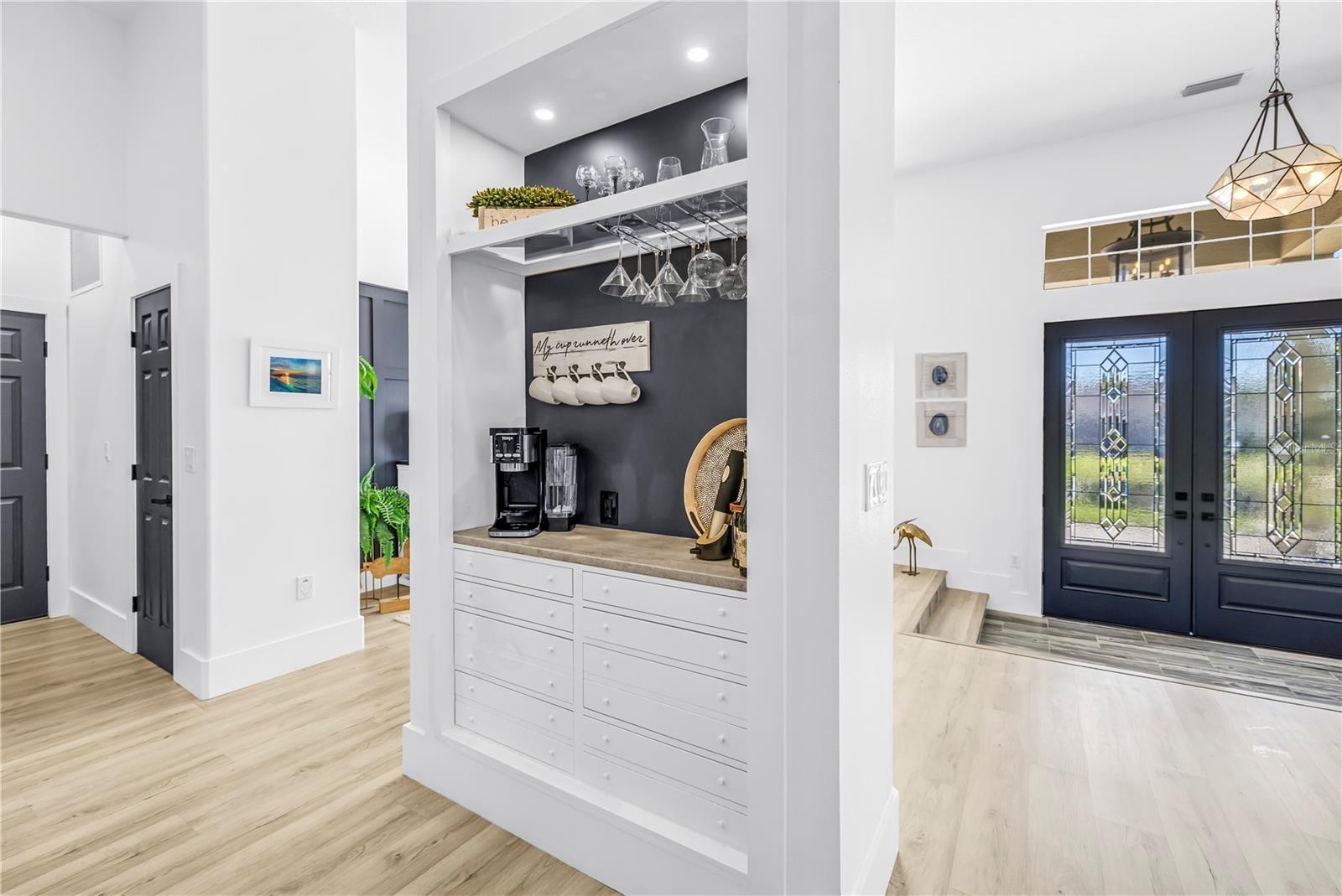 Refined Golf Course Estate Living in River Wilderness Set gracefully along the 18th fairway within the gates of The Club at River Wilderness, this exceptional estate captures the essence of elevated Florida living—where sweeping golf course vistas, tranquil water views, and sophisticated design converge. Encompassing over 3,200 square feet of thoughtfully curated living space, this 4-bedroom, 3-bath residence is defined by its soaring ceilings, expansive open-concept design, and an abundance of natural light that pours effortlessly through the home. Every detail has been carefully considered, blending timeless elegance with modern refinement. At the heart of the home, the gourmet kitchen is a statement in both form and function—featuring high-end built-in appliances, custom cabinetry, and an inviting layout designed for both intimate gatherings and grand-scale entertaining. The seamless transition from indoor living to outdoor serenity creates an effortless flow that embodies the Florida lifestyle. Step outside to your private resort-style retreat, where a sparkling pool overlooks the 18th fairway and shimmering water beyond—a setting that delivers breathtaking sunsets and a daily backdrop of natural beauty. The three-car garage provides ample space for vehicles and storage, while the home’s positioning within this prestigious gated community offers both privacy and exclusivity. Residents also benefit from a championship golf course currently undergoing a $6 million transformation, further enhancing the caliber and desirability of this remarkable neighborhood. This is more than a residence—it is a statement of lifestyle, where luxury, leisure, and location come together in perfect harmony.
