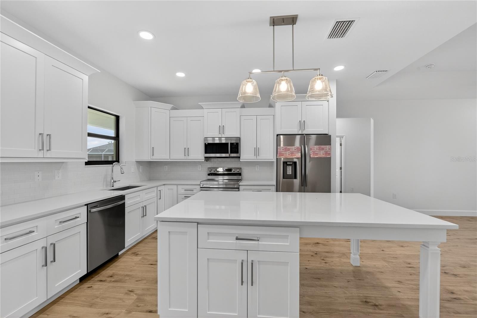 Brand new 3BR/2BA home with vinyl flooring throughout and tile in bathrooms. Modern construction featuring energy-efficient systems, impact-resistant windows, and high ceilings. Open, split floor plan with a bright kitchen offering quartz counters, stainless steel appliances, and a 2-car garage. Master suite includes walk-in closets and a private bath. Covered lanai ideal for Florida living. Situated on an oversized corner lot with excellent growth potential. Suitable for first-time buyers, seasonal residents, or investors with strong rental potential. Prime North Port location near Wellen Park, I-75, beaches, shopping, medical facilities, and top-rated schools.