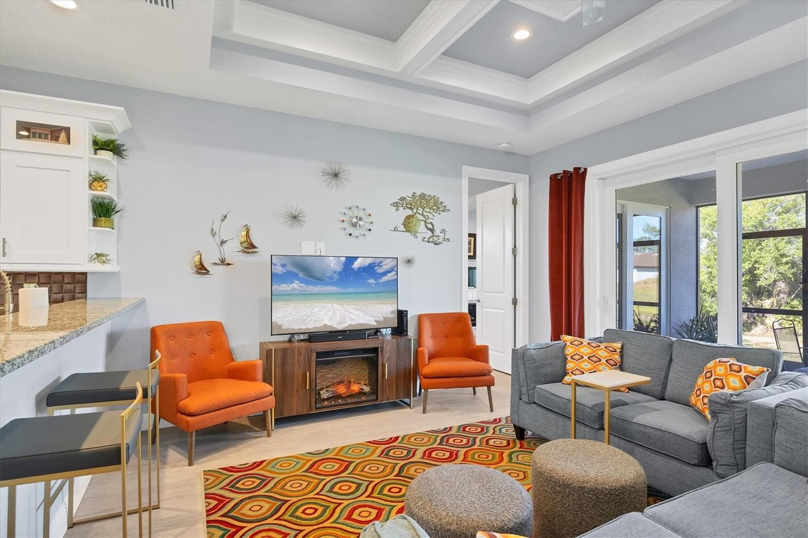 No FLOOD INSURANCE! No HOA! No CDD! Built in 2022! For the pickiest buyers! Custom designed home with modern coastal charm. Nature Lover’s dream with private Waterfront Property on Bass Point Waterway. One-of-a-kind three bedroom, two bathroom home, perfect for comfortable and versatile living, is located in a highly sought after developing neighborhood. This property is ideal for easy living and has too many upgrades to list. This split-floorplan home boasts a grand double-door entry in the front and an abundant lanai in the rear positioned for amazing Florida sunsets. Hurricane windows and doors keep it all safely tucked away. Bring all of your toys as there is a huge 25x25ft garage with an 8ft tall garage door for those lifted vehicles or boat. The automatic irrigation system keeps it lush. Fully wired throughout including for TVs in the garage and lanai. Soundproofing in each interior wall keeps it quiet and private. Inside you will find solid stone countertops throughout, 42” soft-close cabinets, high-end stainless appliances and huge 24x48” Elan Halcyon gray tiled floors. 9’4” ceilings throughout with a coffered beam ceiling in the family room highlight the 8ft interior doors. The luxurious master suite has his and hers closets and vanities and the rain showerhead completes the huge shower. Use the attached sitting room that also opens to the lanai for workouts/gaming/nursery/office. Schedule a showing today and take advantage of all this home in the finest Florida living with nearby beaches, golf courses, great shopping and recreational activities!
