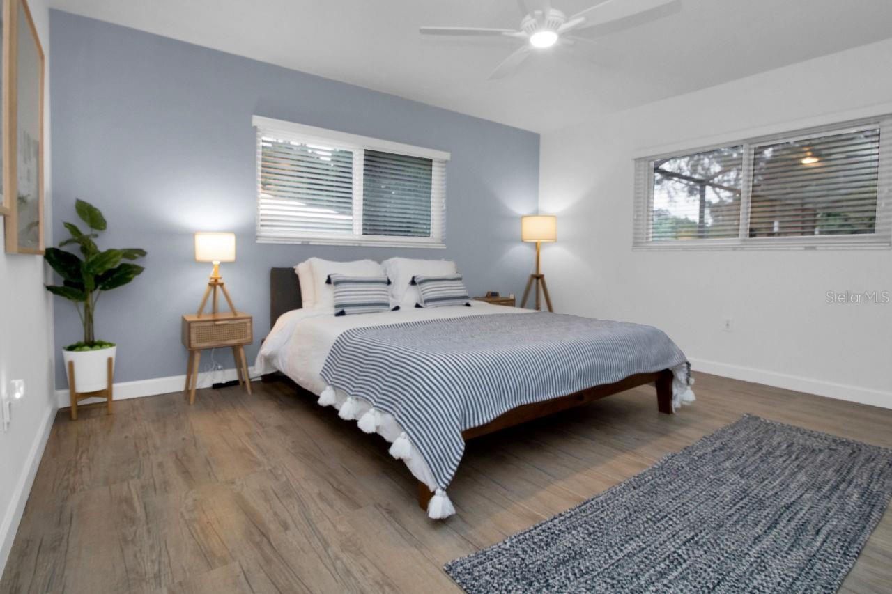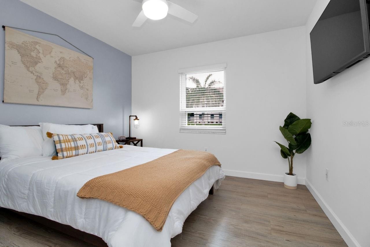 Just 10 minutes from the sugar-sand beaches of Bradenton Beach, this beautifully renovated home offers the perfect blend of luxury, comfort, and investment potential. Boasting nearly 2,500 square feet of living space, this spacious 4-bedroom, 3-bathroom residence was fully renovated just two years ago with modern finishes and thoughtful upgrades throughout. The open-concept layout is designed for entertaining, featuring a open kitchen with oversized kitchen island, sleek cabinetry, and durable vinyl flooring throughout — no carpet anywhere in this home. The large primary suite provides a private retreat with generous space and a spa-like feel ensuite bathroom, while the split-bedroom floor plan offers flexibility for guests or multi-generational living with 3 large guest rooms and 2 guest bathrooms. Step outside and you’ll find your own tropical oasis. The fully fenced backyard showcases beautiful pavers, mature landscaping, and a huge mango tree, creating a lush, private setting. Enjoy year-round relaxation in the screened lanai and heated saltwater pool — perfect for both personal enjoyment and guest appeal. Additional high-value upgrades include: Hurricane-impact windows for peace of mind, Dual AC systems with air purification for comfort and efficiency, Epoxy-finished 3-car garage houses the laundry area and extra storage for a clean, durable space. Even better — this home is being sold turnkey furnished and comes with an excellent rental history, making it an incredible opportunity as a primary residence, second home, or income-producing property.