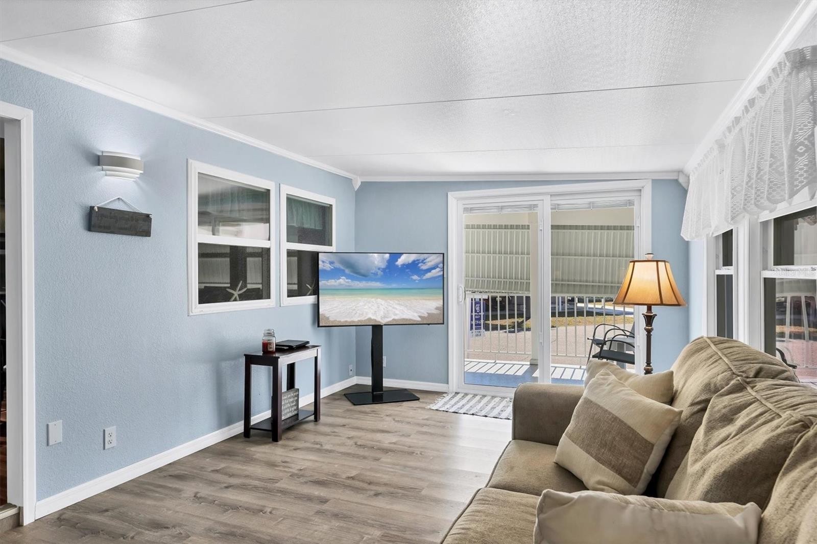 Welcome to Tidevue Estates, a land-owned, active 55+ community! This rarely available one-car garage home with workshop and extra storage sits on a concrete slab. Truly move-in ready and turn-key furnished, this home has been thoughtfully updated throughout. Enjoy peace of mind with a brand-new roof (2024), all new windows, A/C replaced in 2022, and water heater updated in 2016. The updated kitchen features all-new cabinets, a refrigerator and stove (2019), plus two refrigerators with ice makers. The bright and spacious living room is perfect for entertaining. Laminate flooring flows throughout the home, and the primary bathroom has been updated with a walk-in shower. The second bedroom has its own private entrance so when guests come to visit they can just go right out for their monrning run/walk. Relax on the epoxy-coated front porch (2020) and watch the world go by. Enjoy the Florida sunshine on the open patio perfect for grilling out. Newer washer and dryer included. Conveniently located within walking distance to the recreational center and pool—Florida living at its best! Low HOA of only $600 annually. Pets are not permitted. Plenty of activities to keep you busy in this community. Take a water aerobics class in the solar-heated community pool or work on your tan. The community library has free WI-FI connection. Updated fitness center. Meet friends and make new ones for a game of indoor pickleball, bocce ball, or shuffleboard. Join the Golf League. Take a bike or golf cart ride to Veteran's Park to watch the wildlife and sunset. Ellenton Premium Outlet Mall, restaurants, and medical facilities are just minutes away. Easy access to I-75. Not to mention a short drive to our beautiful Gulf Beaches.