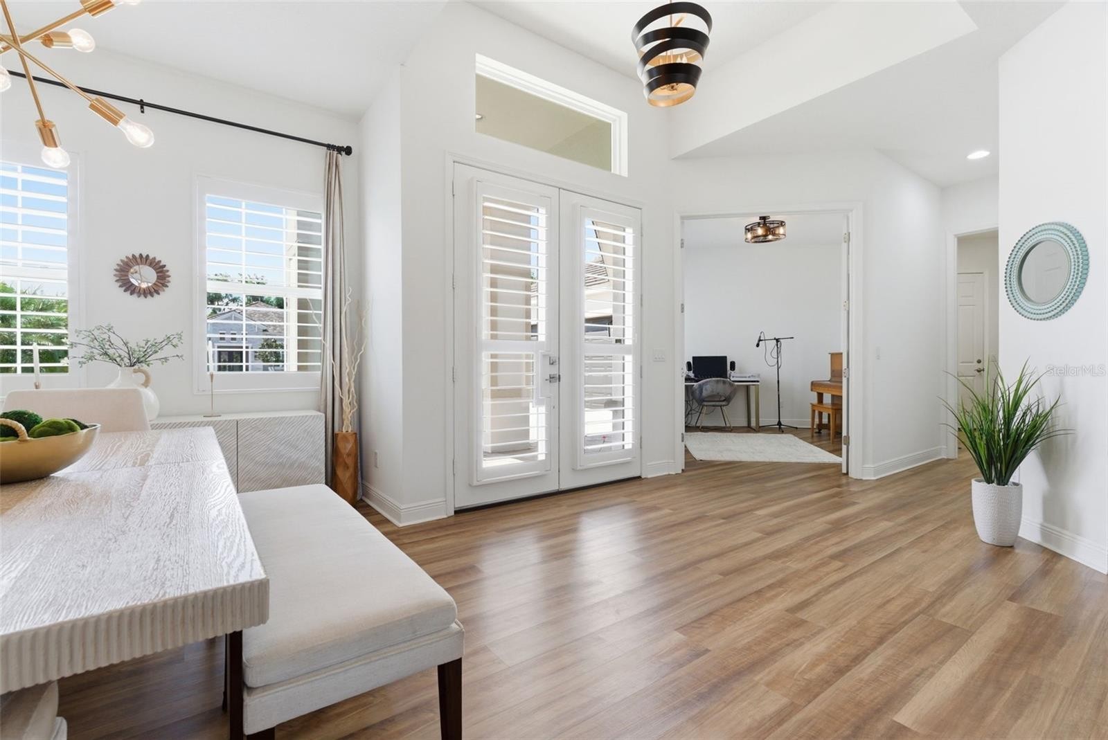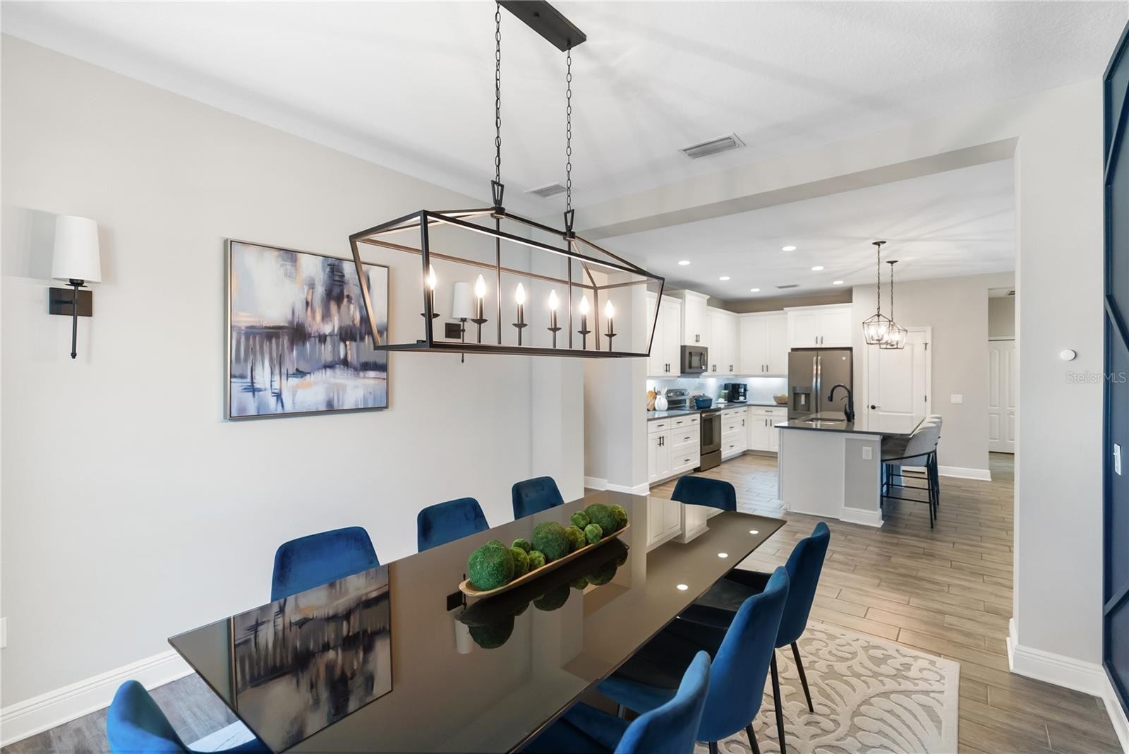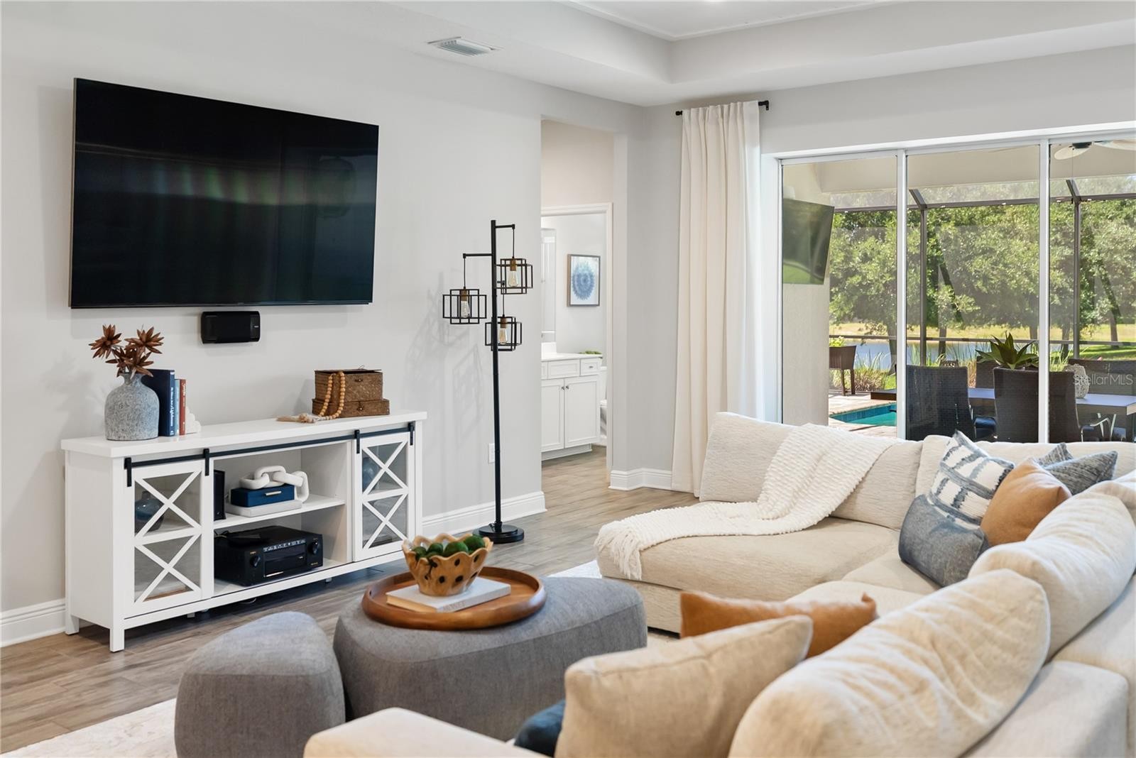 Perfectly blending modern design with thoughtfully curated upgrades, this beautifully maintained 4 bedroom, 3 bathroom home with a 3 car garage is set within the highly sought after River’s Reach community. The thoughtfully designed open concept layout is complemented by designer feature walls and stunning shiplap ceiling details, creating a warm yet elevated feel throughout. The kitchen is both stylish and functional with updated hardware, a Bosch dishwasher, and a large island overlooking the main living space, ideal for entertaining. Luxury vinyl flooring flows through all bedrooms, while the spacious primary suite offers a refreshed bathroom with updated fixtures and a serene retreat-like atmosphere. Step outside to your private backyard oasis complete with a heated saltwater pool, upgraded no-see-um screened enclosure, extended paver driveway, and a fully equipped outdoor grilling area with refrigerator and fan, all designed for true Florida living. Additional upgrades include a whole home water filtration system with reverse osmosis, plantation shutters, custom window treatments, updated lighting throughout, added laundry cabinetry, and meticulous maintenance of all major systems. River’s Reach offers residents a peaceful, nature-filled setting with amenities including a community pool, fitness center, playground, scenic walking trails, and a private boat dock with water access to the Manatee River. Ideally positioned for both privacy and accessibility, this home offers convenient access to I-75 for effortless travel while remaining just a short drive to Florida’s world-renowned Gulf beaches including Anna Maria Island and Siesta Key, along with shopping, dining, and top rated schools, delivering the perfect balance of luxury, location, and lifestyle.