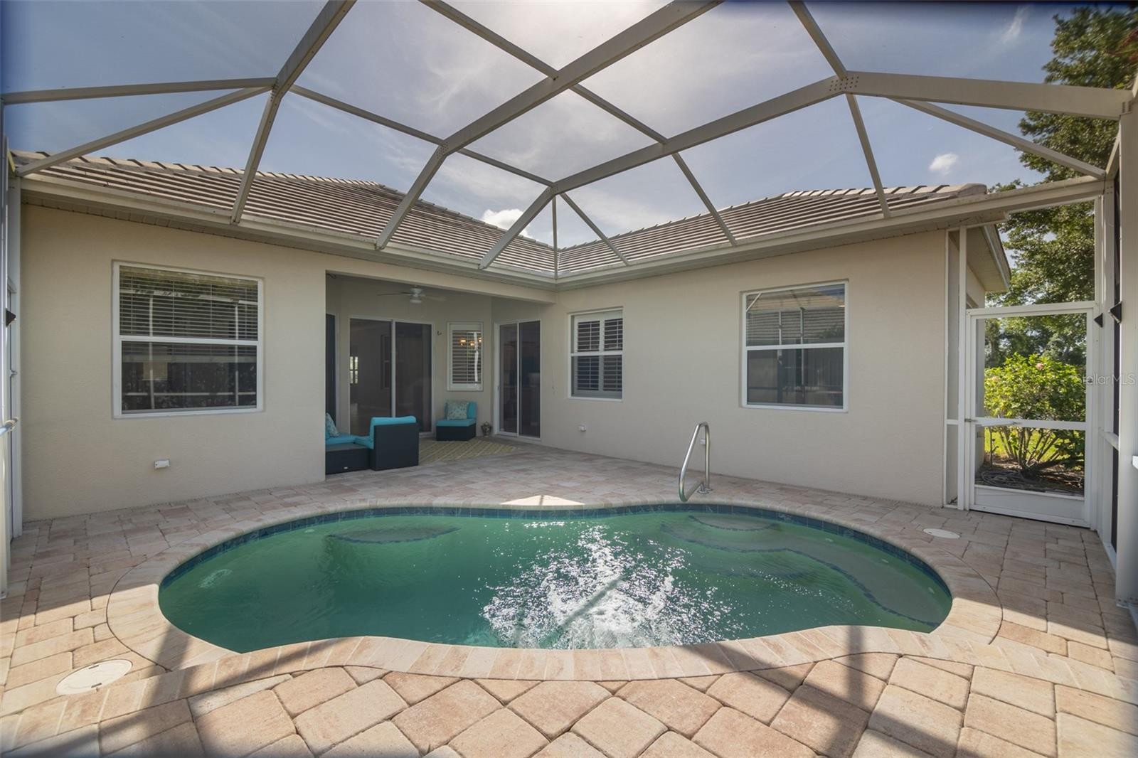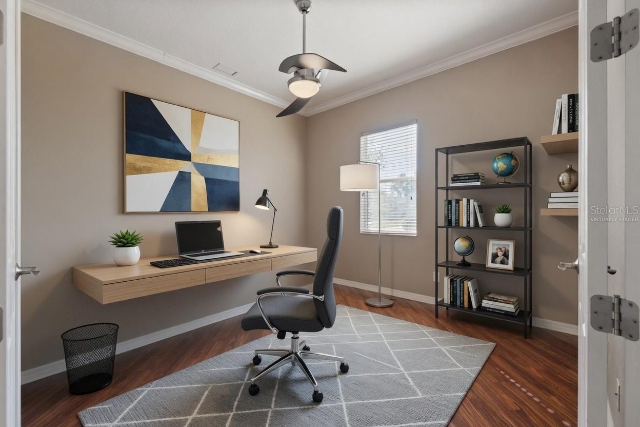 One or more photo(s) has been virtually staged. Nestled in the beautiful, private River Wilderness Golf and Country Club, this wonderfully maintained Laurel Hill III model home sits in the desirable Hammocks section on over 1,500 acres of natural Florida beauty. Built by the well-respected local builder Bruce Williams, this single-family home is located in a non-flood zone and offers the perfect blend of comfort and low-maintenance living. Inside, you'll find 3 spacious bedrooms, 2 bathrooms, and a versatile den/office that’s ideal for a home workspace, hobby room, or guest area. The highlight is the screened saltwater pool in the backyard — perfect for year-round swimming in Florida’s sunshine. The solar panels come brand new in the box, so you can easily add pool heating if you’d like. Recent updates include a brand-new concrete tile Spanish-style roof (2024), a new water heater (2023), and a newer HVAC system (2021). You’ll also love the thoughtful touches like recessed lighting, plantation shutters, crown molding, and a full irrigation system. One of the best parts? There are no CDD fees, and the low HOA fee covers professional landscaping for your home — so you can relax instead of mowing or weeding. The community feels safe and serene with two 24-hour manned guard gates, private roads, scenic walking and biking trails, catch-and-release fishing, a community boat ramp with direct access to the Manatee River, and a lovely community pool. Golf and social enthusiasts will appreciate the optional club membership, which gives you access to the beautiful 18-hole, par-72 championship golf course designed by Ted McAnlis (with five sets of tees for every skill level), an Olympic-sized pool, fitness center, tennis and bocce ball courts, plus casual and fine dining options. Best of all, the location is incredibly convenient — just minutes from I-75, great restaurants, shopping, and everyday conveniences, while still feeling like a peaceful private retreat. If you’re looking for an elegant, move-in-ready home in one of the most desirable private communities in the area, this is it. Come enjoy the refined Florida lifestyle you’ve been dreaming of — comfort, nature, and community all in one wonderful place.