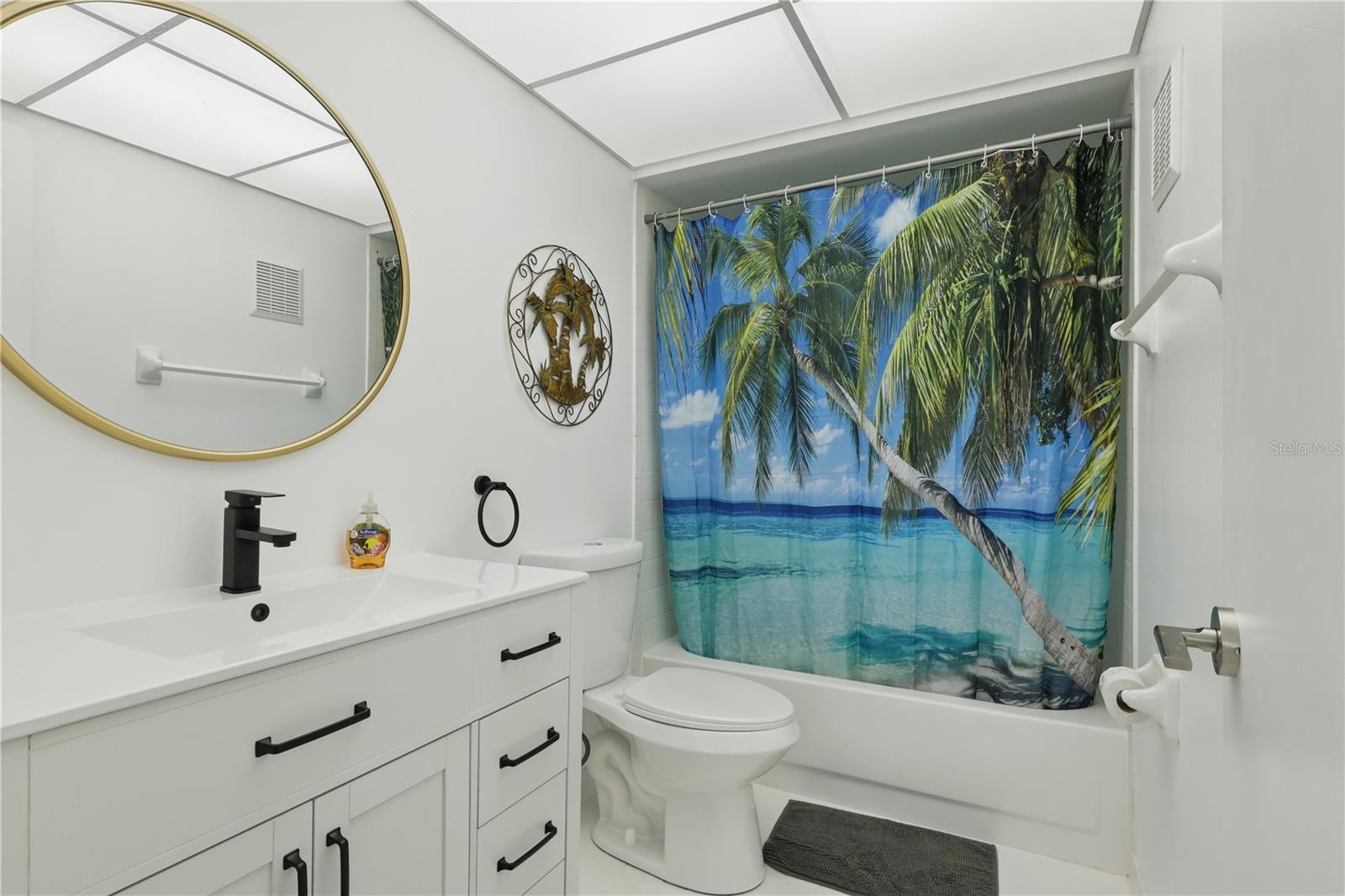 Back on the market. Buyer decided not to move to FL. Gorgeous brand new kitchen with high end quartz countertops brand new Samsung stainless steel appliances, brand new air conditioning system with new ductwork, new hot water tank, new luxury vinyl plank flooring throughout with new base moldings, new LED light fixtures, vaulted ceiling, double sliding doors onto screened in lanai outside storage closet. 2 bedrooms each with their own ensuite bathroom and new vanities and new toilets, and each bedroom with its own walk-in closet. Laundry closet dryer vent exhaust ductwork cleaned. Friendly 55+ community with clubhouse, heated pool, tennis, pickleball courts, shuffleboard all overlooking a peaceful lake with fountain.