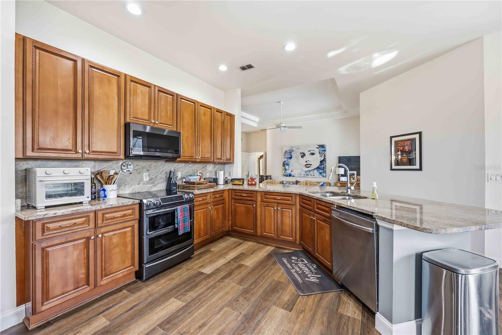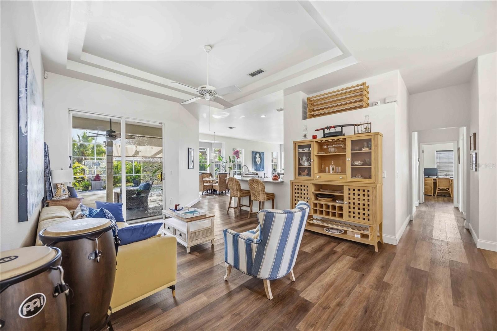 Spacious single-family home in the highly sought-after Chestnut Creek Manors! This 2,300+ sq. ft. 3-bedroom, 2.5-bathroom home with a 2-car garage features an open floor plan with plenty of separate living spaces, including a living room, dining room, kitchen with eat-in area, and a family room—perfect for everyone to spread out. Recent updates include upgraded vinyl plank flooring throughout, a remodeled kitchen with stainless steel appliances, wood cabinets, and granite countertops, removal of popcorn ceilings, neutral colors throughout, tray ceilings, and a garage with epoxy-coated floor and built-in raised storage. Enjoy the oversized lanai with its own pool bathroom and private pool—ideal for entertaining or relaxing. The home has a newer AC (2025), recently re-piped plumbing (2024), a new hot water heater (2022), and a tile roof installed 9 years ago. Chestnut Creek offers a wonderful lifestyle with canopy-covered roads, abundant nature, and its own rookery. Conveniently located just minutes to I-75, Downtown Venice, beautiful Gulf Coast beaches, the new hospital, restaurants, shopping, and local amenities, this home combines privacy, comfort, and accessibility in one perfect package.