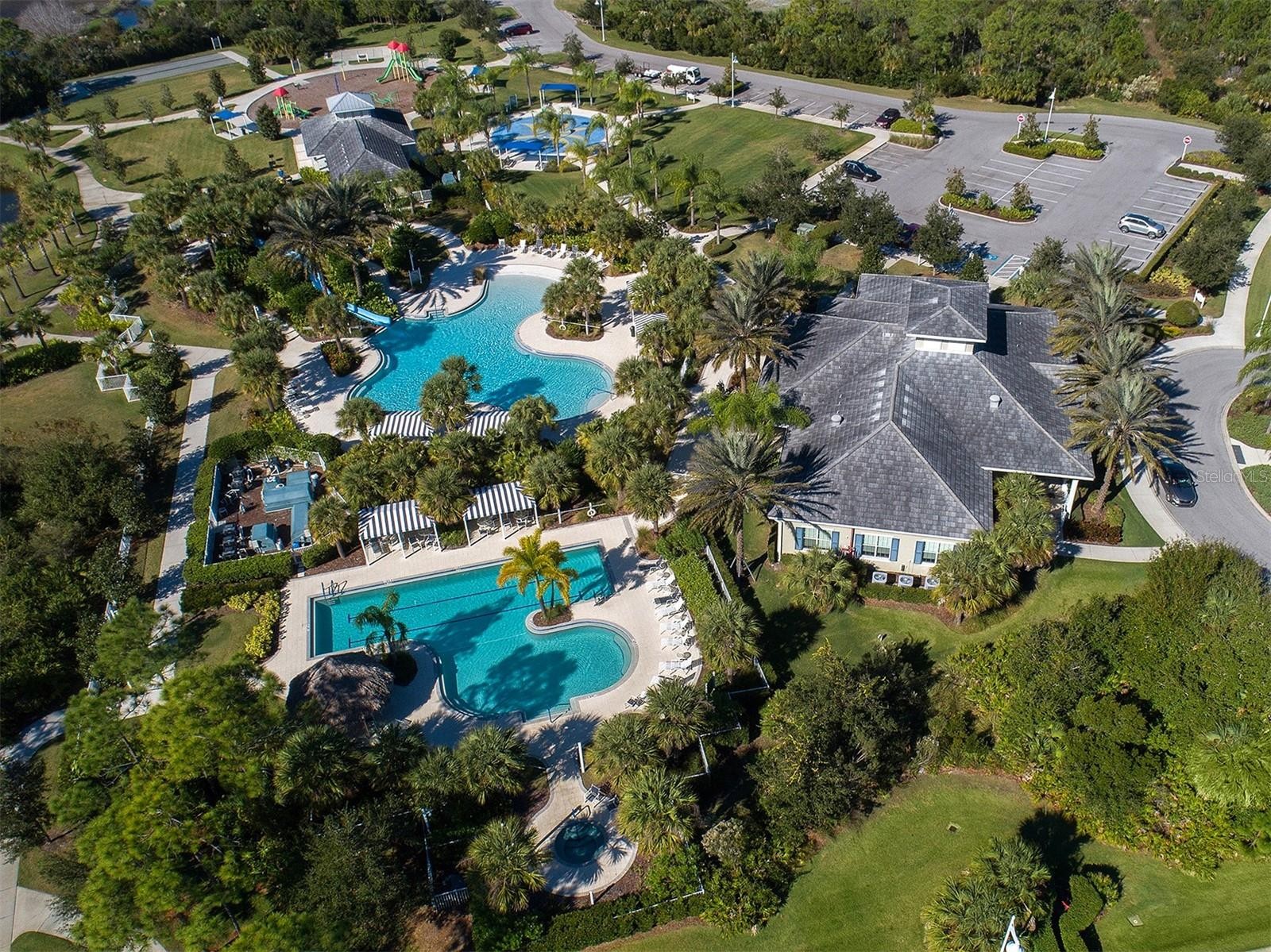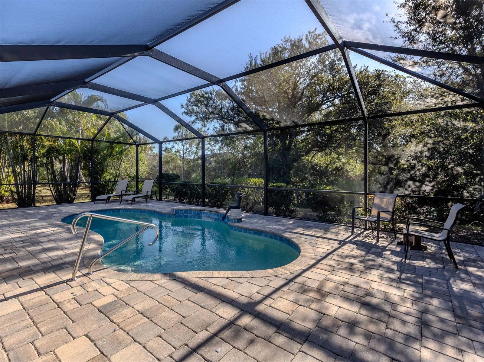 Sparkling clean Freshwater 2 model in the highly desirable, amenity-rich and nature-focused Grand Palm community. Located on a south-facing rear lot that backs to a dedicated conservation area, this home offers exceptional privacy and a true retreat setting. A beautiful kidney-shaped pool with lush landscaping surrounds the expansive lanai, creating an ideal space for relaxing or entertaining. Featuring 3 bedrooms, 2 bathrooms, and a dedicated office, the split floor plan provides excellent separation between the primary suite and secondary bedrooms. The office includes double glass French doors, and the home offers abundant closet space throughout. Ceramic tile flooring throughout with no carpet makes maintenance easy, and a newer AC system (2023) provides efficient year-round comfort. KITCHEN AND INTERIOR FEATURES include fingerprint-resistant black stainless steel appliances, electric range with gas connection in place, quartz countertops, subway tile backsplash, and a large walk-in pantry. Inside laundry room includes a utility sink. Pull-down attic stairs provide easy garage access. STORM AND SAFETY FEATURES include accordion or roll-down storm shutters on all windows and doors, along with an impact-rated front door for added peace of mind. GRAND PALM AMENITIES include multiple resort-style pools, fitness center, tennis, pickleball, basketball and volleyball courts, miles of walking and biking trails, dog parks, playgrounds, clubhouse, social clubs, and a full-time activities coordinator. Conveniently located near shopping, dining, beaches, and historic downtown Venice.