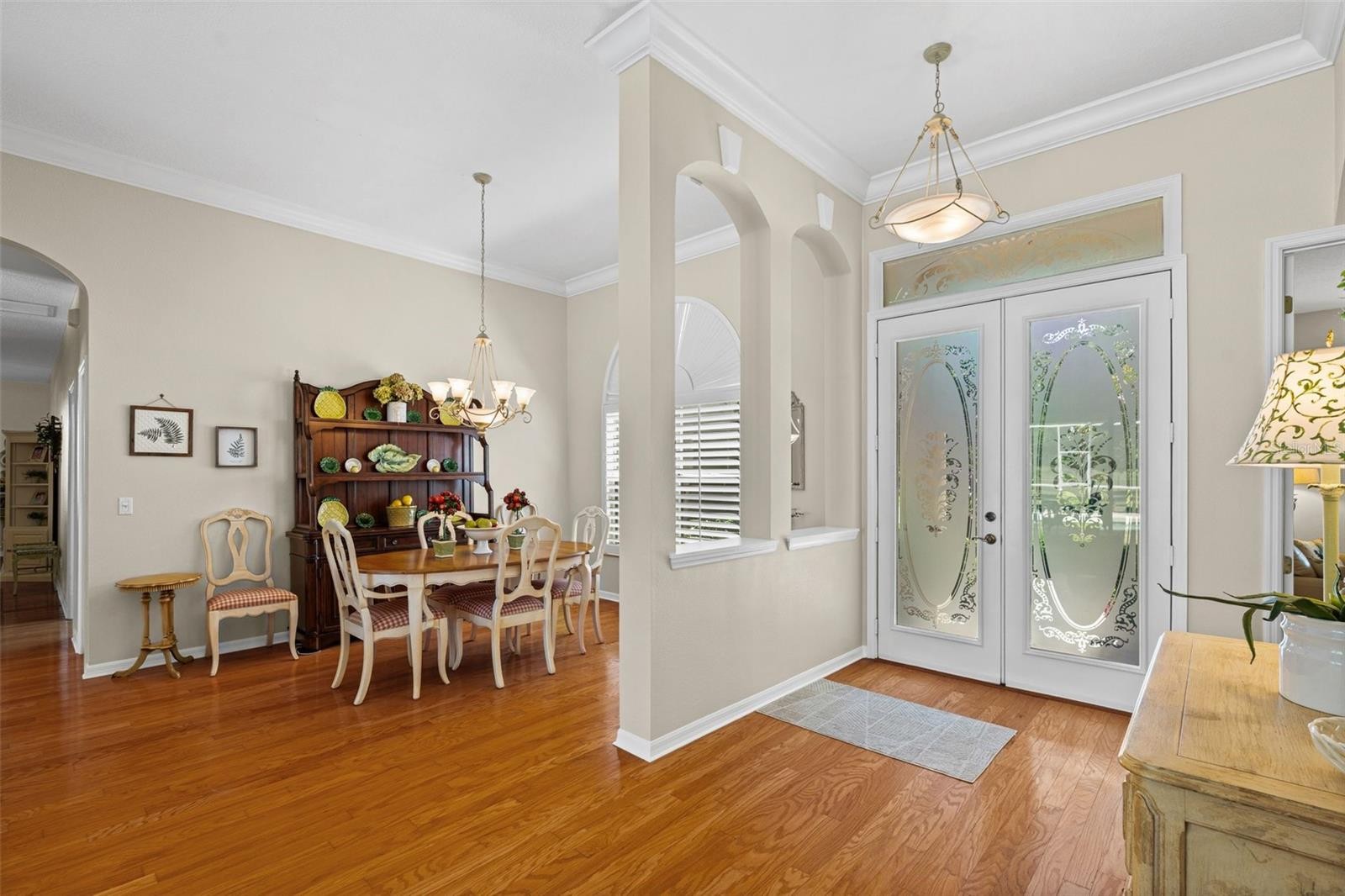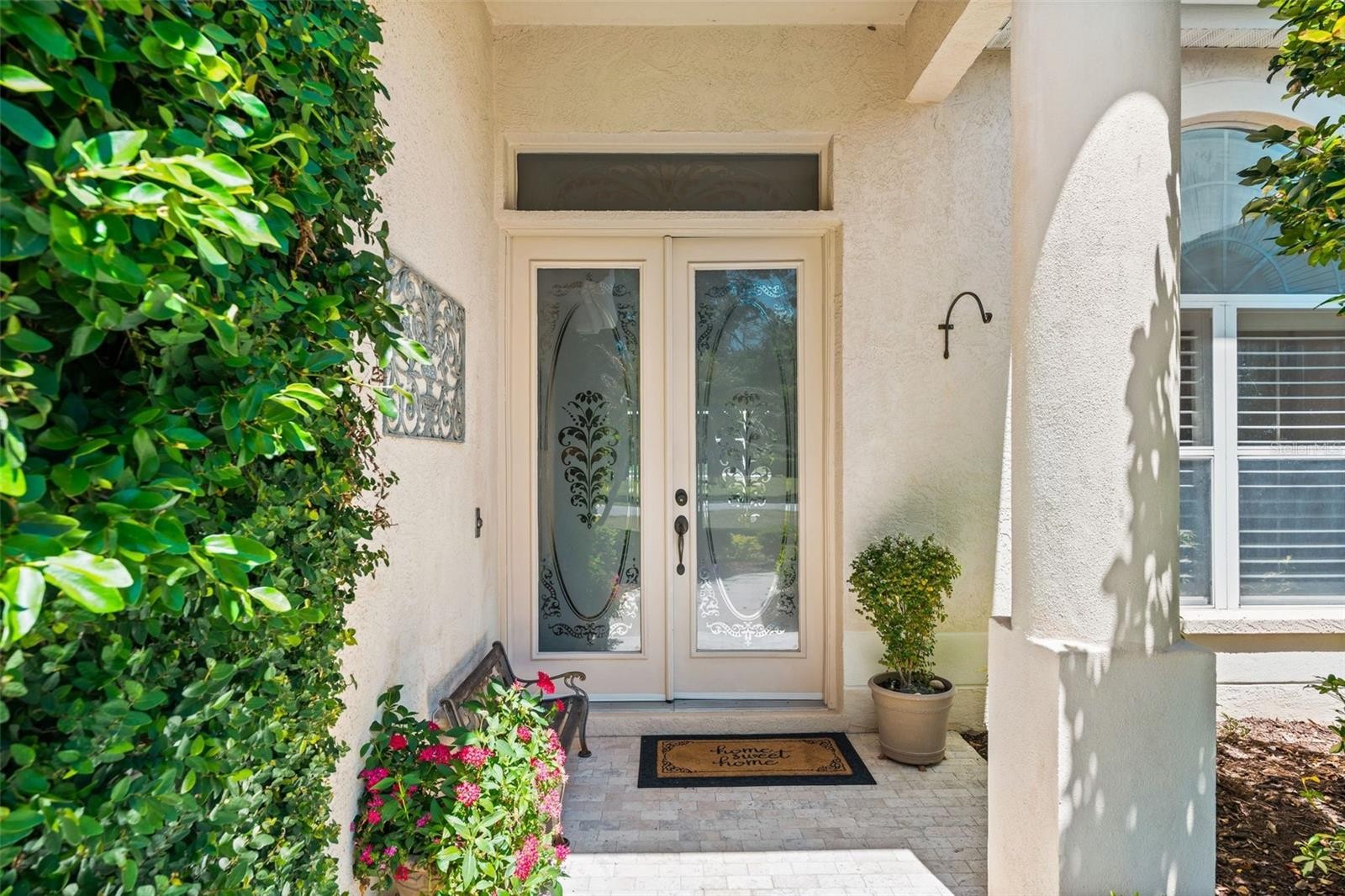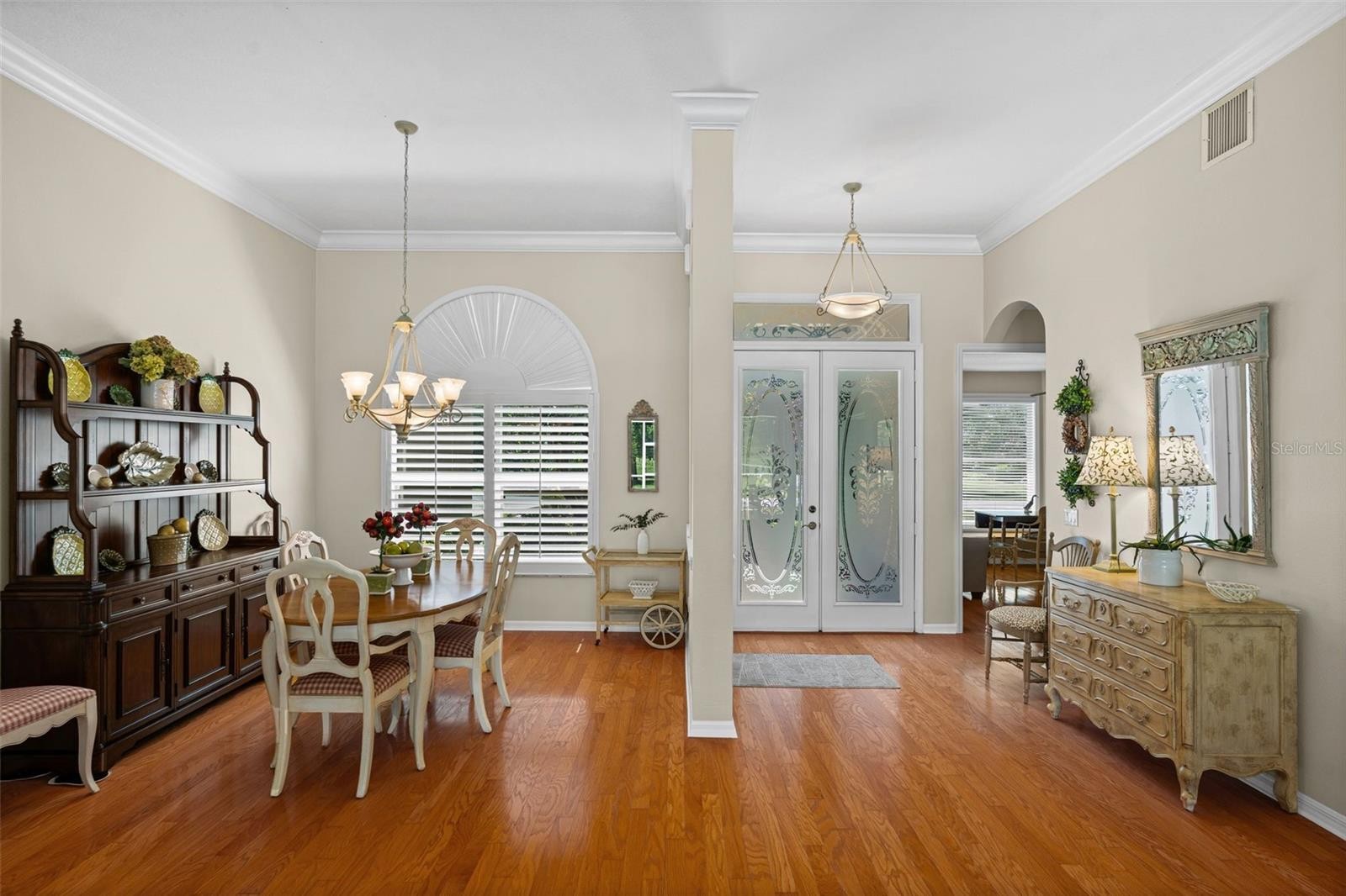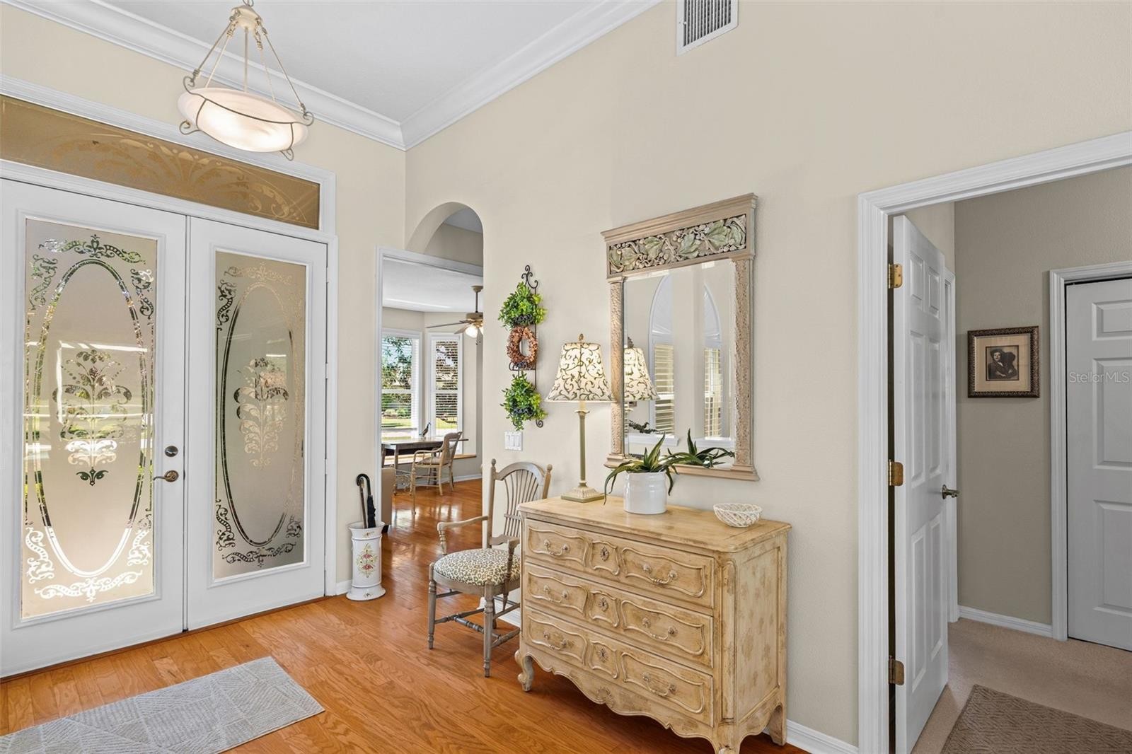 “Country Charm with Everyday Convenience” FANTASTIC PRICE REDUCTION! Nestled on over an acre of beautifully manicured and mature landscaping, this custom-built Augusta model, featuring 3 bedrooms, 2 baths, and a den, offers a rare combination of elegance & comfort. The beautiful double glass front entry with matching transom windows sets the tone, opening to soaring 12-foot ceilings, refined crown molding, and an abundance of natural light. The Family room is anchored by a lovely wood-burning fireplace, while the den features Bay Window with custom built-in seating, blending functionality with architectural charm. The gourmet kitchen is the heart of the home, showcasing a granite-topped island, premium finishes, and seamless flow for both intimate gatherings and grand entertaining. The expansive master suite is a private sanctuary, complete with large walk-in closet En-suite bathroom boasting double sink vanity, frameless glass shower, roman tub, and bidet. Sliding doors allow easy access to pool deck and lots of light. Practical touches such as a well-appointed laundry room with cabinetry and a utility tub access the spacious 3 car garage equipped with workbench and extra storage. Outdoors, the property embraces Florida living at its finest. A tranquil pond, shared with a neighboring property, provides the perfect setting for fishing and quiet reflection. At the same time, the surrounding grounds attract deer, turkeys, and other wildlife, not to mention abundant butterflies in the garden, creating a private nature retreat. Golf cart accessibility enhances the lifestyle, and additional features such as New Roof installed (2021), Well Pump (2025), Hot Water Heater (2022), solar film on south facing windows, a water softener all add both efficiency and convenience. Located just 30 min. from downtown Sarasota, 20 min. to Waterside LWR, Only 11 miles from I-75, shopping & Restaurants. Convenient to both Siesta and Lido’s beautiful beaches and 15 min. from the Majestic Myakka State Park. With timeless design and serene surroundings, this home is a refined retreat where luxury meets tranquility. Schedule you showing today!