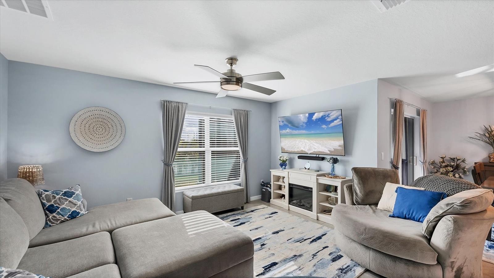Why wait to build when you can move right in? This 2024 D.R. Horton Cali model is barely lived in and shows like a model home. Thoughtfully upgraded and impeccably maintained, this four-bedroom, two-bath residence offers modern style, comfort, and functionality sited on one of the best lots in the community. The open-concept design is bright and welcoming. The kitchen is beautifully appointed with white cabinetry, large rectangular island, light granite countertops, and stainless-steel appliances, creating a clean and timeless aesthetic that flows seamlessly into the living and dining areas. Beadboard accents add charm and character. Step outside to the private covered, extended lanai and enjoy serene lake views, complemented by a beautifully landscaped and fully fenced backyard, ideal for outdoor living and entertaining. The private primary suite provides a peaceful retreat, while three additional bedrooms provide flexibility for guests, a home office, or family living. The garage is equally impressive, featuring an epoxy-coated floor and ceiling-mounted storage shelving. Ideally located in Bella Lago in Parrish, just next to the North River Ranch master-planned community, residents enjoy access to a clubhouse, dog park, fitness and exercise facilities, a tot lot, two heated swimming pools, a multipurpose sports field, and a covered picnic area. This home offers all the benefits of new construction without the wait. A rare opportunity to own a move-in ready, upgraded home in one of the area’s most desirable and growing locations.