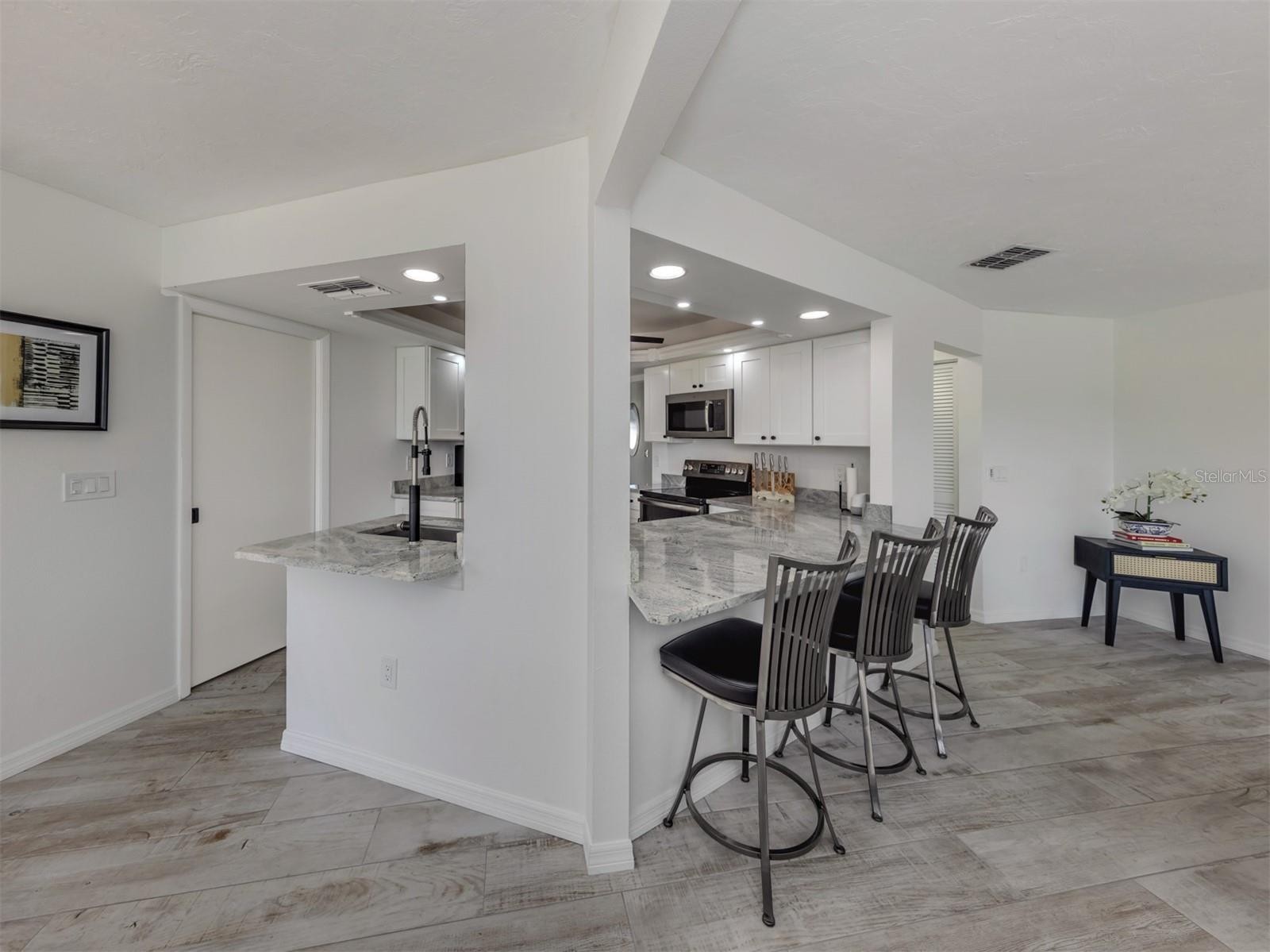 Exceptional Pool Home with Designer Upgrades and Water Views. Make a lasting first impression with this impeccably maintained residence offering more than $144,000 in tasteful, designer upgrades. Available turn-key furnished with an acceptable offer, this home blends modern elegance with relaxed Florida living—perfect for full-time enjoyment or a seasonal retreat. From the moment you enter, you’ll appreciate the consistent plank-style ceramic tile flooring throughout the interior, complemented by impact glass windows and a new roof (December 2022) for peace of mind. The heart of the home is the sleek, contemporary kitchen, featuring white wood soft-close cabinetry, a pull-out pantry, upgraded GE stainless steel appliances, granite countertops and backsplash, and a Kraus workstation double sink—ideal for both everyday living and entertaining. Step outside to your private oasis: an oversized heated pool with a freshly sealed paver deck overlooking unobstructed water views. A home-insurance–approved ornamental black aluminum picket fence provides safety and space for furry family members while maintaining an open, elegant feel. Community & Lifestyle Highlights: Located in the highly desirable Pinebrook South, residents enjoy an active lifestyle with a heated community pool, clubhouse, shuffleboard courts, fishing dock, and canoe/kayak launch with storage racks. A full calendar of social activities fosters a true sense of community. Location Advantages: Convenience is unmatched—minutes to shopping, dining, I-75, and area beaches, and just blocks from the region’s only regulation croquet field within 50 miles, along with baseball, football, and soccer facilities. Venice Beach and downtown Venice are less than 6 miles. This prime setting delivers both tranquility and connectivity in the heart of Venice. With upgrades too numerous to list and a lifestyle that checks every box, this move-in-ready home offers an exceptional opportunity.
