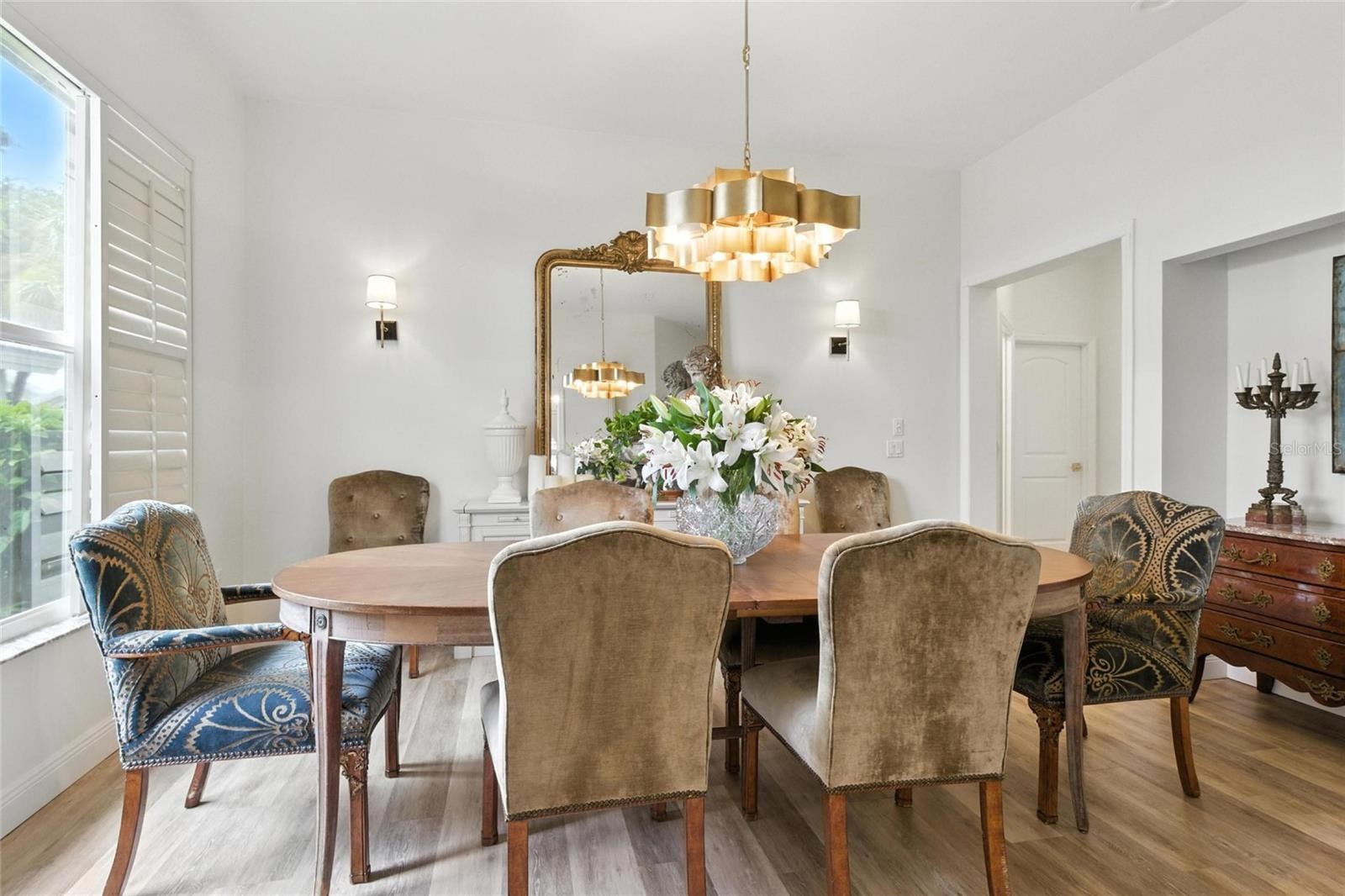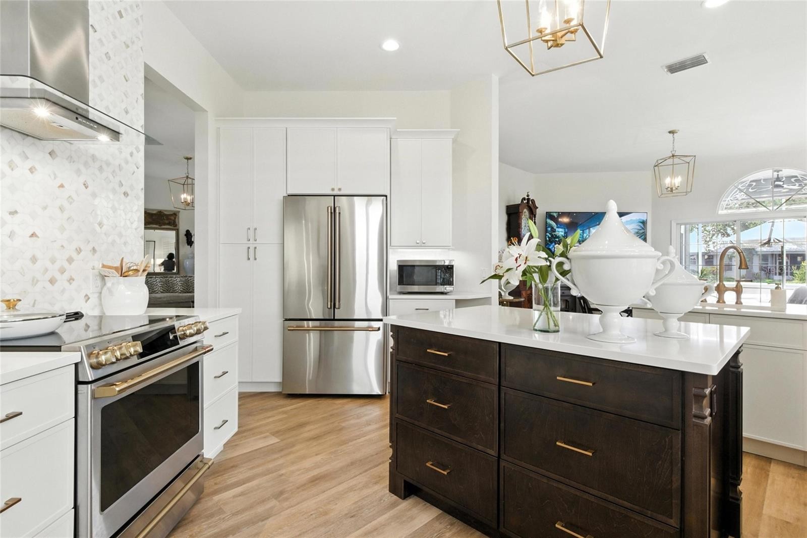 Should you be fortunate enough to live in a home designed by a well-known Chicago designer, you’ll immediately appreciate the artistry, craftsmanship, and attention to detail found throughout this EXTRODINARY RESIDENCE. Welcome to the Patios of Chestnut Creek in the heart of Venice. Enter a community, unlike any other—where a tunnel of majestic trees lines the street, guiding you toward a peaceful lake that glows with natural beauty. As evening falls, graceful white birds gather in the trees, creating a serene setting perfect for a quiet morning coffee or a relaxing glass of wine at dusk. From the BRAND-NEW ROOF and PAVER DRIVEWAY to LUXURY VINYL PLANK FLOORING throughout, this home radiates ELEGANCE and QUALITY. Step inside to discover UPSCALE CUSTOM CABINETRY topped with QUARTZ countertops, a STUNNING MARBLE BACKSPLASH, and GE CAFÉ’ APPLIANCES that seamlessly blend beauty and function. Stylish CHAMPAGNE BRONZE FIXTURES add a warm, sophisticated touch. The open, flowing floor plan is ideal for entertaining, with a dining area that comfortably seats 8 to 10 guests. The main suite is a true sanctuary, featuring soaring 12-foot ceilings, oversized windows, and an en suite bath that defines luxury and relaxation. Embrace the Florida lifestyle from your EXPANSIVE LANAI overlooking a peaceful pond. Enjoy plenty of covered seating, an extended outdoor area perfect for gatherings or gardening, and space to add a tranquil fountain to complete the ambiance. Additional highlights include HURRICANE ACCORDIAN SHUTTERS , a brand-new garage door, and DESIGNER FINISHES typically reserved for homes priced well over one million dollars. All that and NO CDD Fees, LOW HOA fees and easy access to Historic Downtown Venice, restaurants, shopping and the beaches.