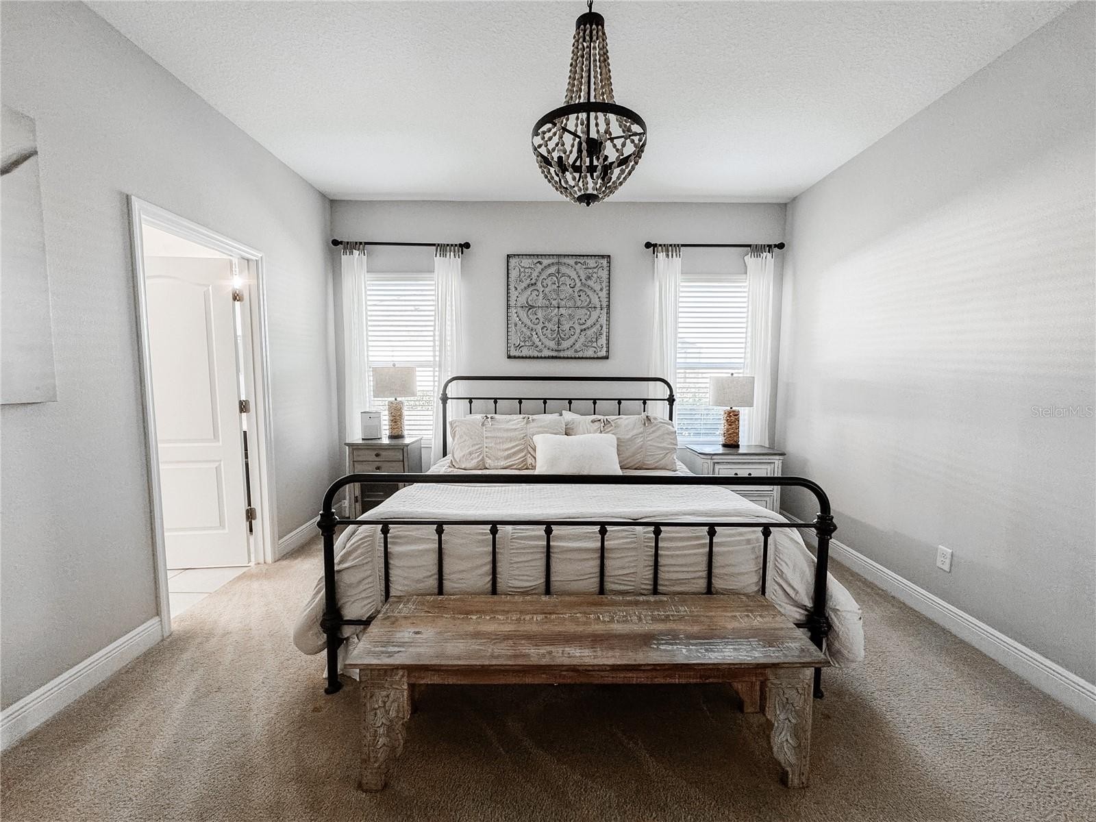 Welcome home! This 4 bedroom, 2.5 bath 2,736 sqft home is nestled in the quiet yet friendly gated community of Eagle Trace. This split floor plan is one of only 6 of its kind in this neighborhood, featuring all main living spaces and bedrooms on the first floor with a separated, private master en suite. On the second level of the home, you will find a versatile, expansive loft space with the half bathroom. Some notable highlights of the home include luxury furnishings throughout, a wet bar next to the gorgeous open kitchen, custom interior window shutters, and an enclosed lanai with a stunning pond view. This property has NO CDD fees, and the HOA maintains the yard. Beautifully maintained, this home is in move in ready condition. Eagle Trace has various amenities available for use including a community pool, dog parks, tennis/racquetball court, and playground. Whether you’re looking for forever or just a place to set some roots, this home is for you.