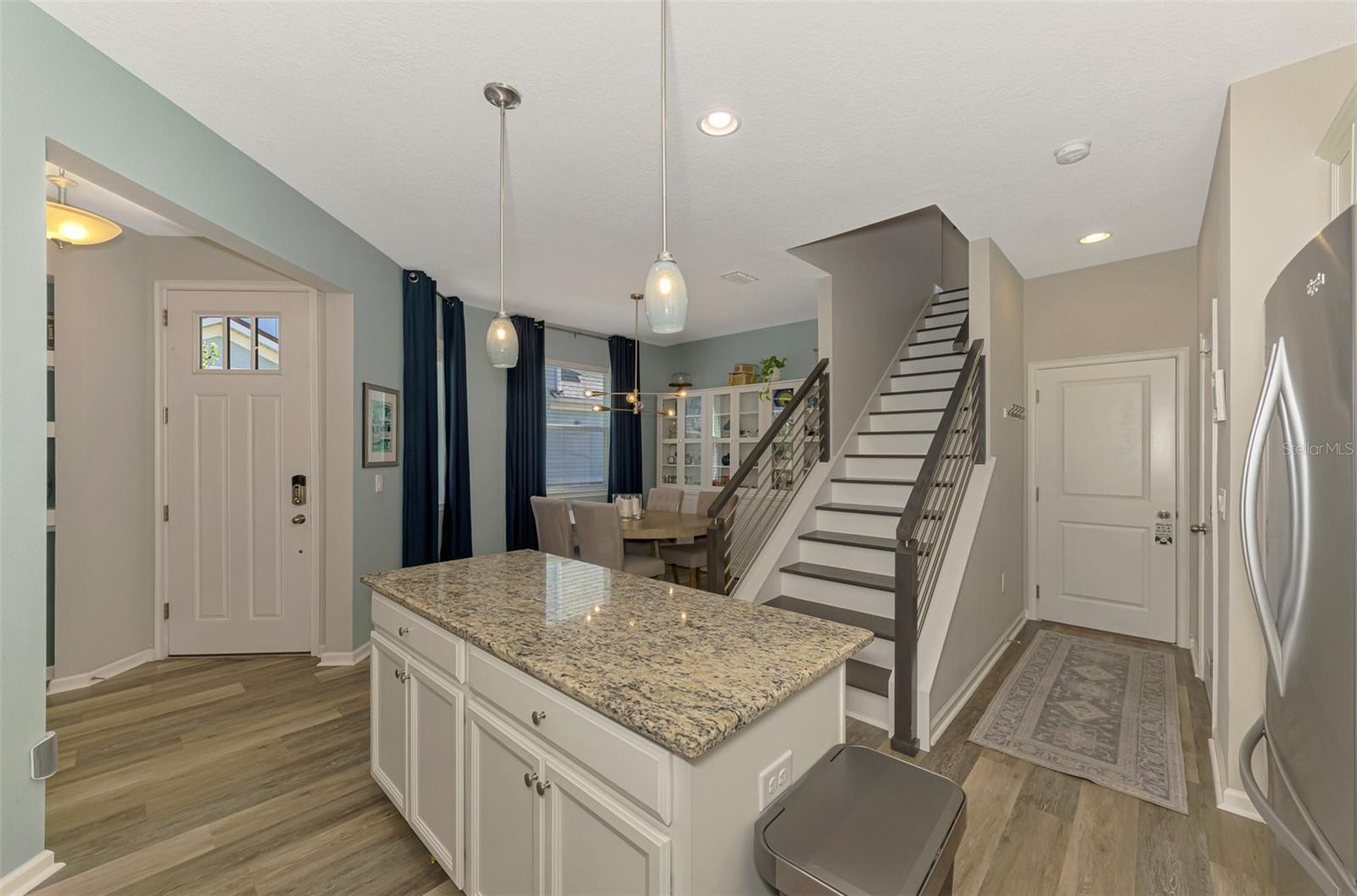 3 bedroom, 2.5 bath move-in ready End Unit townhome with a 2 car garage in Harmony on Lakewood Ranch. Rarely available End Unit provides privacy & plenty of light for this open floor plan featuring 9 ft.+ ceilings. The spacious kitchen offers stainless steel Whirlpool appliances, soft close white cabinets, stylish backlash, granite countertops and an island. Luxury Vinyl flooring throughout this thoroughly modern home. The large owner's bedroom has a large walk-in closet and a private view. Bathroom has a dual sink granite vanity and a tiled shower. A screened-in lanai provides a peaceful spot for the year-round or seasonal owner. The community is maintenance-free and scheduled roof replacement is covered by the reserve funds. Community amenities include a heated pool, fitness center, playground and walking paths. Harmony is a delightful community in Lakewood Ranch conveniently located near shopping, doctors, golf courses, UTC Mall, dining and entertainment. I-75 is a few minutes away providing easy access for commuters. The Sarasota Airport is about 25 minutes away. Easy access to the vibrant downtowns of Sarasota and Bradenton.