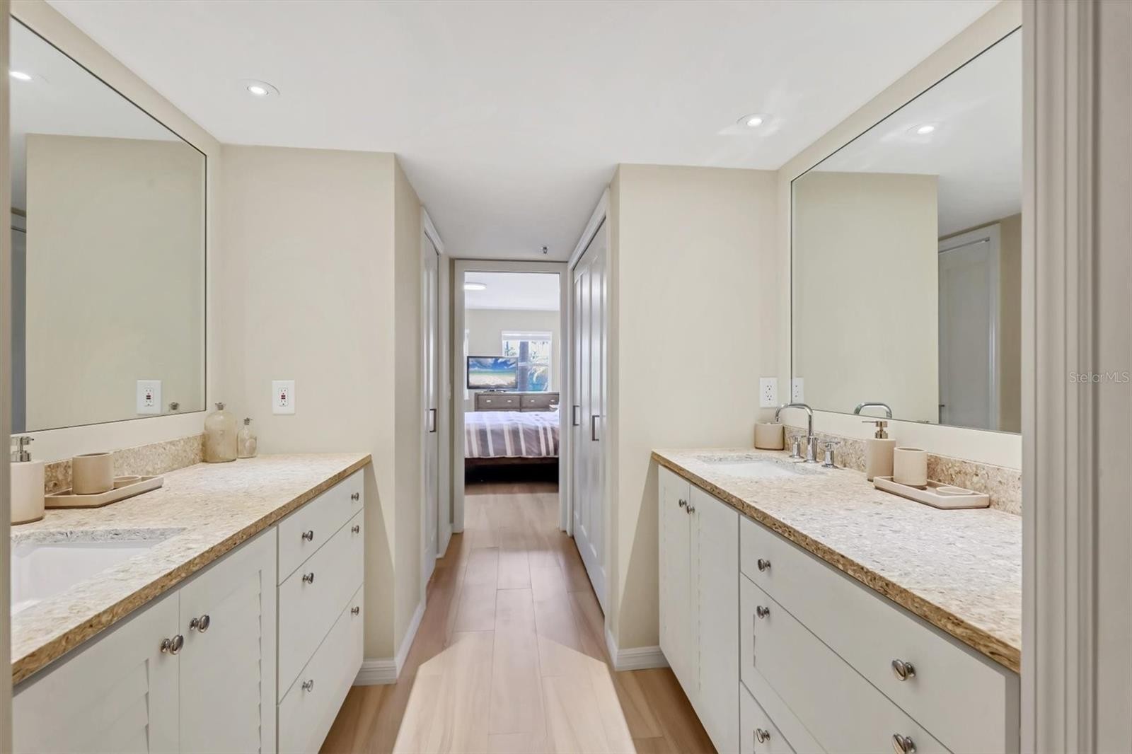 Casual Elegance defines this Refined Residence. Whether a year-round retreat, vacation or investment property, this luxuriously appointed turnkey-furnished 2B/2B in Gulf & Bay Club Bayside will leave you feeling refreshed! Immaculately clean and featuring: a lovely water view, easy single level living, Private Beach access and Deeded Driveway w GARAGE makes coming home to this unit a breeze ~ Recently remodeled w a warm neutral palette, this open plan offers split bedrooms for privacy while allowing gatherings in sun-dappled dining/living space bathed in natural light through the enclosed lanai ~ The KITCHEN includes Stainless appliances, granite breakfast bar, solid wood cabinets w soft close drawers. There’s a convenient breakfast nook doing double duty as ‘pocket’ office with desk/bistro table by the pantry. ~ The spacious LIVING area has comfy Crate & Barrel ‘L’ shaped couch and tranquil water views for relaxed entertainment ~ An Enclosed Lanai presents a serene DINING atmosphere, with an adjustable Crate & Barrel dining table, wonderful for hosting family and friends ~ The Luxurious MASTER suite has King bed, water view, Dual solid wood & granite vanities w soft close, spacious walk-in closet, hall closet, and linen closet! A newer Custom Glass Walk-in Shower is discreetly in the separate commode room ~ The well-appointed, no-shared walls, Guest bedroom provides ample comfort and relaxation for your guests w an adjoining modern bath also w newer, vinyl plank flooring and closet ~ A convenient Full sized Washer Dryer is located in guest hallway. ~ UPGRADES: HVAC June 2025, Recessed Lighting & Newer Fixtures, Newer Cabinetry, Newer Commodes, Vanities & Countertops, New Modern Doors and closet doors, Newer Blinds, Metal Roof 2015. Recent Luxury Vinyl Plank installed throughout ~ A Rare Private 1 Car Garage may hold: a vehicle, and/or bikes, beach & pool gear & toys and sports equipment ~ AMENITIES: 2 Heated Pools, Clubhouse, BBQ area, Walking paths on Well Maintained Grounds w 2 Ponds and Fountains, Pickleball & Tennis courts, Fitness room & Saunas, Private Deeded Beach Access, Community Grills and Fishing Pier/Deck on the Inter coastal Waterway perfect for enjoying a waterside cocktail hour, watching dolphins and being entertained by the endless boat parade passing by ~ LOCATION: Gulf & Bay Club Bayside is an exclusive Key West style, resort-like, gated community unique in its flora & architecture. This socially active community invites you to join the Coastal lifestyle! Enjoy a short walk on the dedicated path to your award winning sugary quartz sands of Siesta Beach, or Hop aboard the Siesta Key Trolley which connects the two ends of the island. Located between Siesta Key Village and Stickney Point Rd, this property places you within easy reach of the island’s most vibrant lifestyle: savory restaurants, boutique shopping and live entertainment, water-sports and sunsets~ RENTALS: Although this unit has Never been a rental, Weekly rentals are allowed. This option makes for an excellent investment opportunity. Gulf & Bay offers on-site rental management or choose your own! With 52 weeks to choose from, owners can save weeks for themselves and may still cover the nut! ~ Whatever your needs, you cannot go wrong in this charming condo, it’s Move-In ready, just waiting for you! ~ Schedule your showing today!