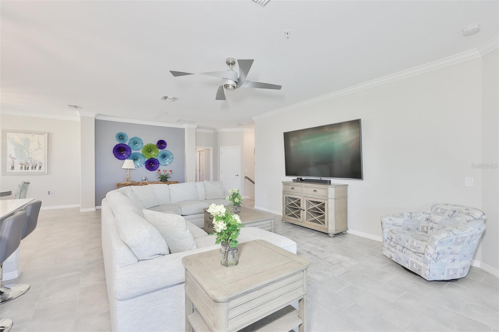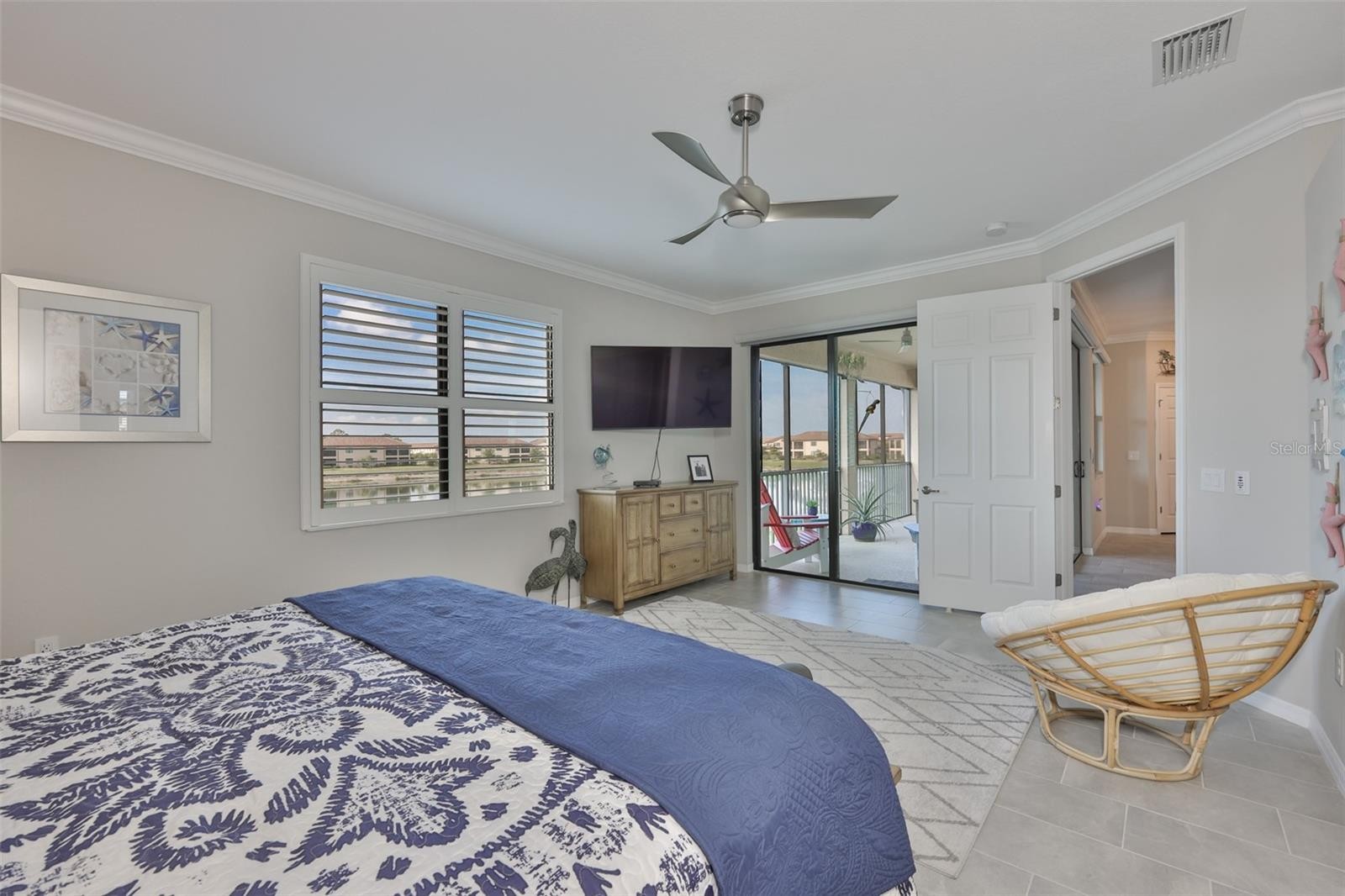 Experience luxury resort-style living at Gran Paradiso. This updated, one-of-a-kind 3-bedroom, 2-bathroom coach home offers a bright, open layout with quiet water views. Several premium upgrades set this property apart, including: - Custom fans and tile throughout - An oversized refrigerator and custom shelving in all closets and pantries - Updated electrical outlets with USB-A and USB-C connectors in the great room and primary bedroom - Hunter Douglas motorized power shades in the primary bedroom and great room - A stacked washer/dryer and a Pro-line commercial-grade hot water heater - Finished epoxy floors in the garage The Gran Paradiso community features exceptional amenities, including a 24-hour guarded gate, a stunning clubhouse, and a large community pool with a spa. Residents also enjoy access to a fitness center, tennis and pickleball courts, huge playground, and billiard rooms.