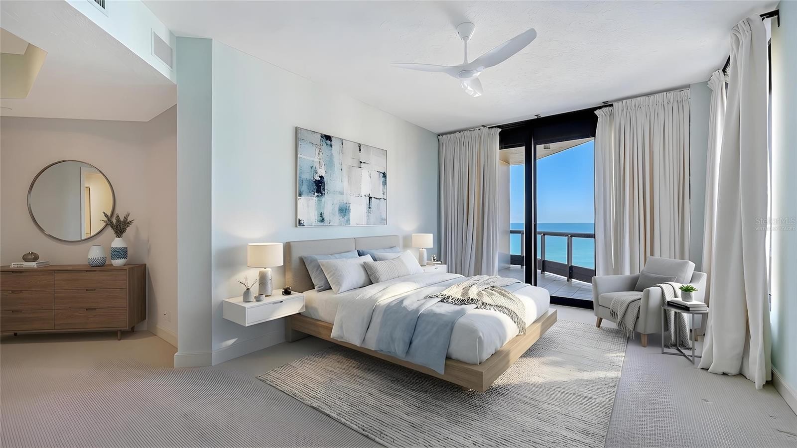 Welcome to The Water Club at Longboat Key, where privacy, spaciousness, and resort-style amenities complement the natural beauty of the setting at the edge of the sparkling waters of the Gulf of Mexico. Residents benefit from a semi-private elevator that opens directly into an impressive foyer, offering sweeping views of Sarasota Bay and the city skyline through floor-to-ceiling windows. This residence is on the north side of the south building, the sunset view side, overlooking the beautiful pool deck amenity of the community. This eighth-floor Brighton residence is highly coveted for its three-bedroom configuration with panoramic vistas of the Gulf, beach, and bay from two expansive terraces. Features include ten-foot ceilings, extensive glass walls, and storm protection shutters , enhancing both comfort and sophistication. The living room is designed to maximize openness and showcase sunsets over the Gulf. The primary suite offers a private terrace, den, walk-in closet, and dual bathrooms. With a split-bedroom plan, privacy is maintained for two generous guest suites, each featuring an en-suite bath. The kitchen is efficiently appointed with significant storage and a breakfast area overlooking the water. The Water Club stands as Longboat Key’s premier gated beachfront community, situated on 16 acres of meticulously landscaped grounds. Amenities include a 17,000-square-foot clubhouse, well-equipped fitness center and spa, heated lap pool and hot tub, four Har-Tru tennis courts, concierge services, and versatile gathering spaces such as a library, billiards room, ballroom, firepit, and grilling area. Additional conveniences include under-building parking, climate-controlled storage, on-site management, and 24-hour security. Ideally located on the south end of Longboat Key, residents enjoy proximity to Longboat Key Club golf facilities, Publix shopping center, exclusive St. Armands Circle, downtown Sarasota’s cultural offerings, and Sarasota International Airport, just 20 minutes away. The Water Club is pet-friendly and impeccably maintained, providing the pinnacle of coastal luxury living.