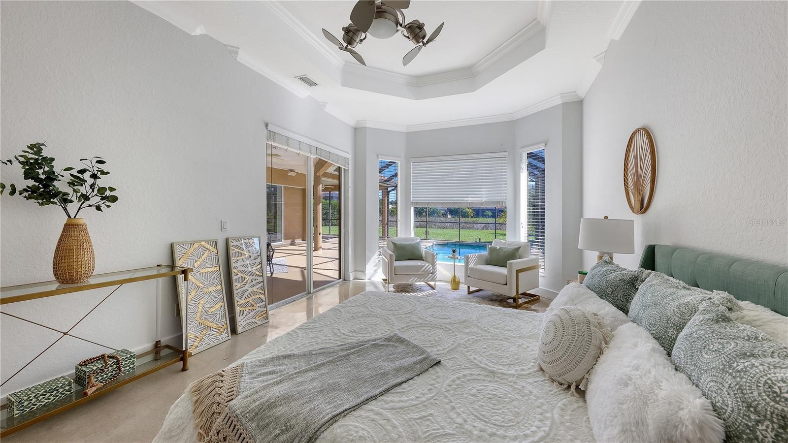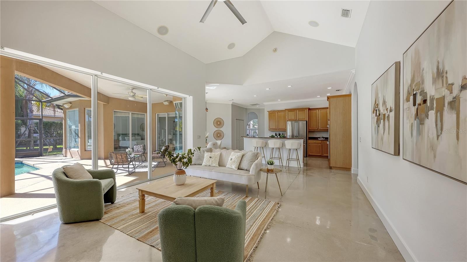 This beautifully maintained home offers the perfect blend of luxury, functionality, and Florida living at its finest. Situated on a large oversized lakefront lot, this spacious 4-bedroom, 3-bath residence features modern finishes and an open layout ideal for entertaining. The chef’s kitchen is a true showstopper, boasting brand-new Bosch appliances including a double oven, dishwasher, and refrigerator — all sleek, high-end, and energy-efficient. Concrete floors throughout the home provide a clean, contemporary aesthetic that’s both stylish and low-maintenance. Enjoy the private screened pool overlooking the peaceful lake and take advantage of the gas line already in place for your future outdoor kitchen—perfect for gatherings and sunset dinners. A 3-car garage provides ample storage and parking for your vehicles, golf cart, or workshop needs.