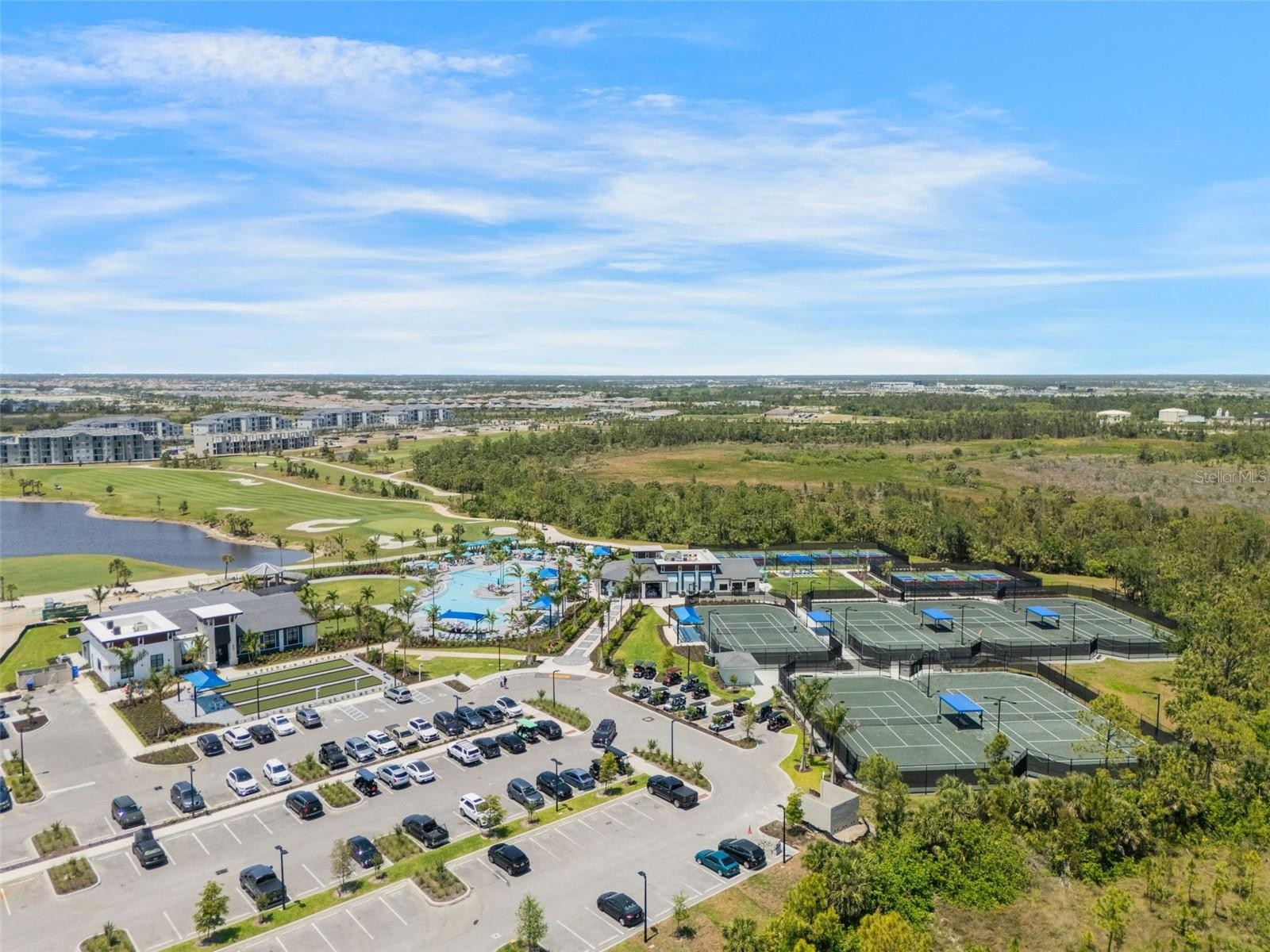 GOLF MEMBERSHIP INCLUDED WITH THIS 1ST FLOOR DIANGELO II Veranda model located in the very desirable community of Wellen Park Golf & Country Club. This pristine unit features quartz countertops, ceramic tile throughout and an en suite primary bedroom with two walk in closets. The thoughtful layout offers comfortable living and easy access with no stairs, making it ideal for full-time residents or seasonal getaways. An alarm system is installed for peace of mind whether here or away. This lovely dwelling boasts two bedrooms, two bathrooms with shower glass enclosures, and a flex room that can be used as a den or an extra bedroom. This unit includes a one car detached garage with polyaspartic coated flooring. Savor your morning coffee or your evening cocktail on the back lanai while looking out onto the 11th fairway. And your front screened in balcony lanai is PRIVATE allowing you to expand your living space while enjoying outdoor Florida living. This property comes with a guard manned front gate, cable/internet, and superb amenities including a resort style pool, tiki bar, dog park, fitness center, and much more!!! Make your appointment to see this beautiful home today!